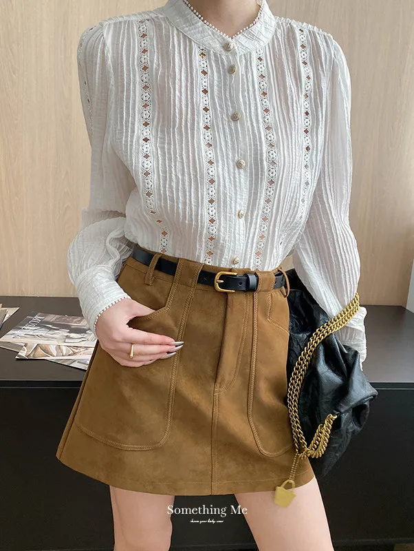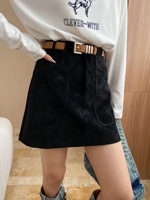 秋日漫遊 麂皮絨大口袋A字短裙 2色