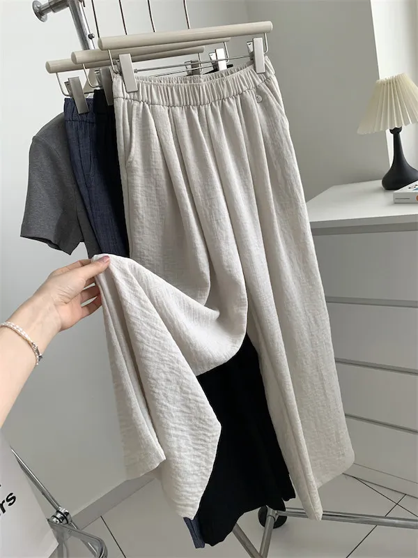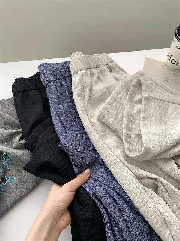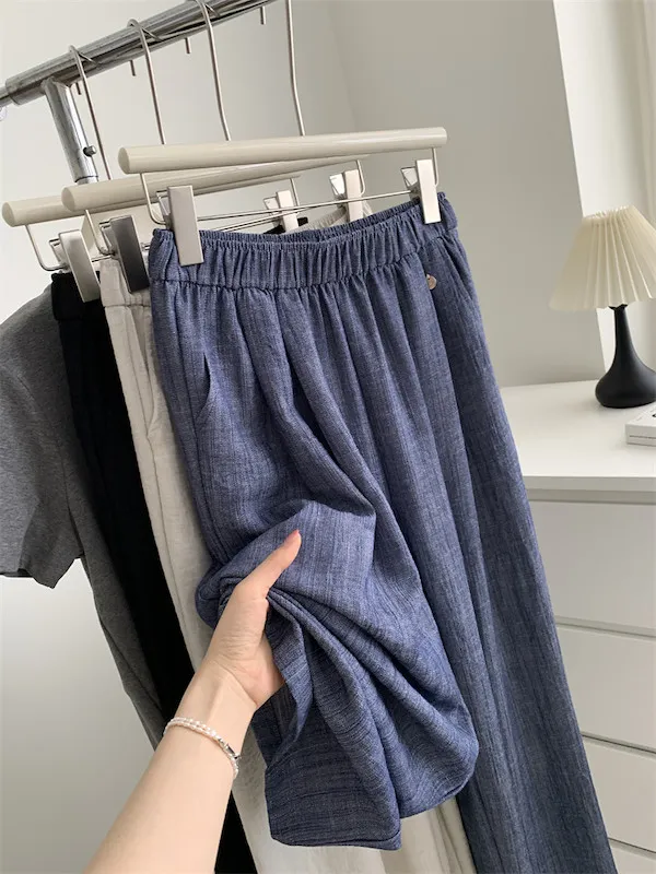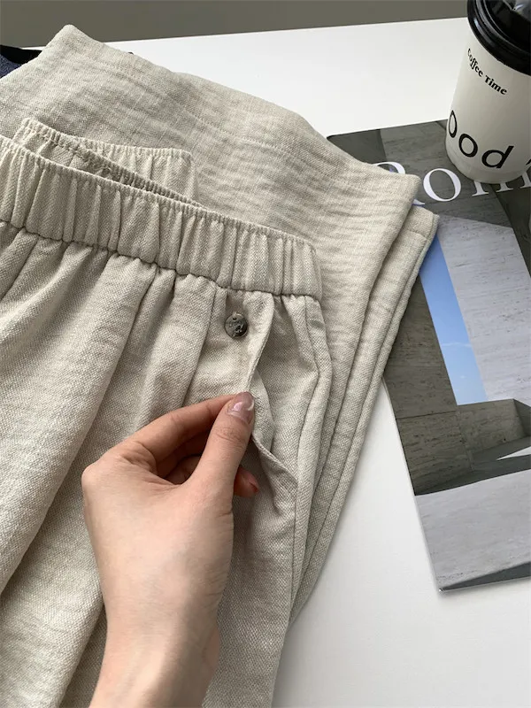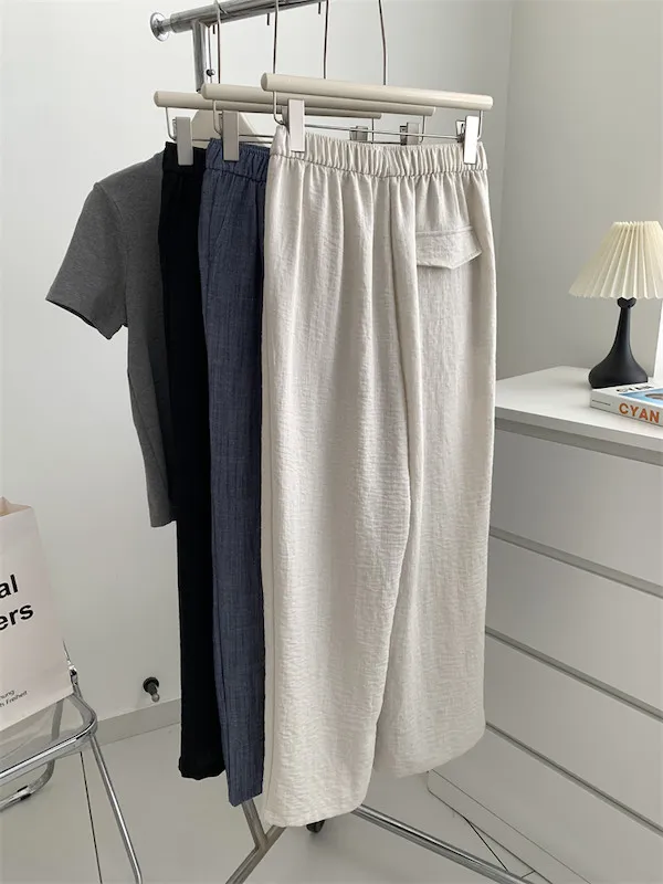 慵懶韓系闊腿涼感亞麻長褲 3色