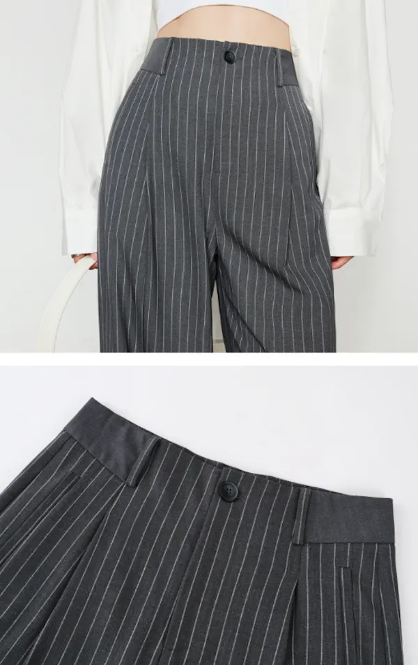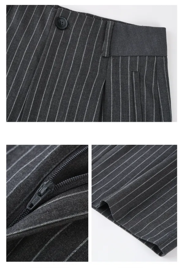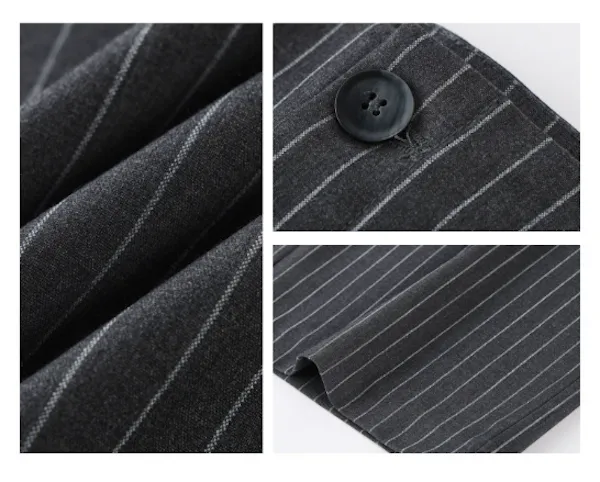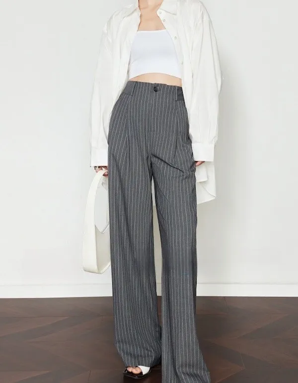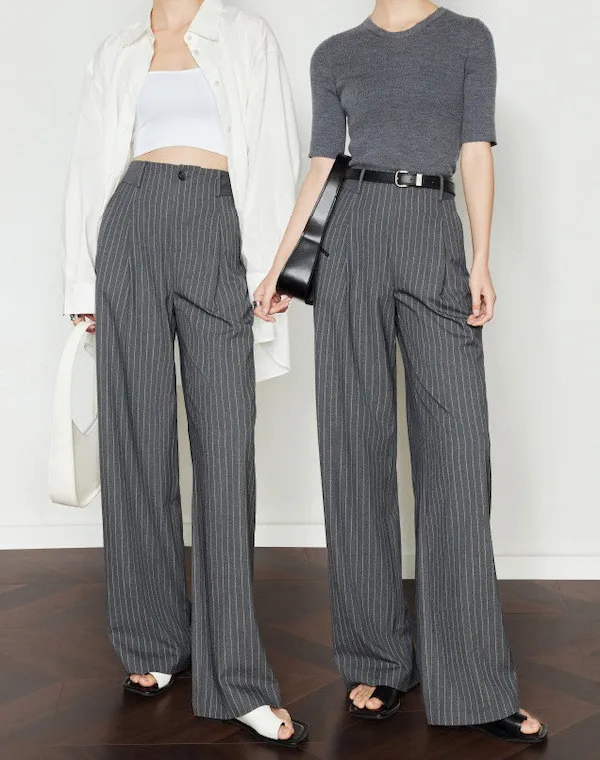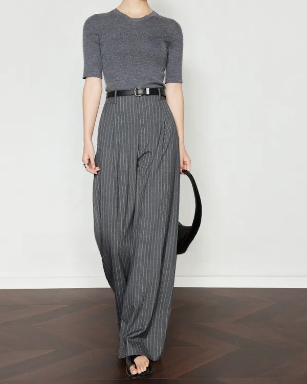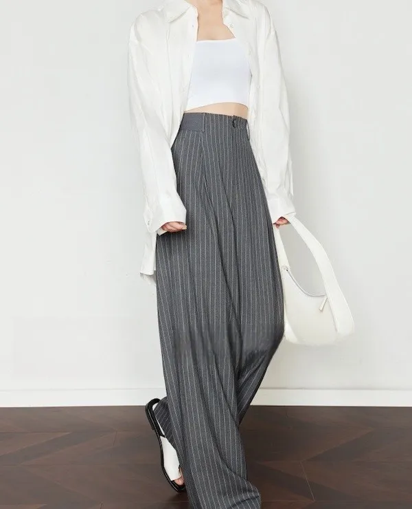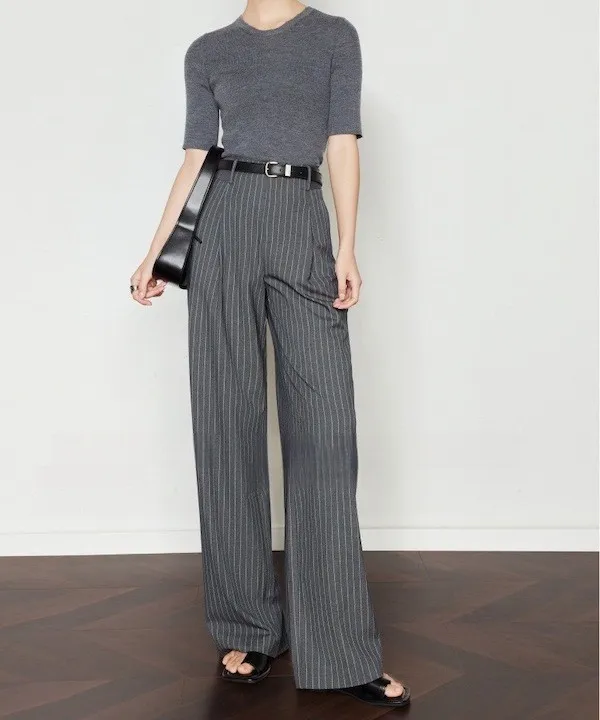 經典的細直條紋,灰色調很有質感也很顯瘦