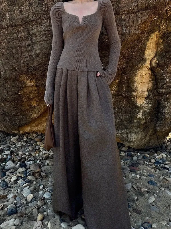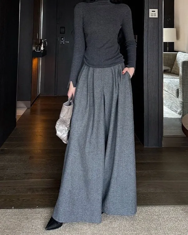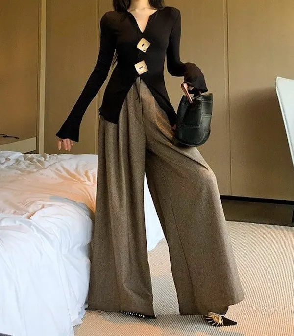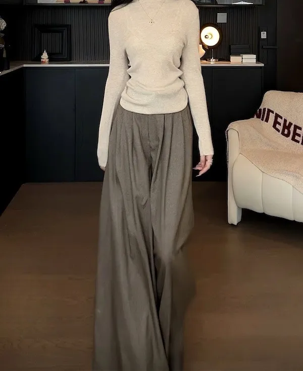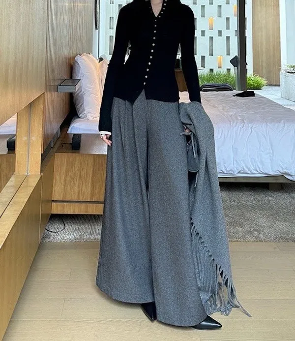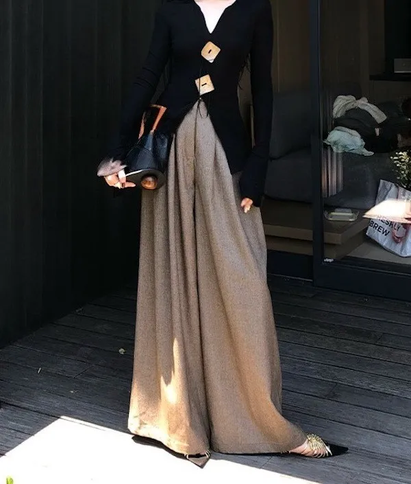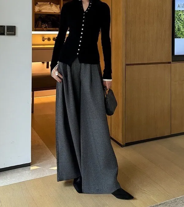 漫步塞納河畔 垂墜感落地西裝褲 2色