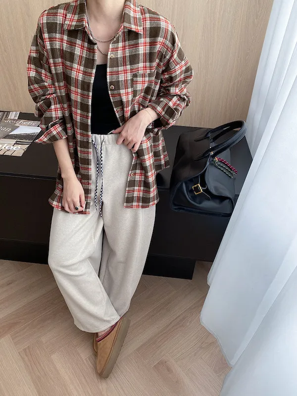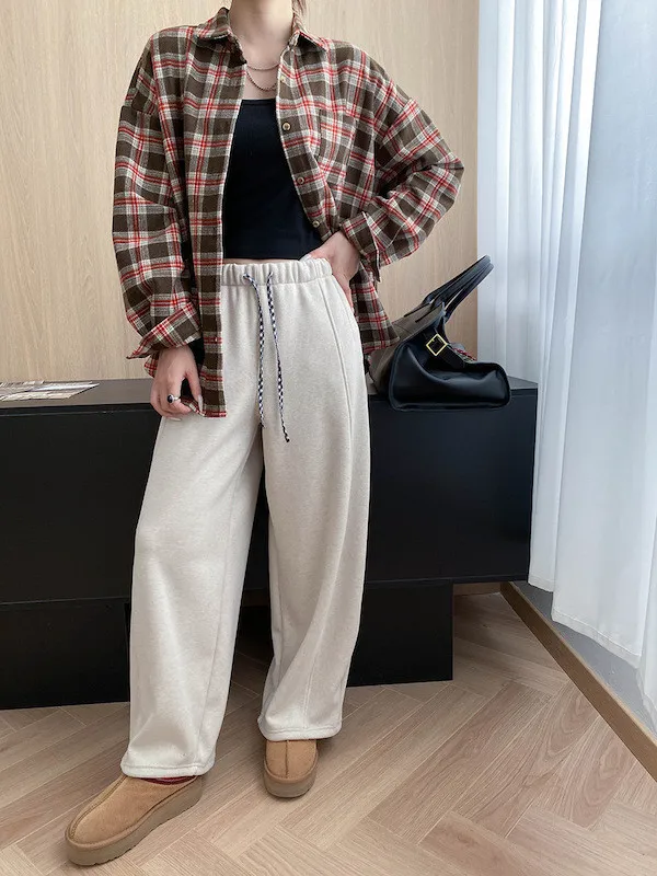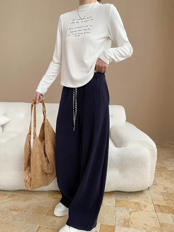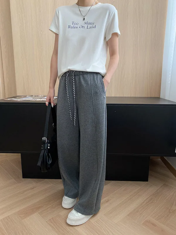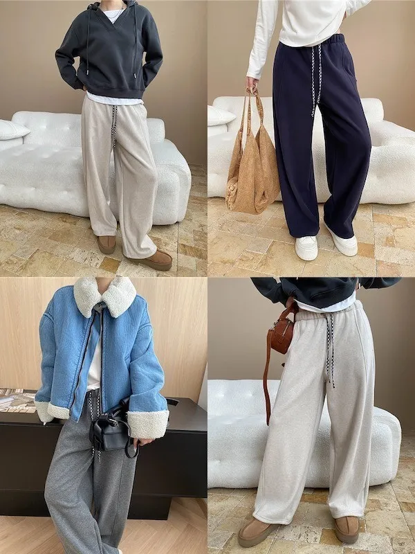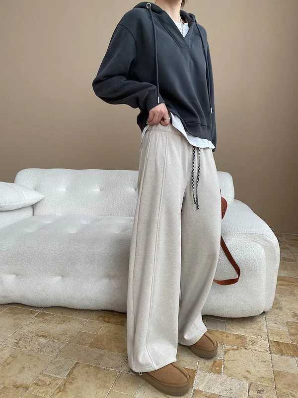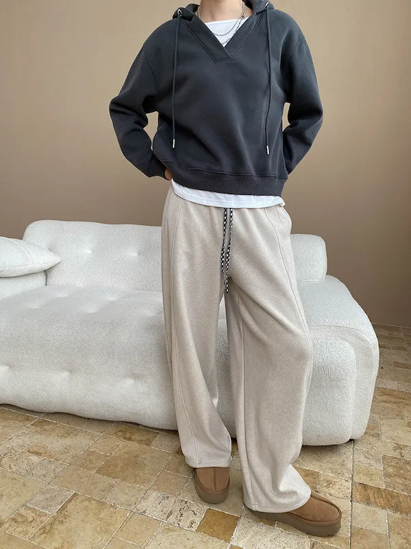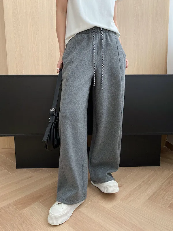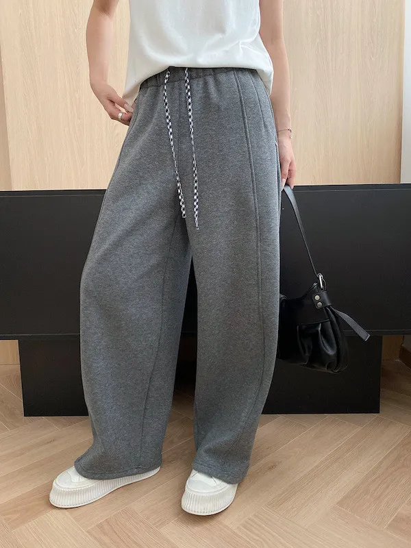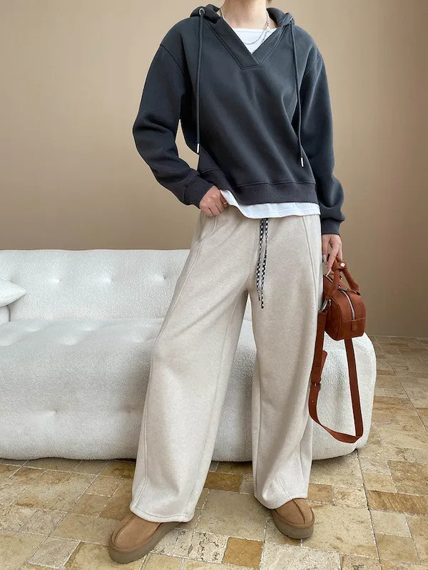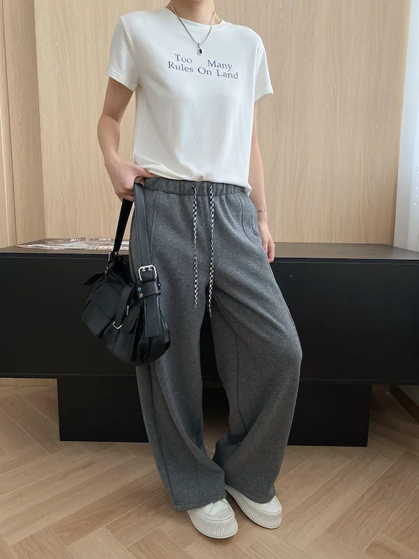慵懶自在 彎刀剪裁抽繩休閒褲 3色