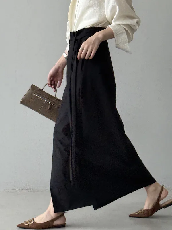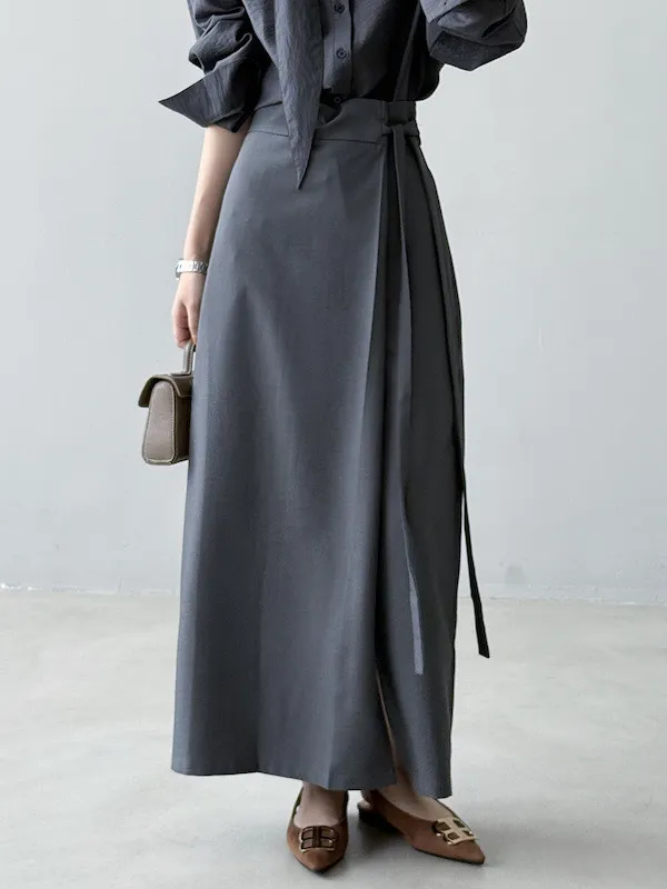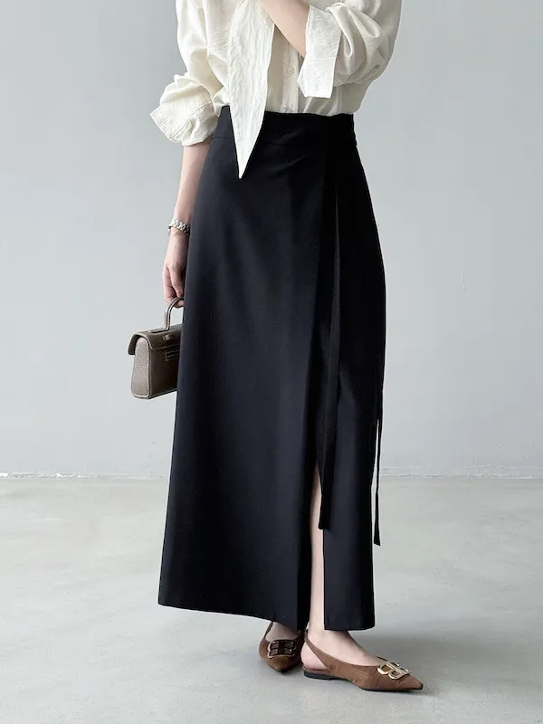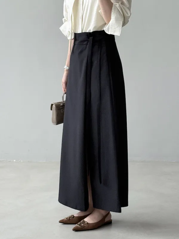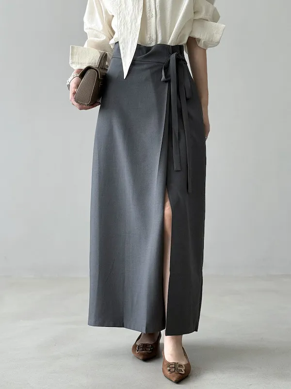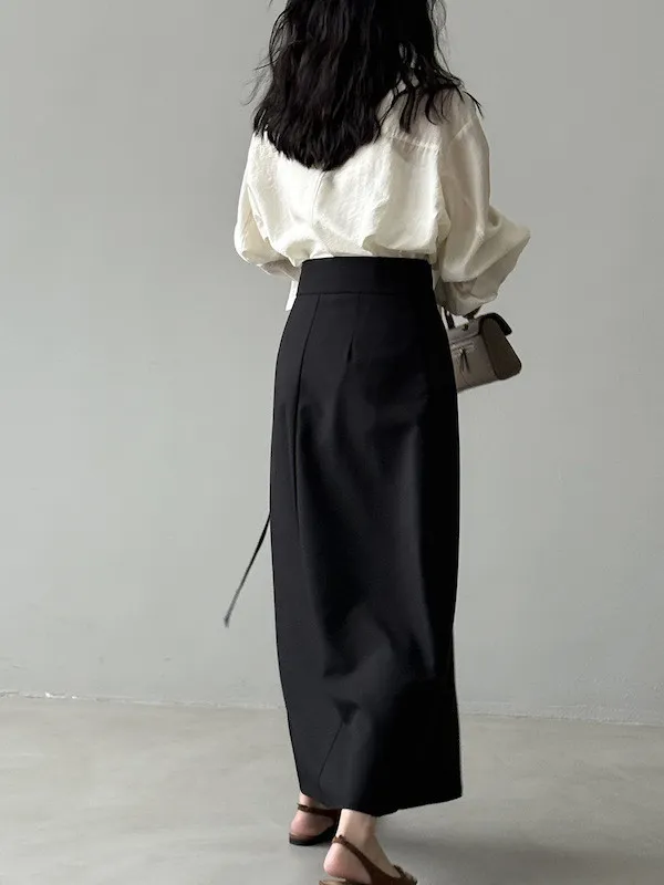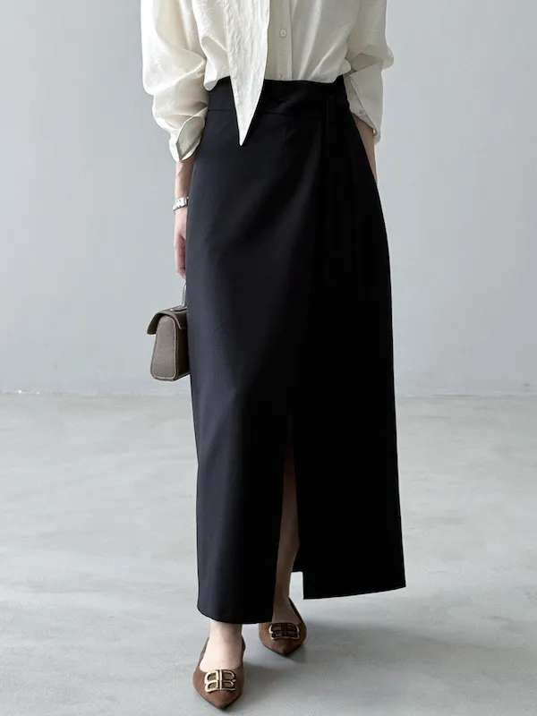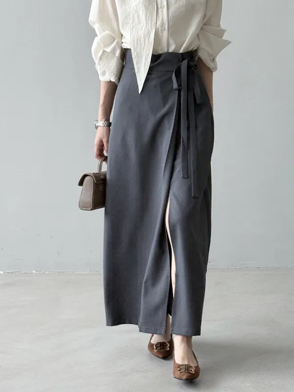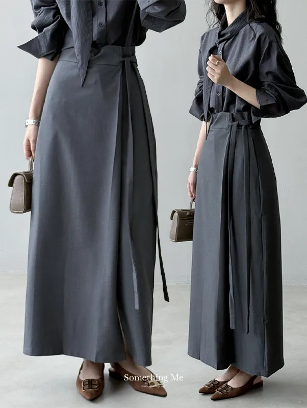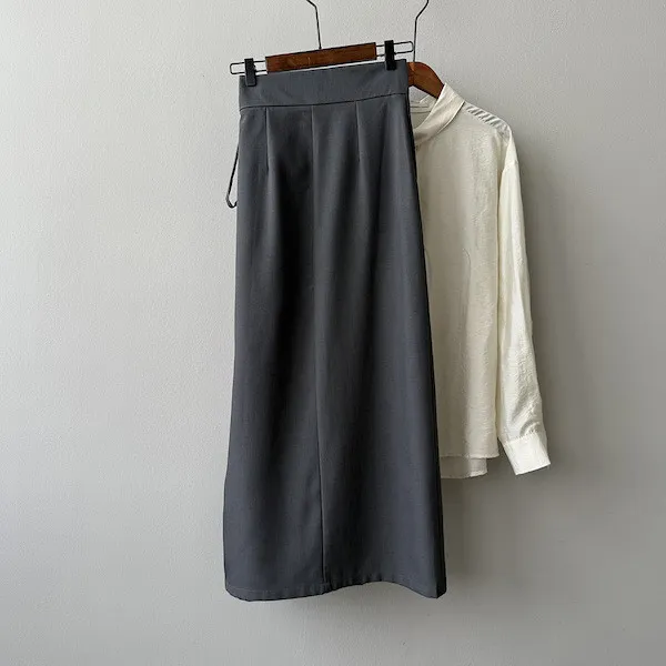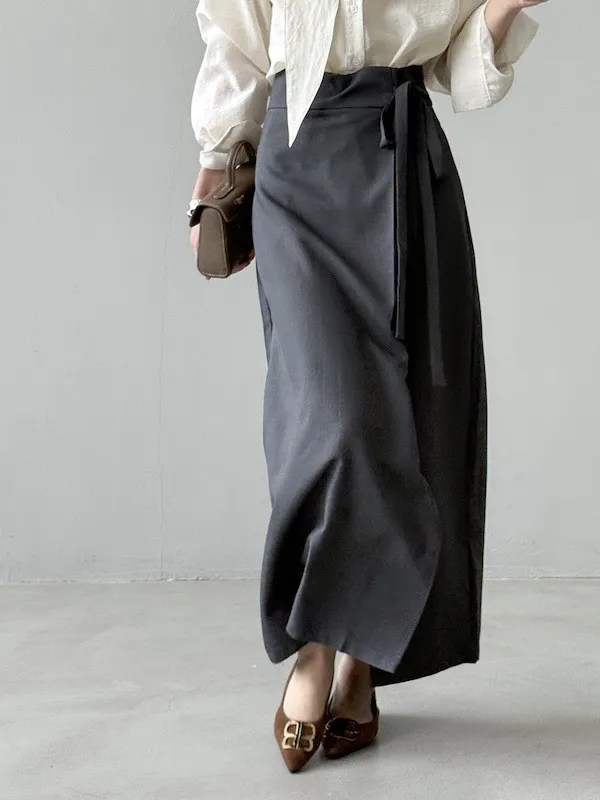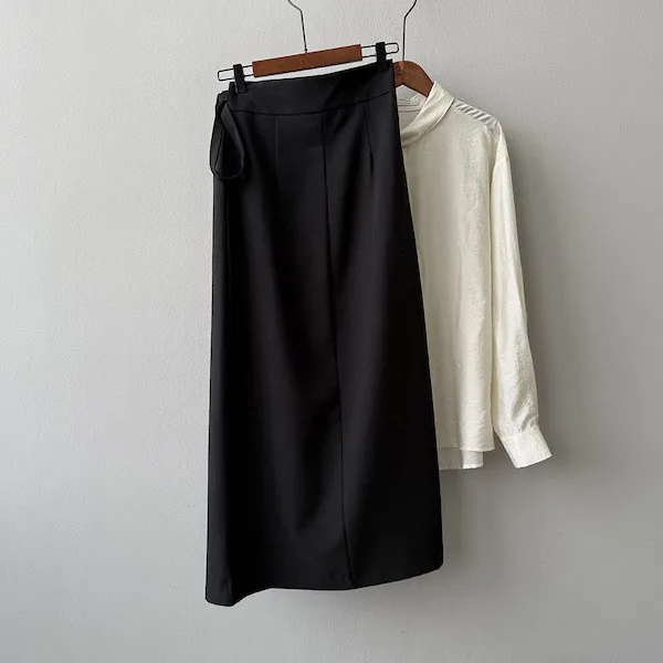 都會漫步 側腰系帶西裝A字包臀長裙 2色