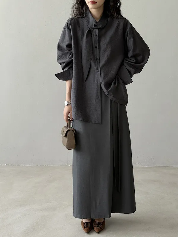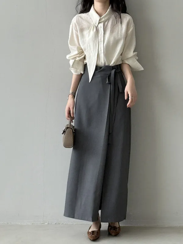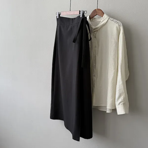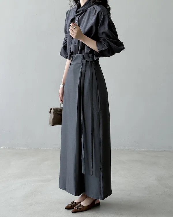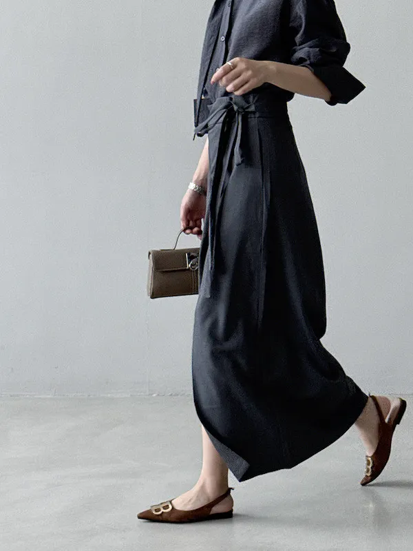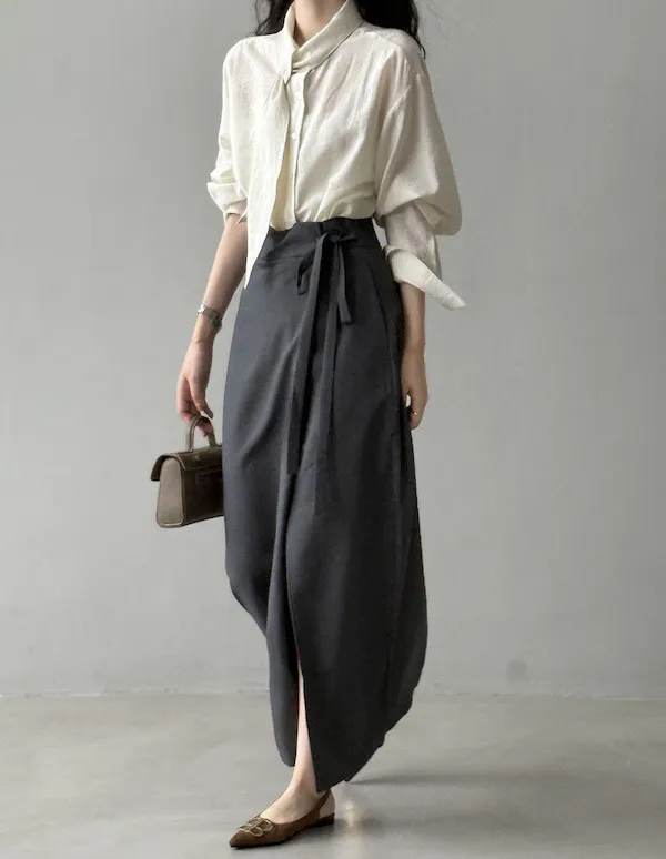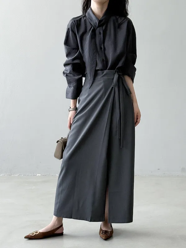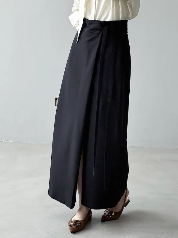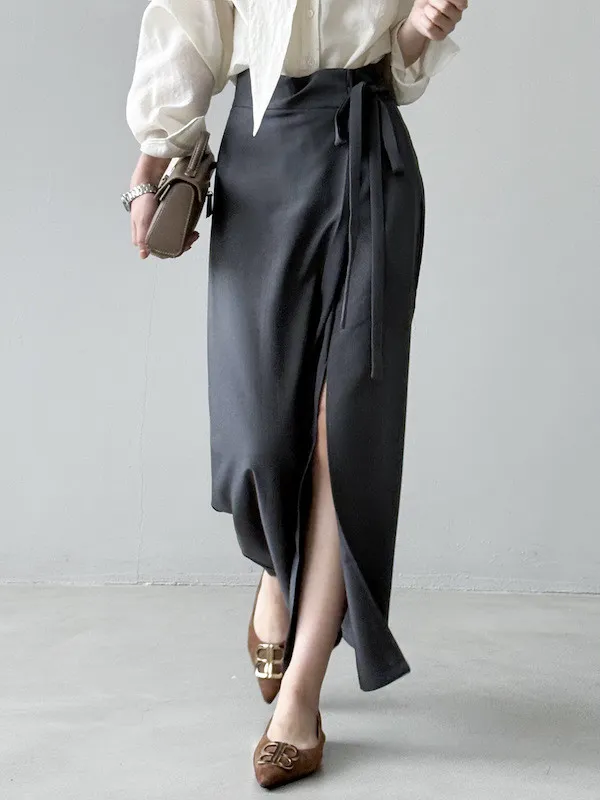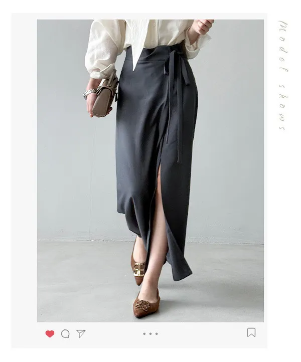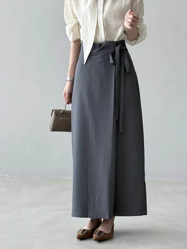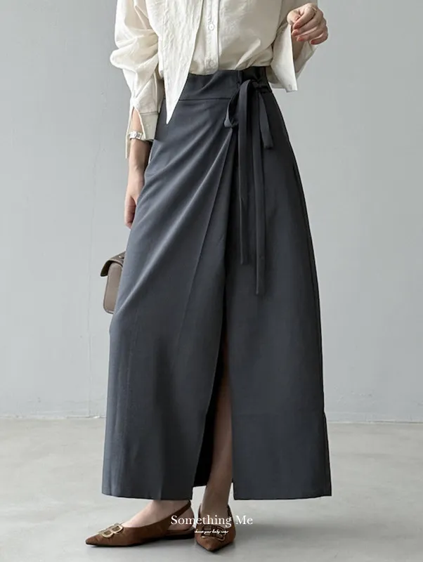 都會漫步 側腰系帶西裝A字包臀長裙 2色