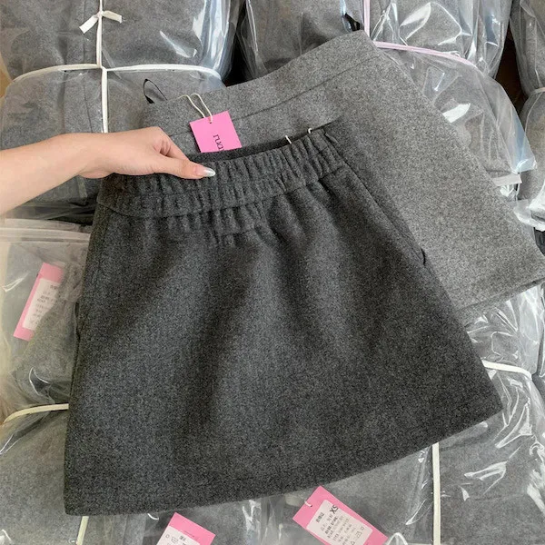 冬日氛圍毛呢鬆緊腰A字短裙 2色