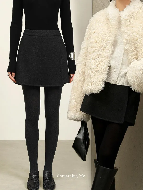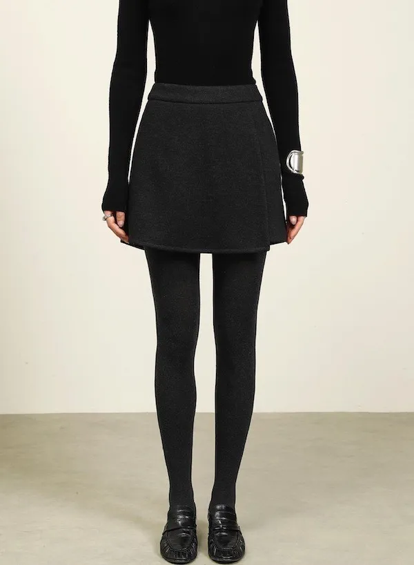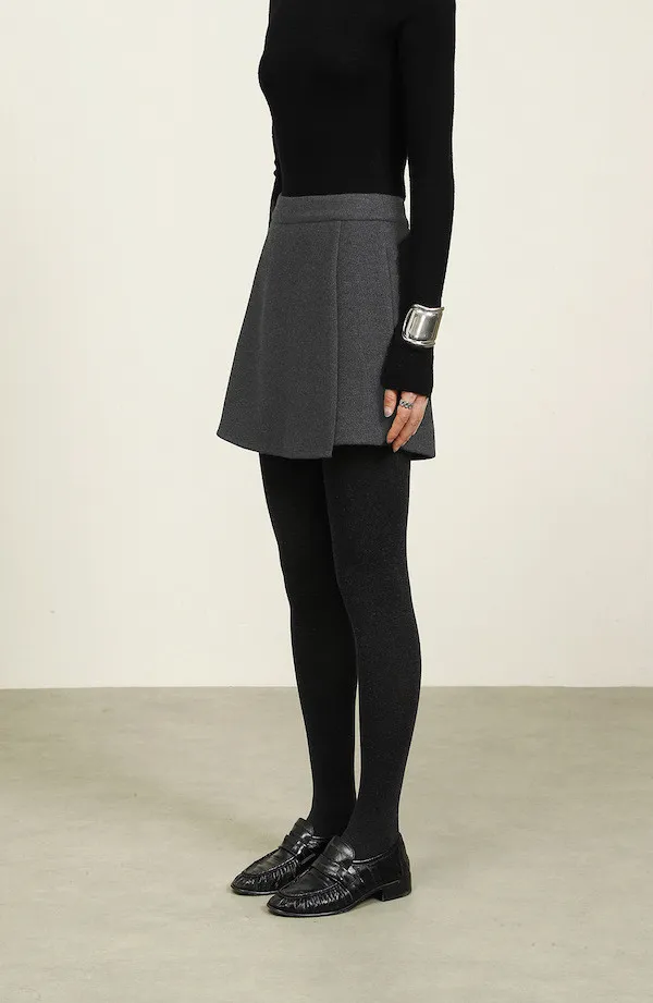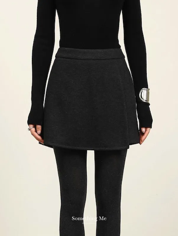 都會俐落感毛呢高腰A字褲裙