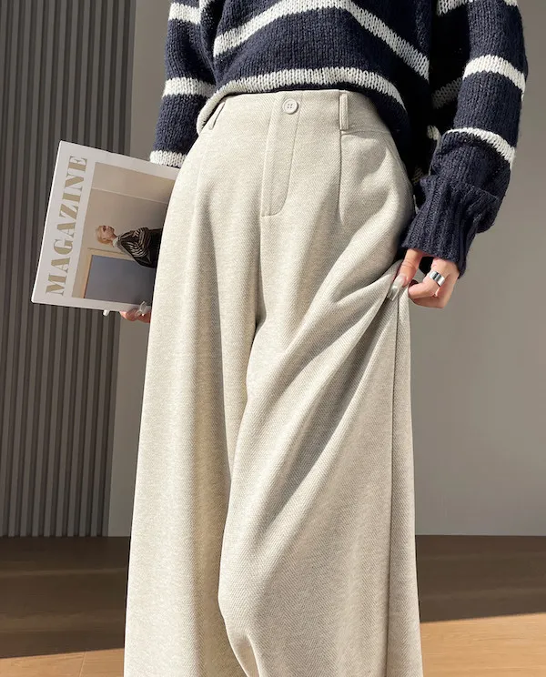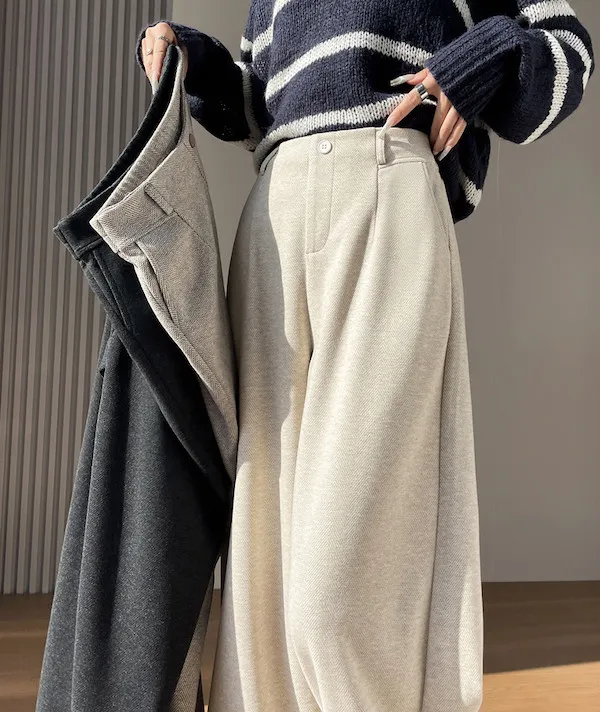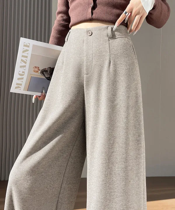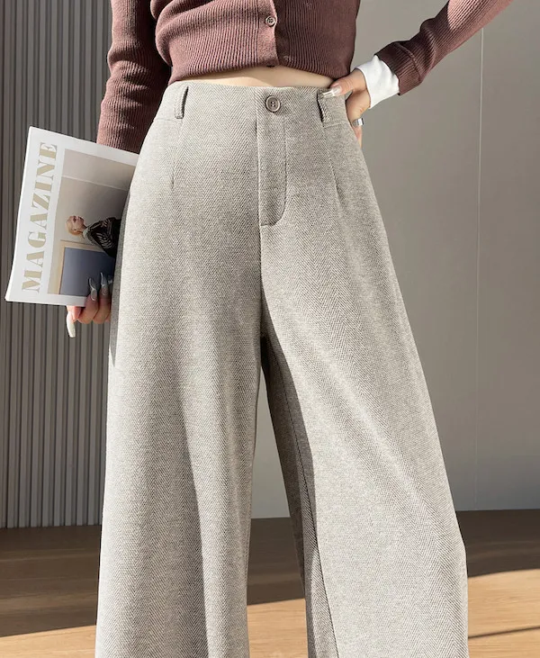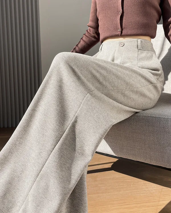 溫柔午後 人字紋毛呢西裝寬褲