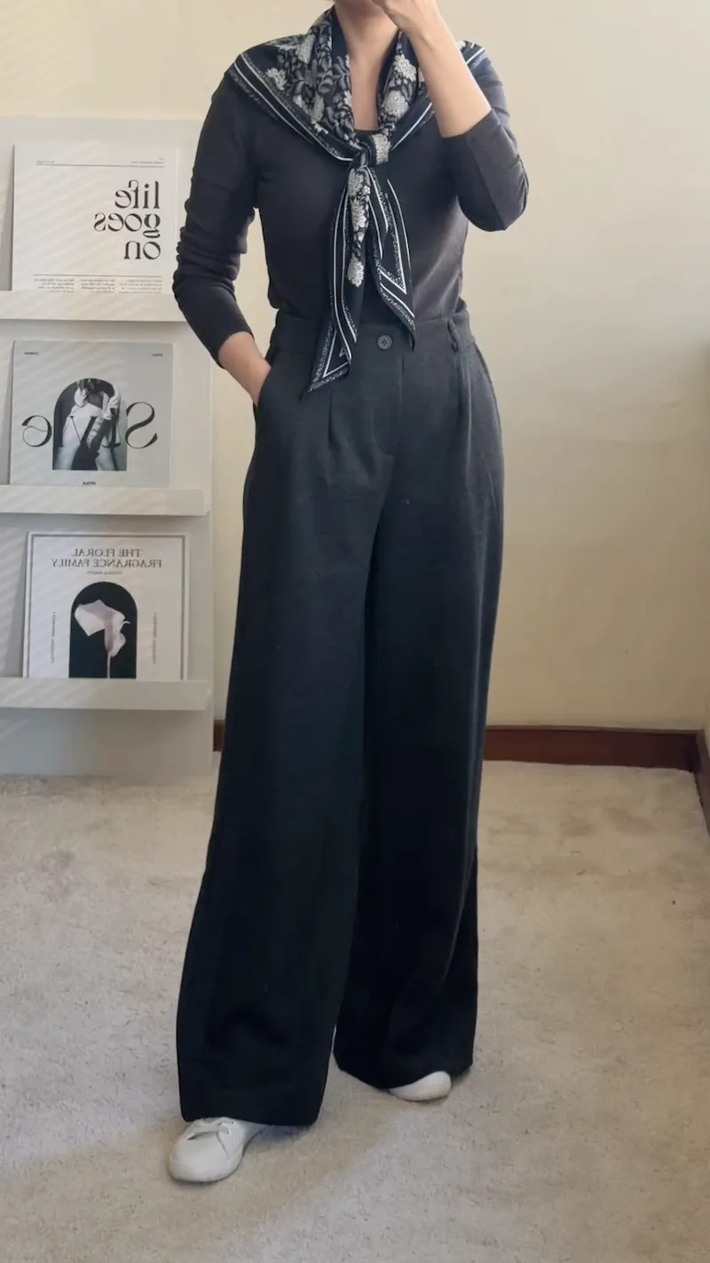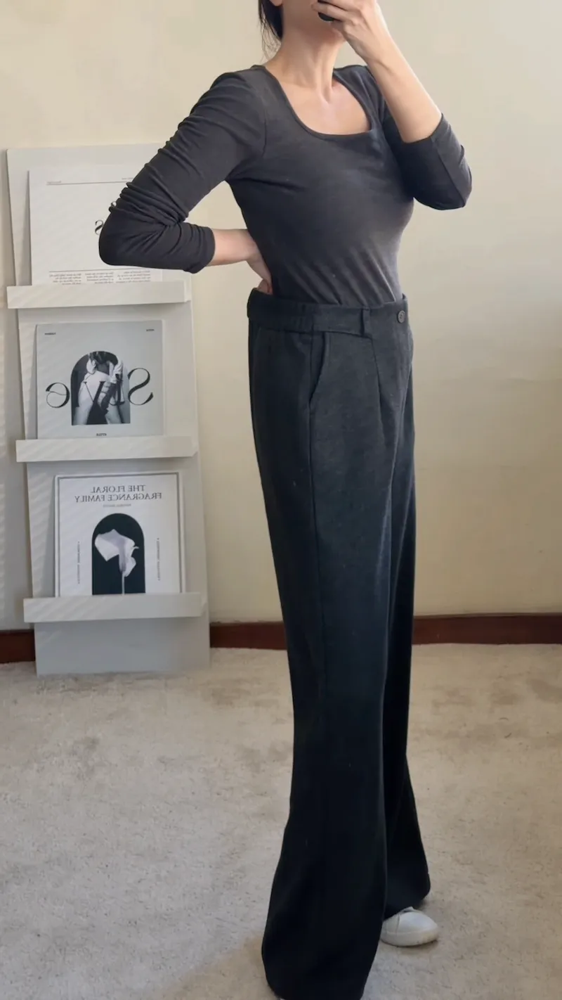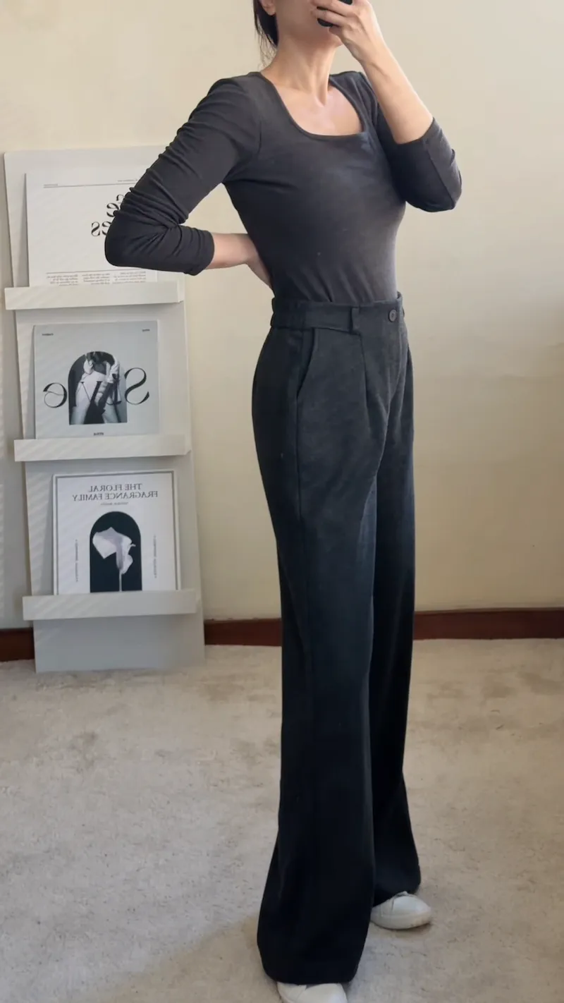 溫柔午後 人字紋毛呢西裝寬褲 3色