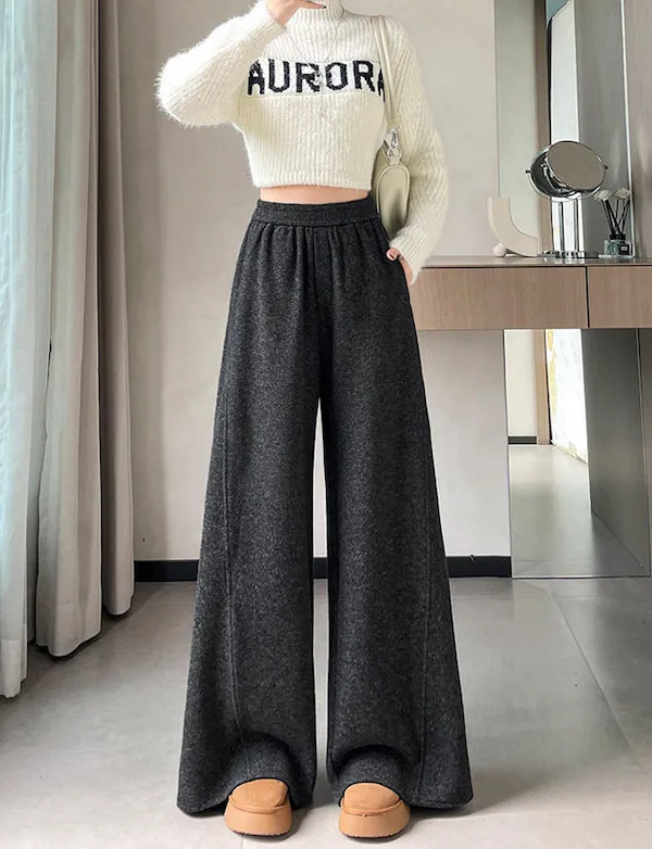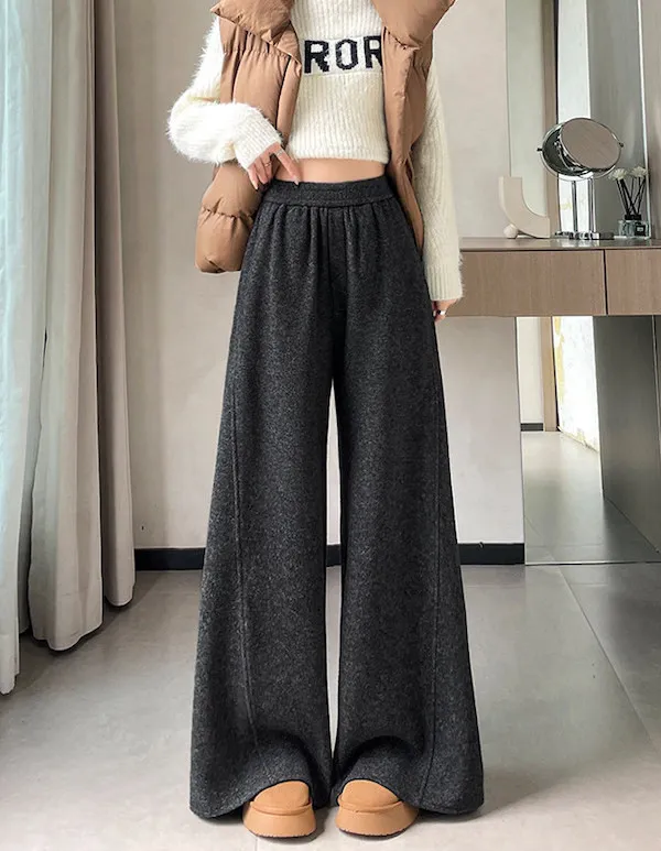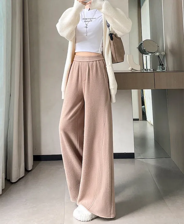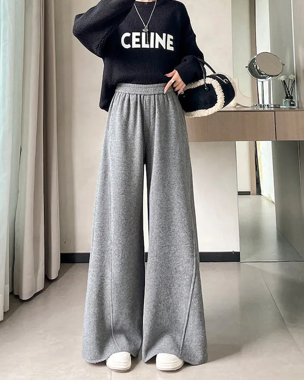 羊絨糯米寬鬆垂墜休閒寬褲 3色