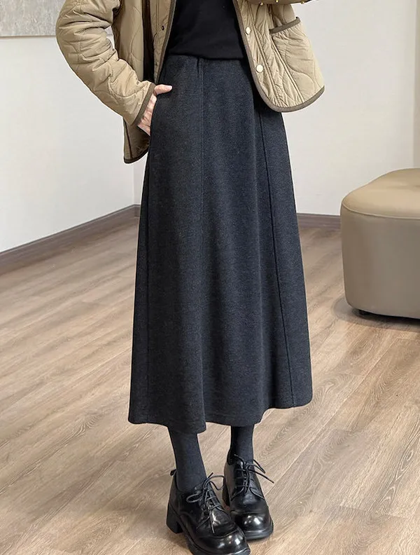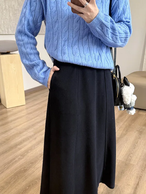 知性高雅立體剪裁羊毛傘裙 3色