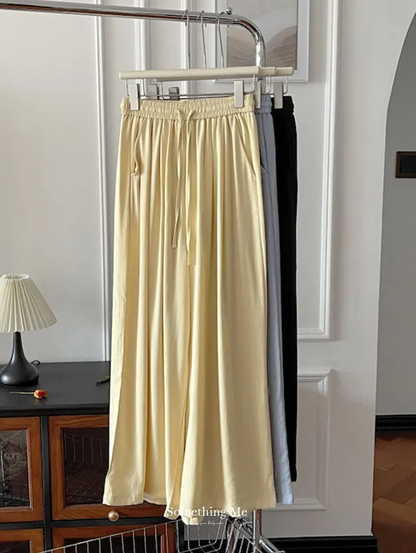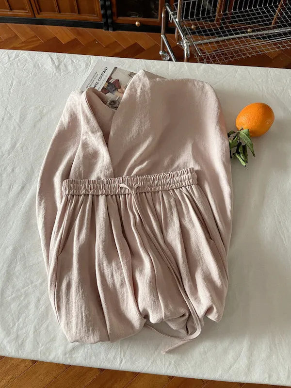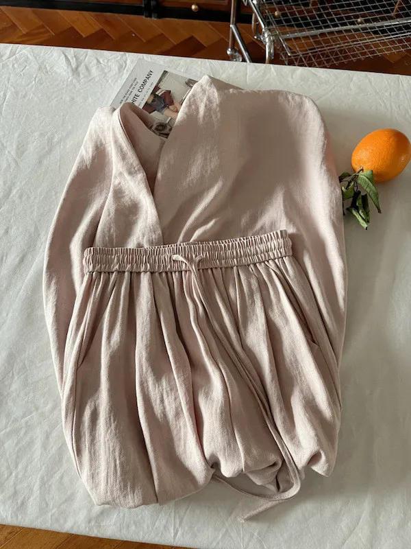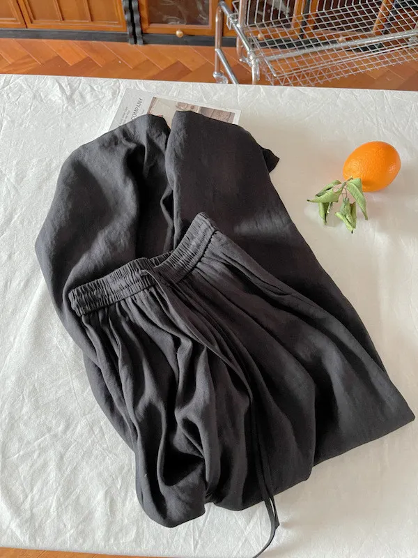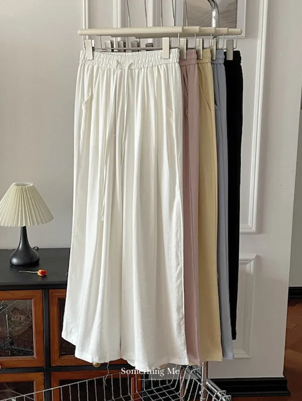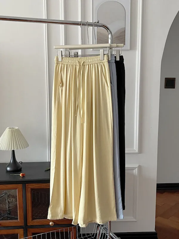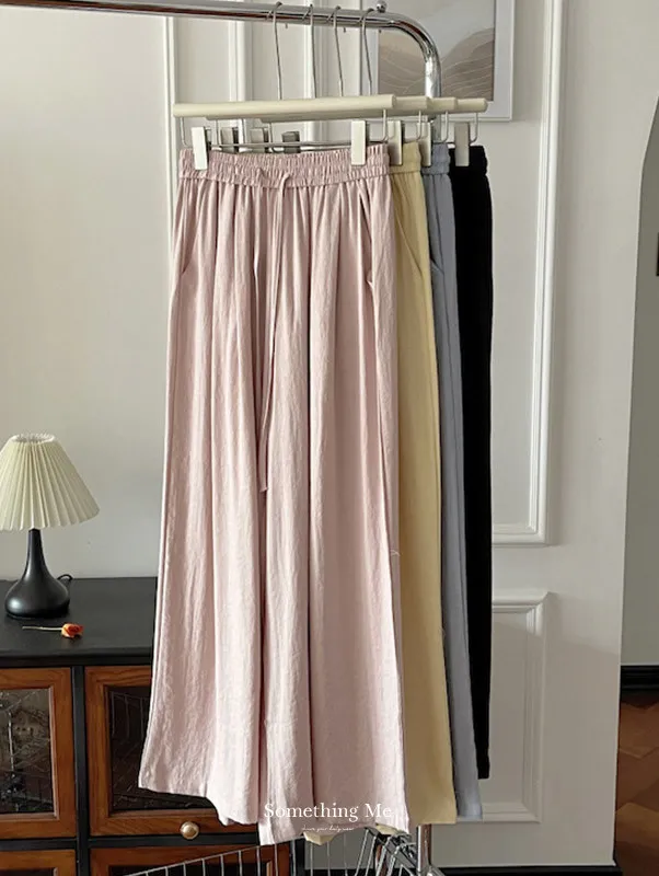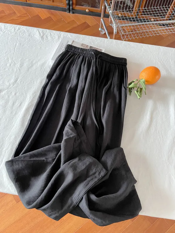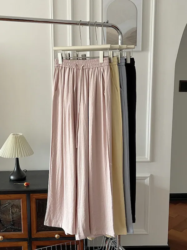 白色/粉色/鵝黃/霧籃/黑色 尺寸(公分) Free Size 腰圍 66-76 臀圍 144 大腿圍 62 褲長 101 ※尺寸為手工測量,誤差±3-5cm上下為合理範圍※ 材質 / 麻混紡,聚酯纖維