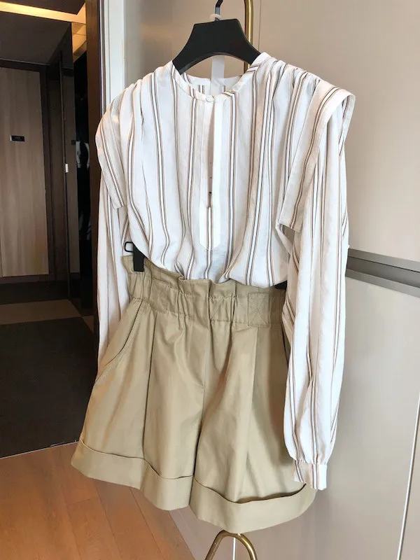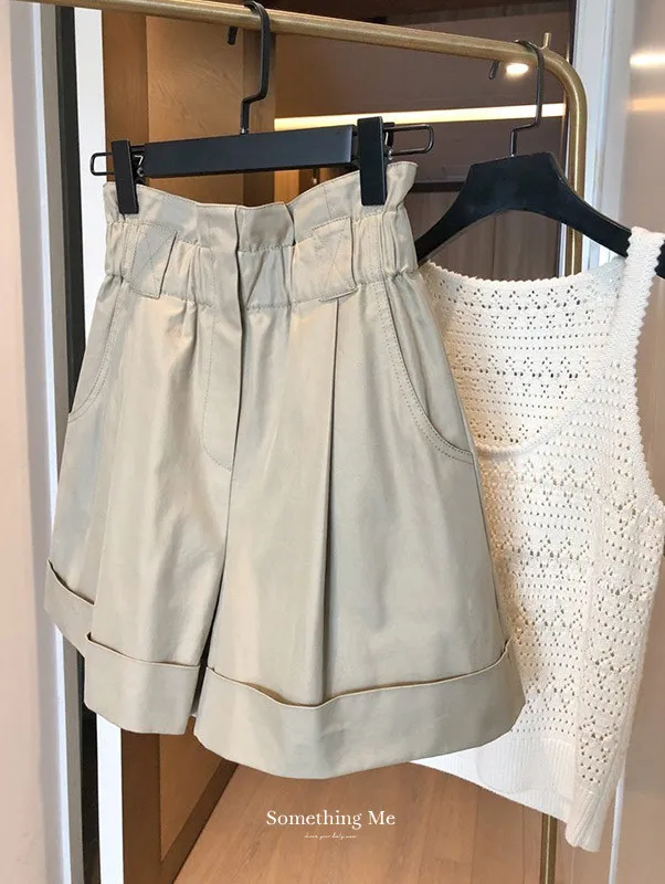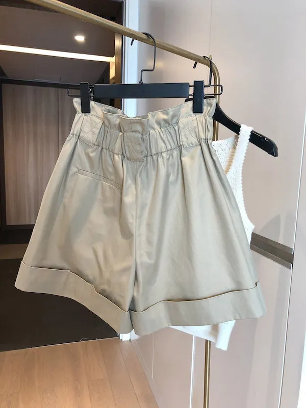 休閒反摺卡其寬鬆A字短褲