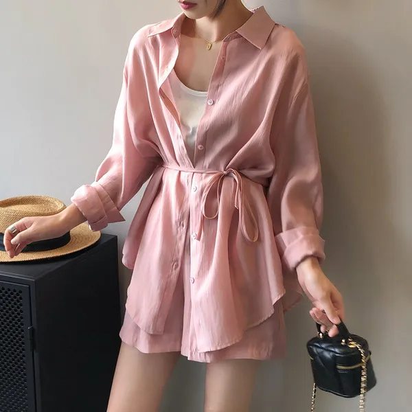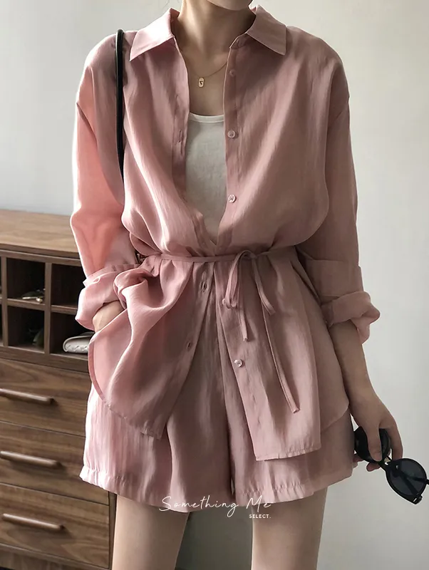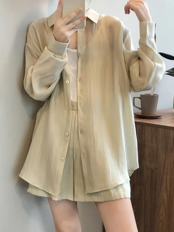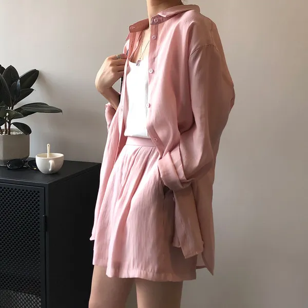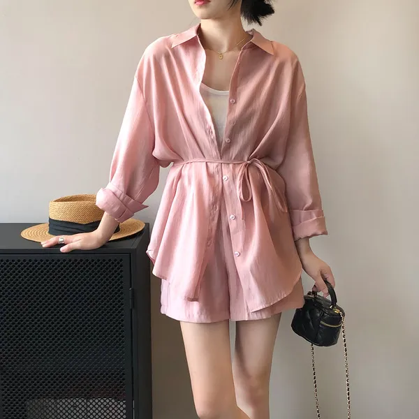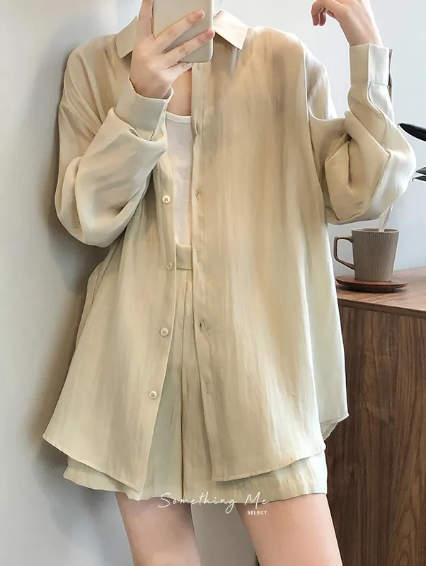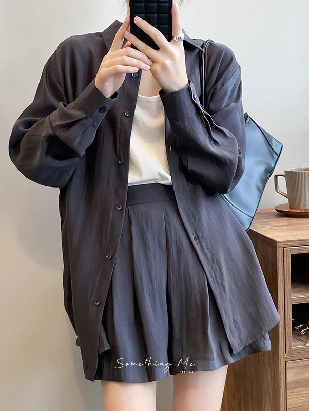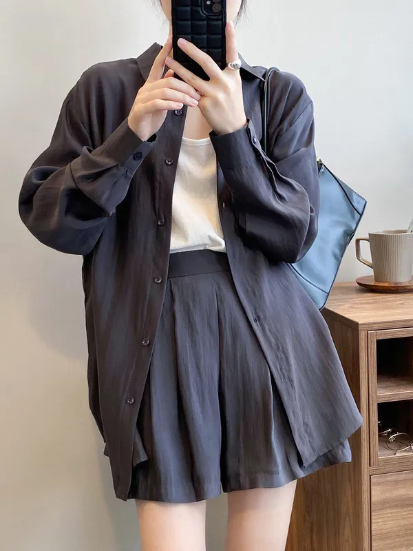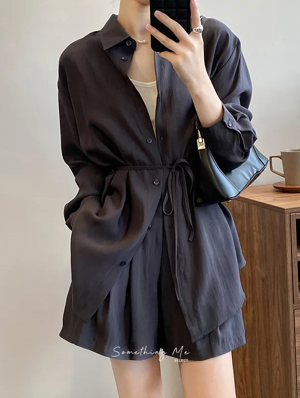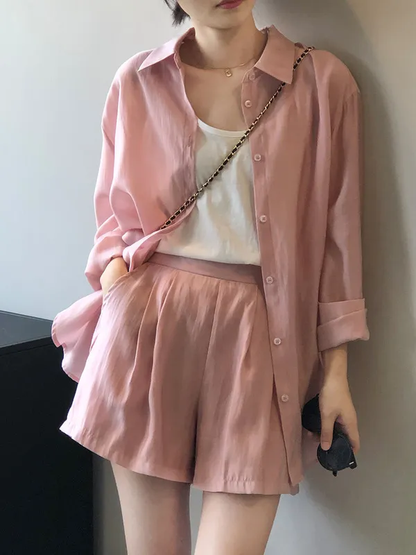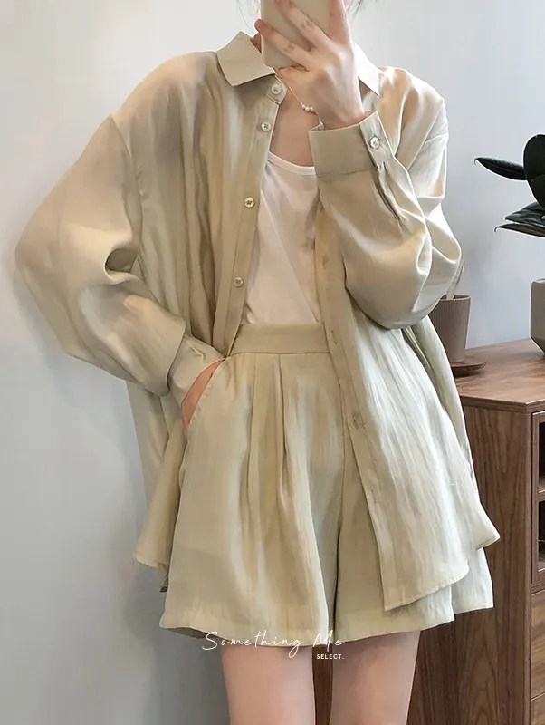 慵懶夏日襯衫套裝(襯衫+短褲) 3色