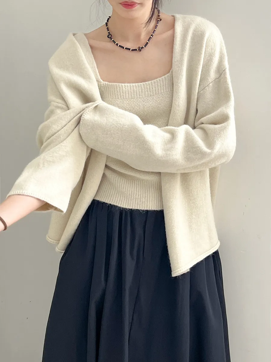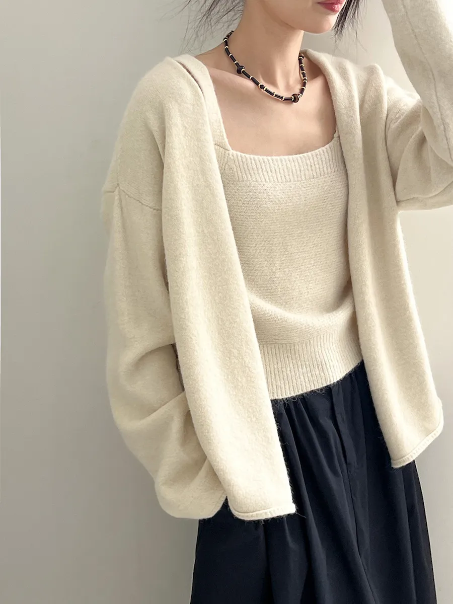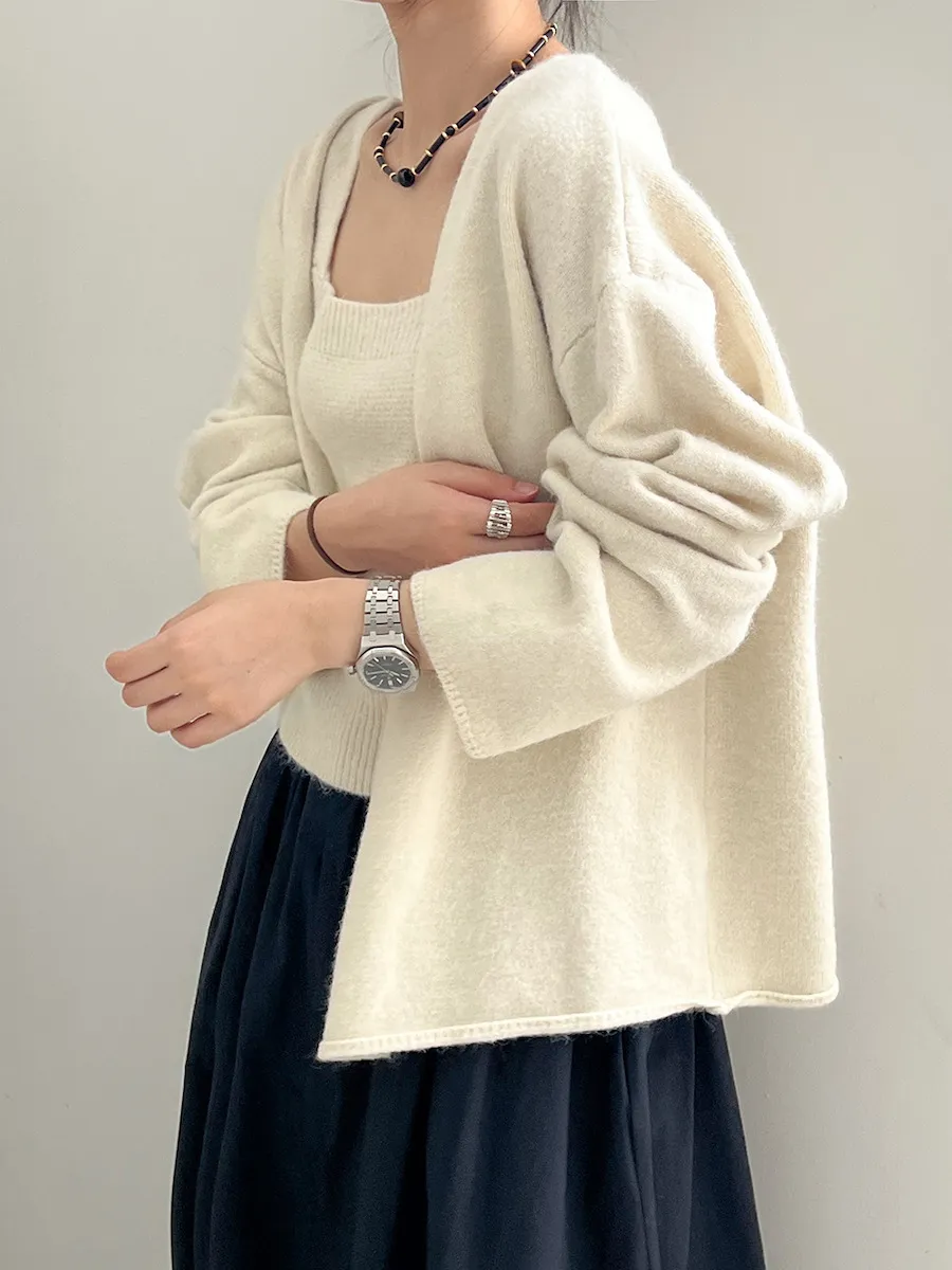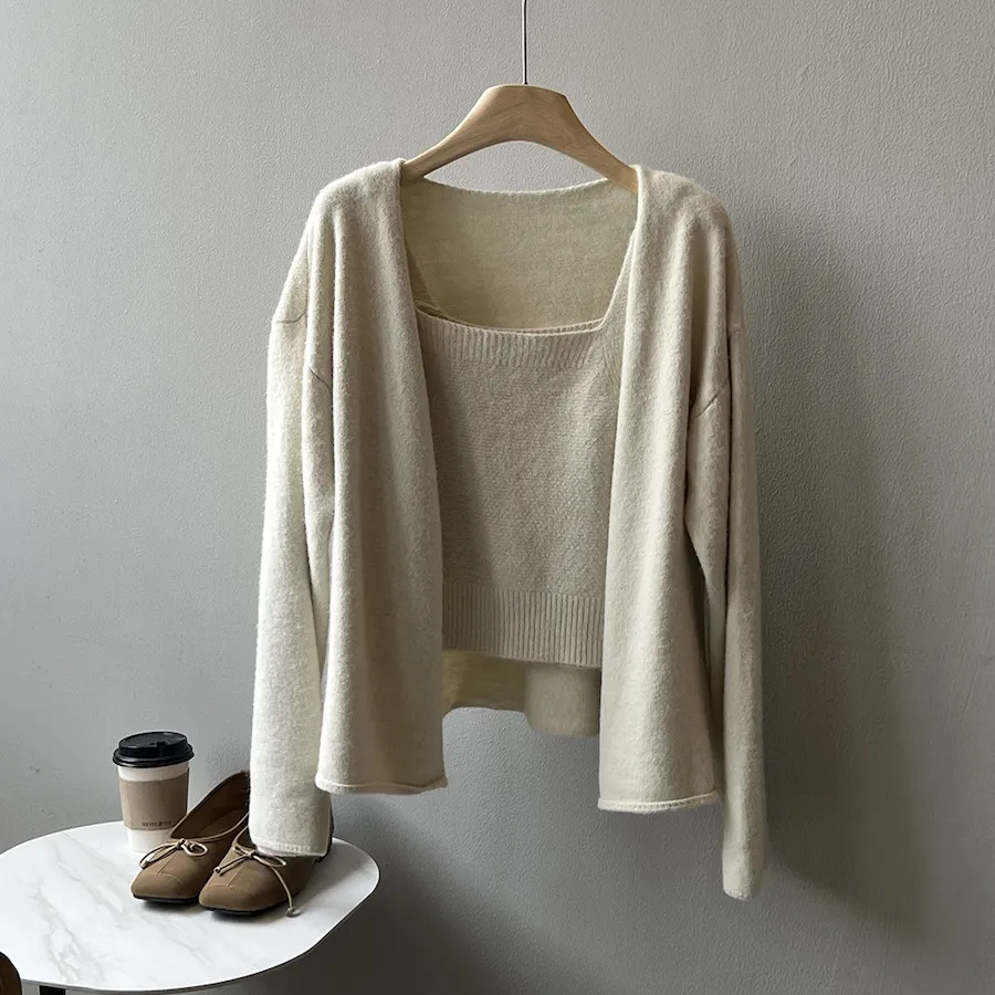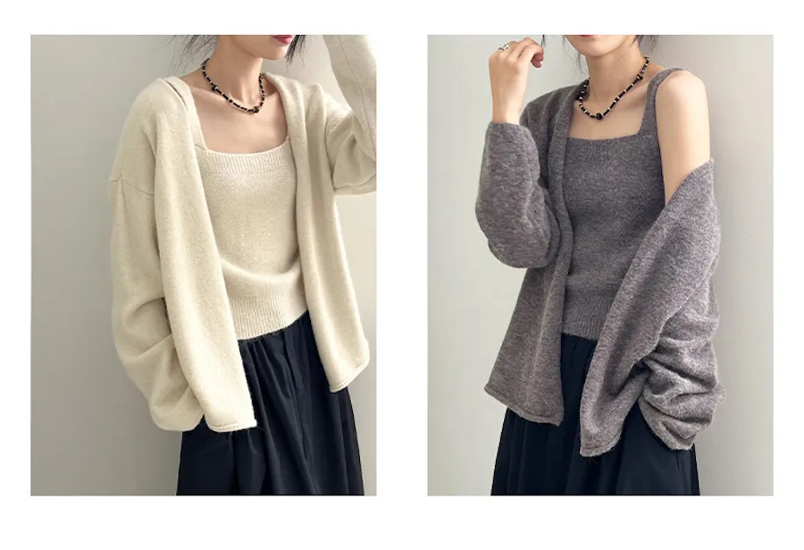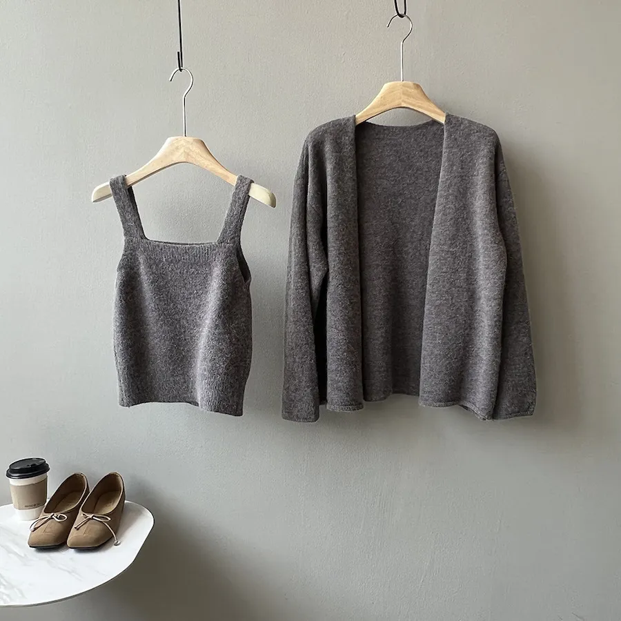 純色氣質雙面魅力針織套裝(罩衫+內搭背心) 4色