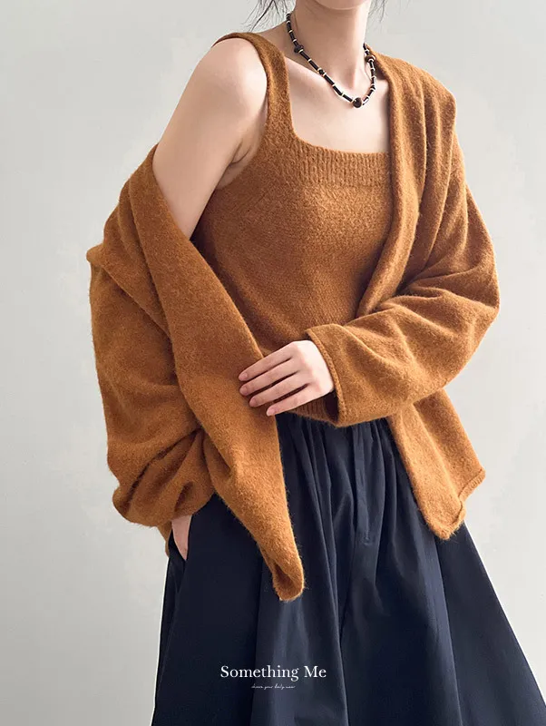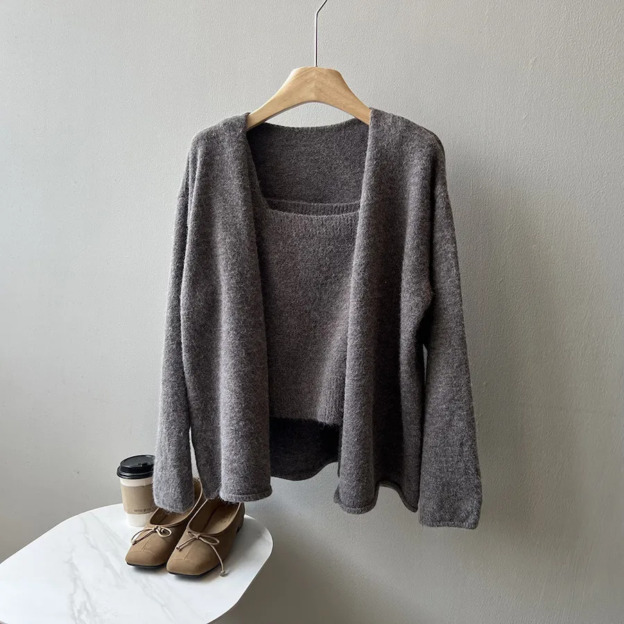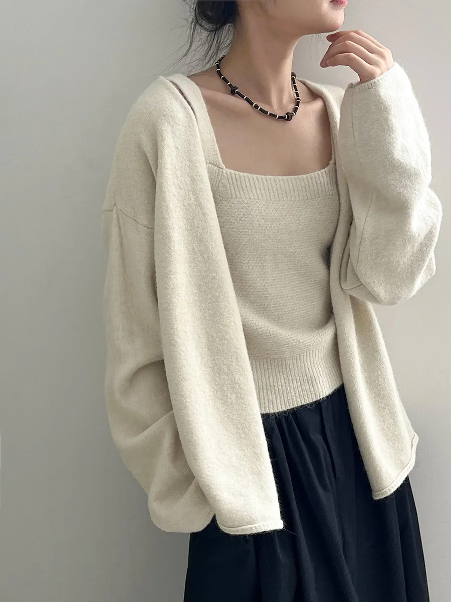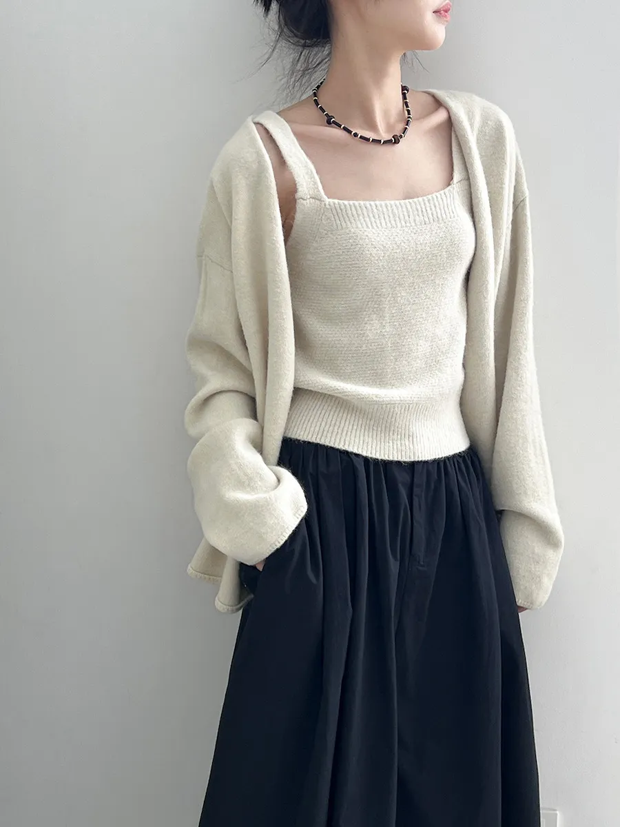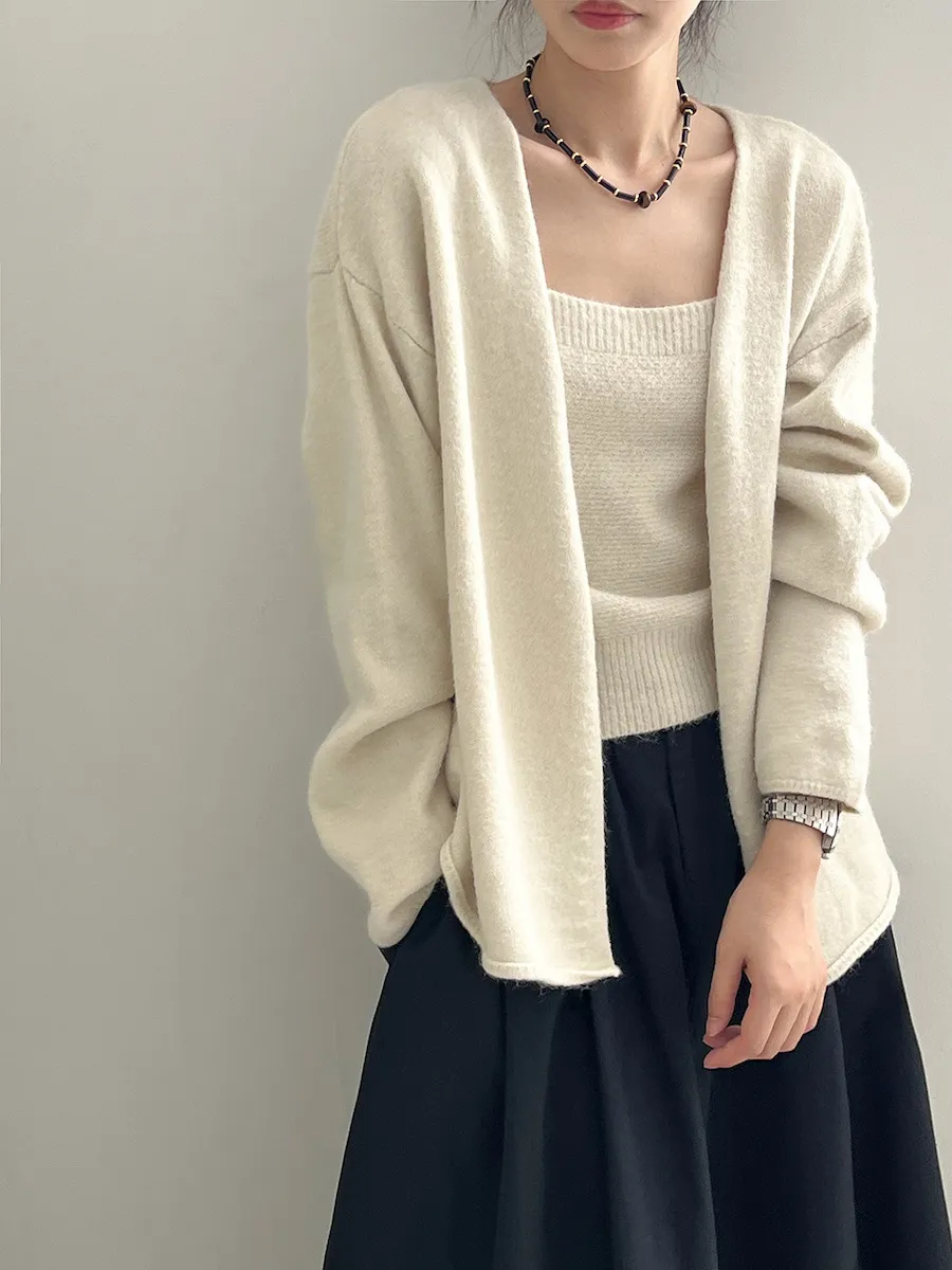 純色氣質雙面魅力針織套裝(罩衫+內搭背心) 4色
