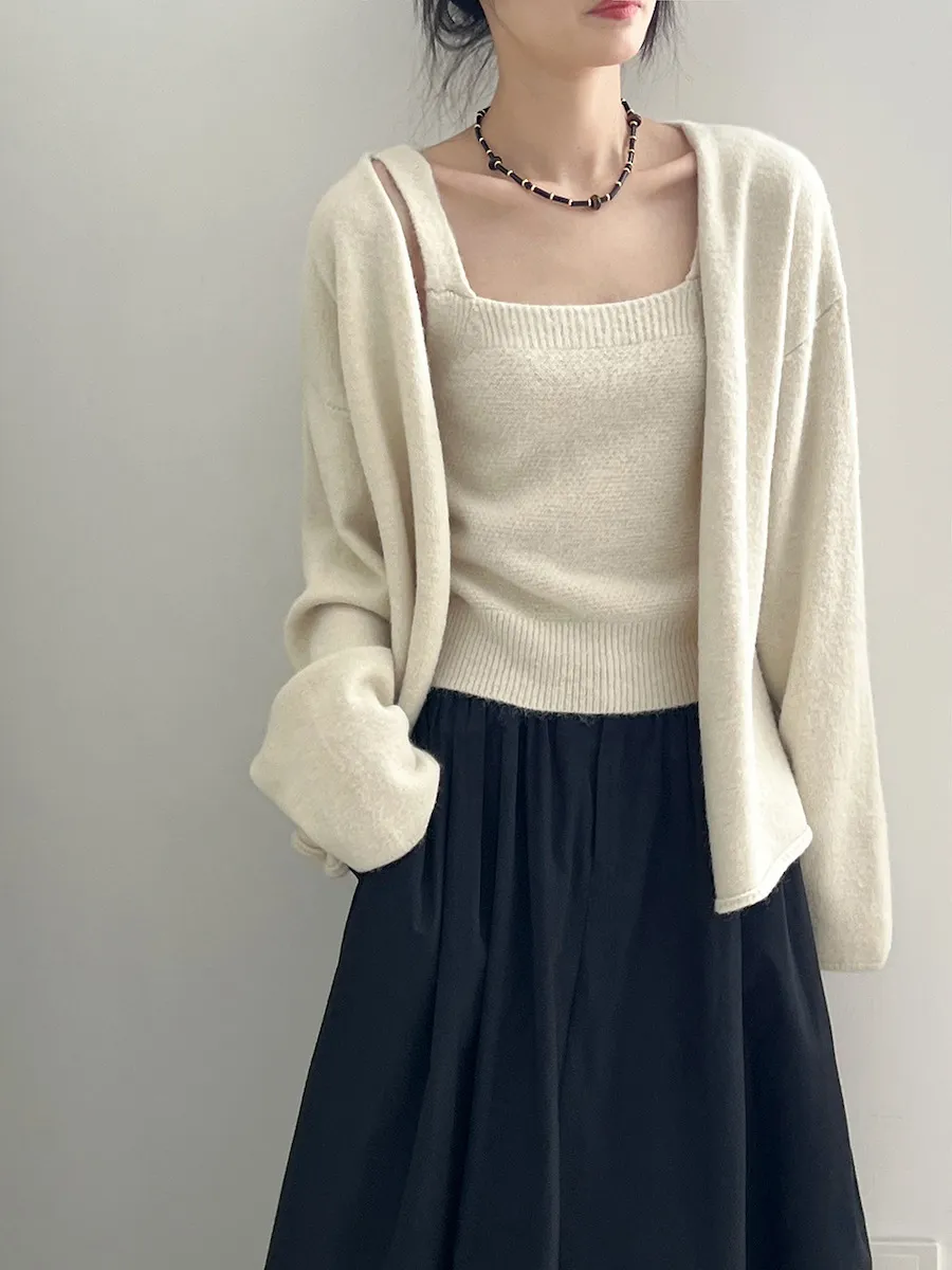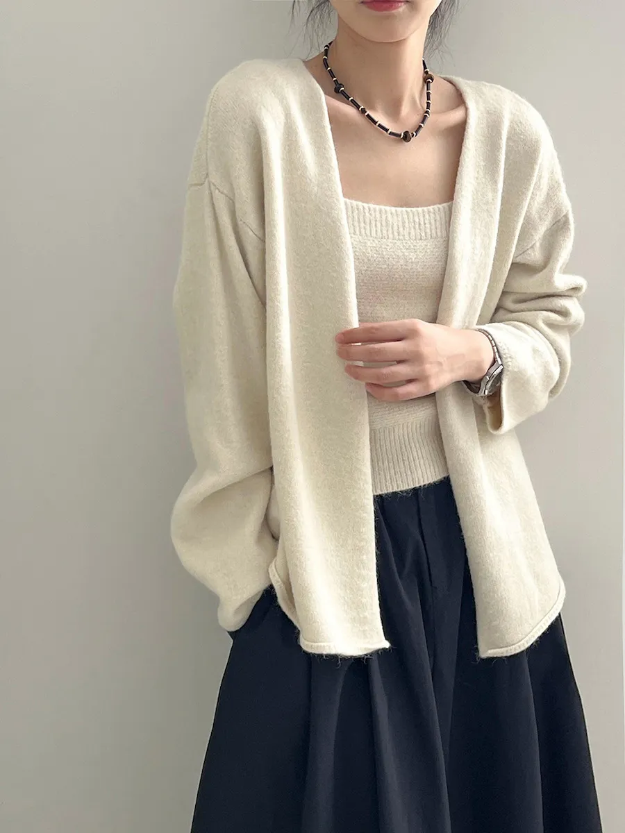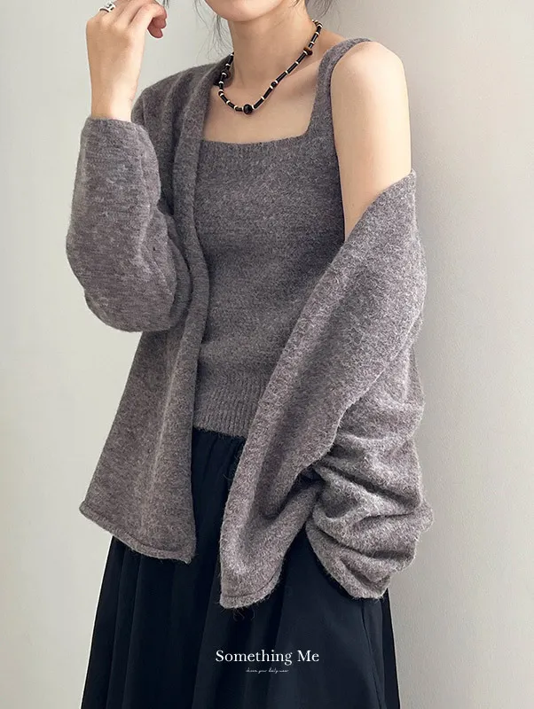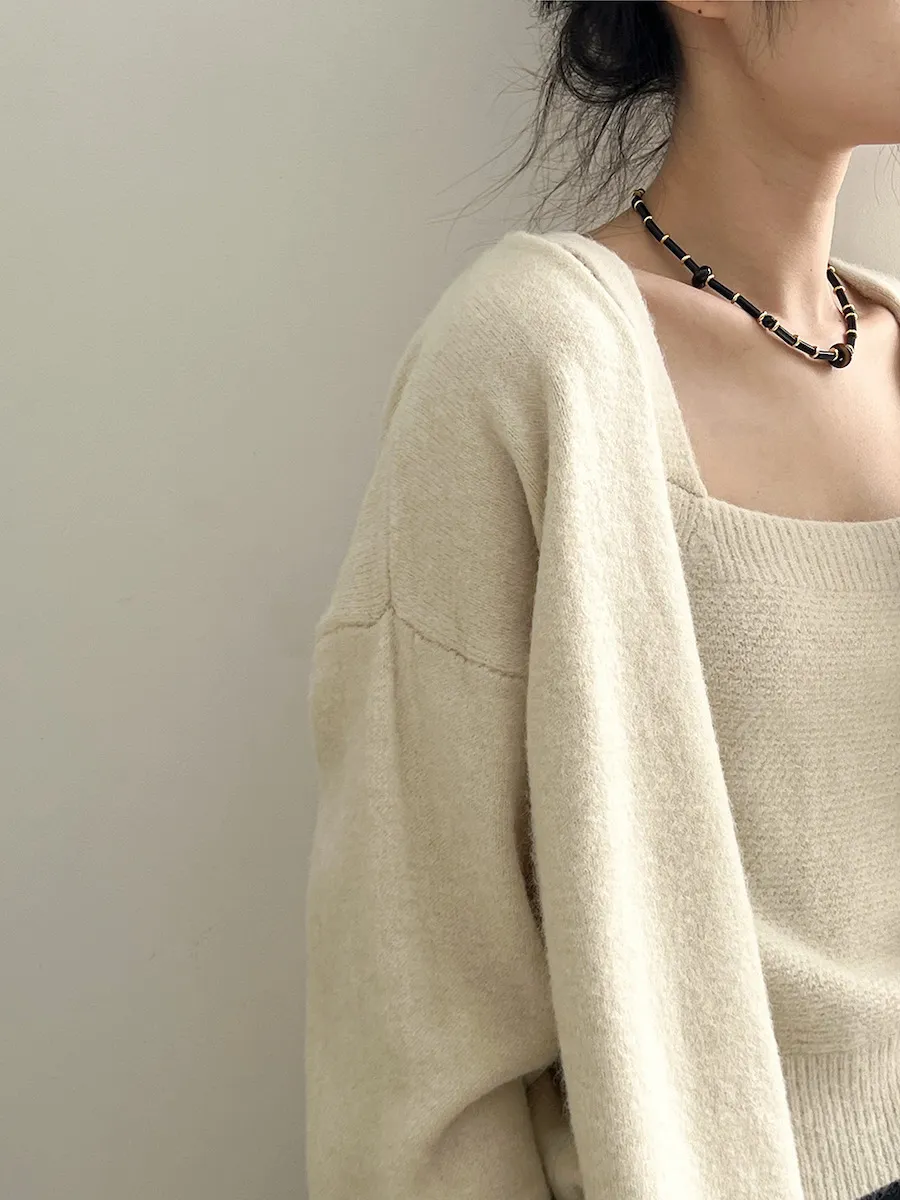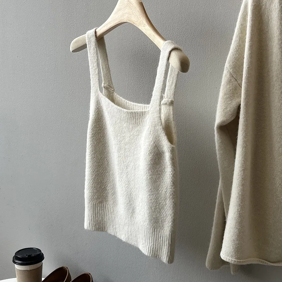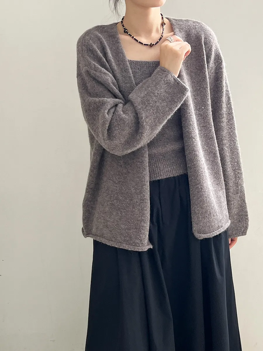 純色氣質雙面魅力針織套裝(罩衫+內搭背心) 4色