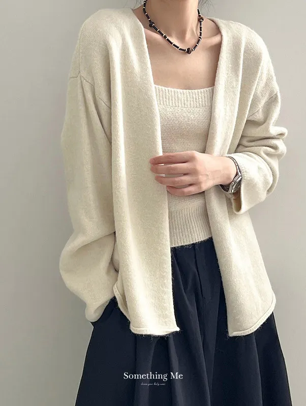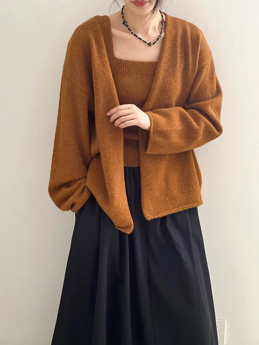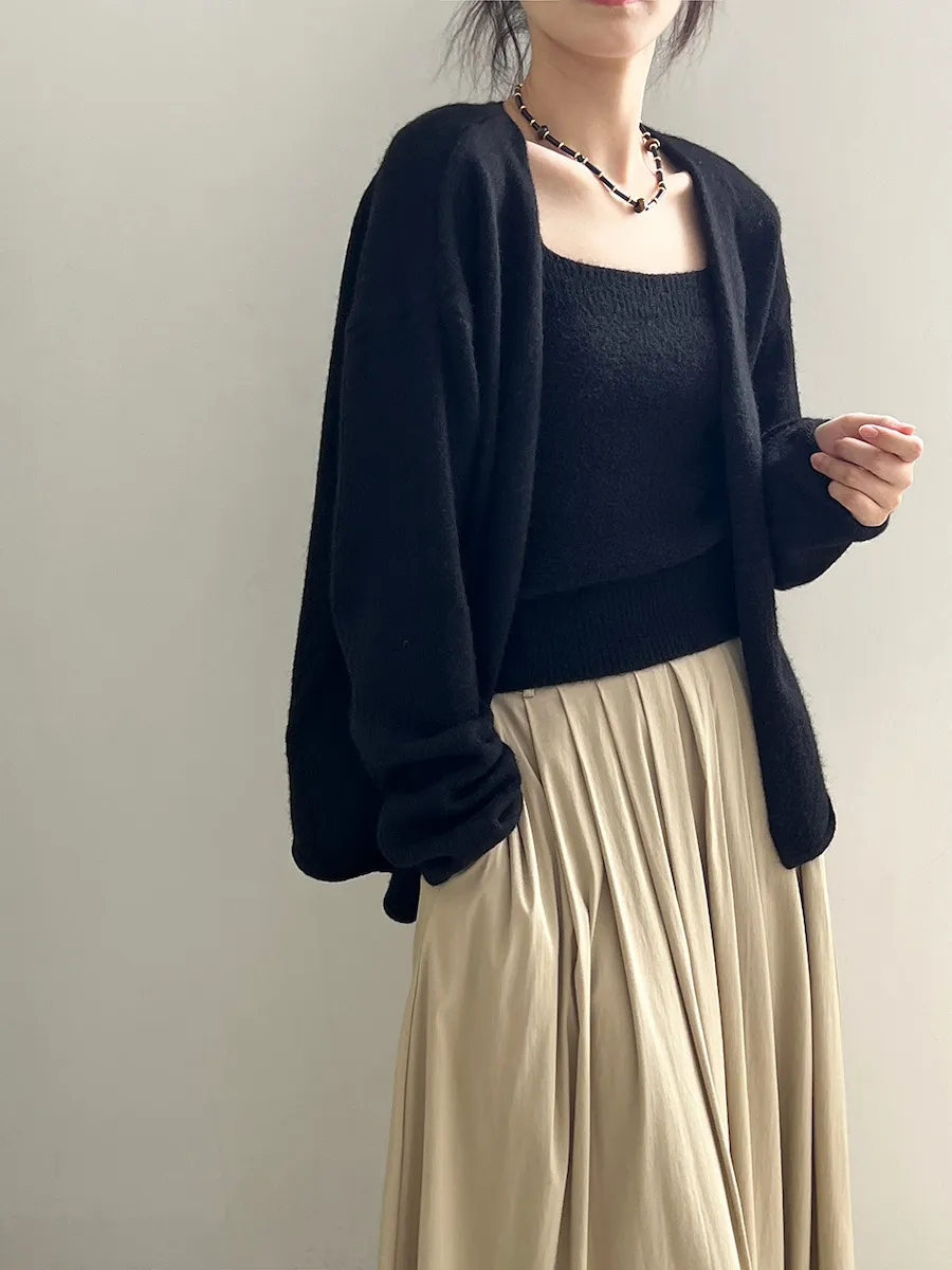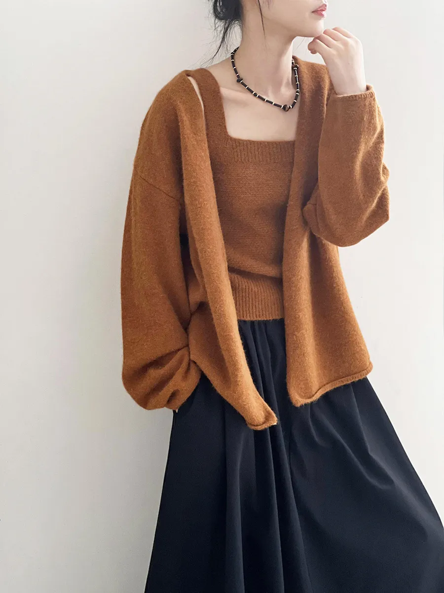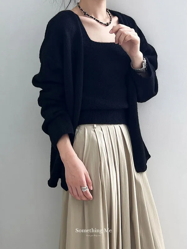 純色氣質雙面魅力針織套裝(罩衫+內搭背心) 4色