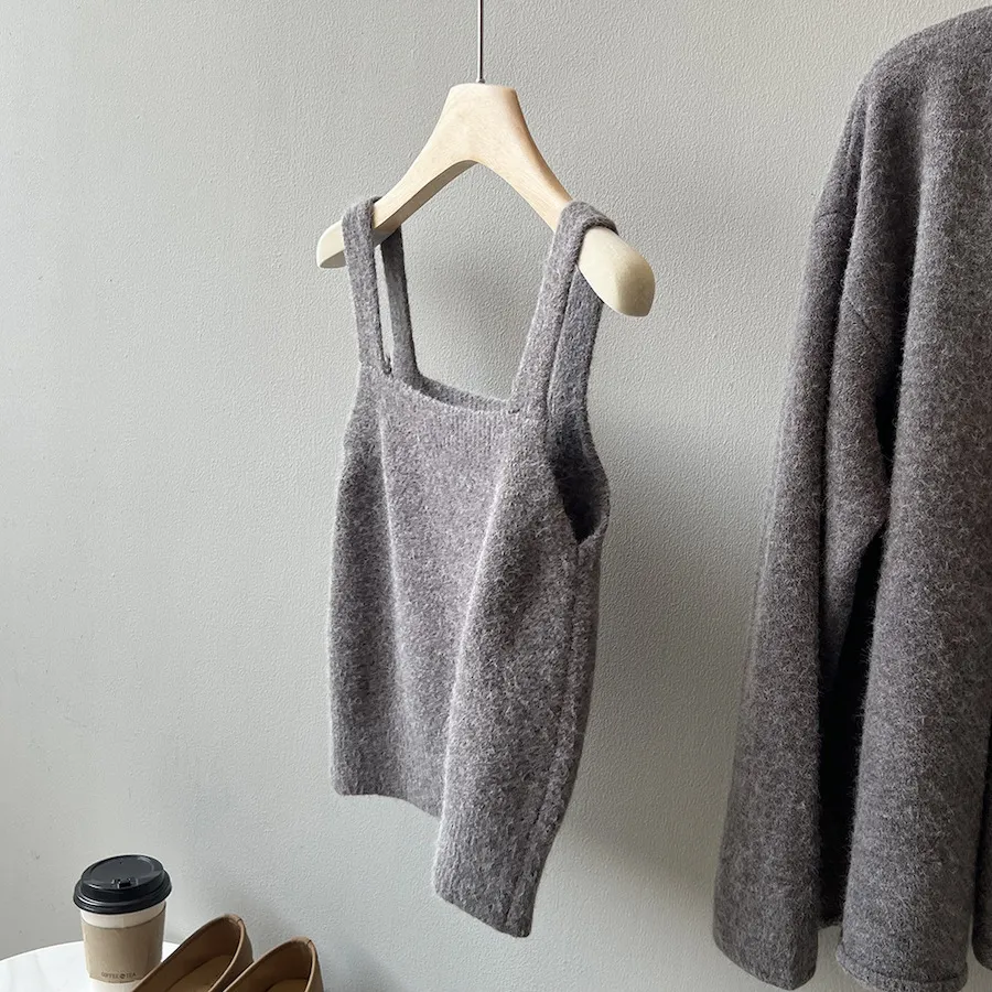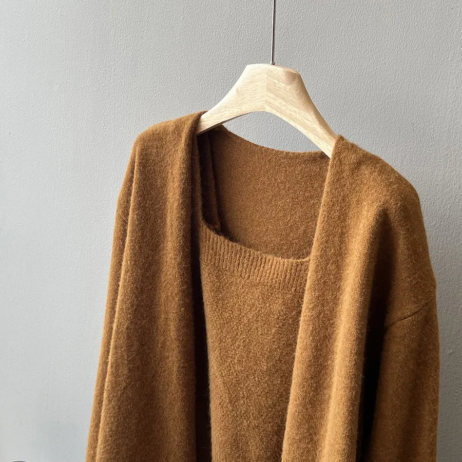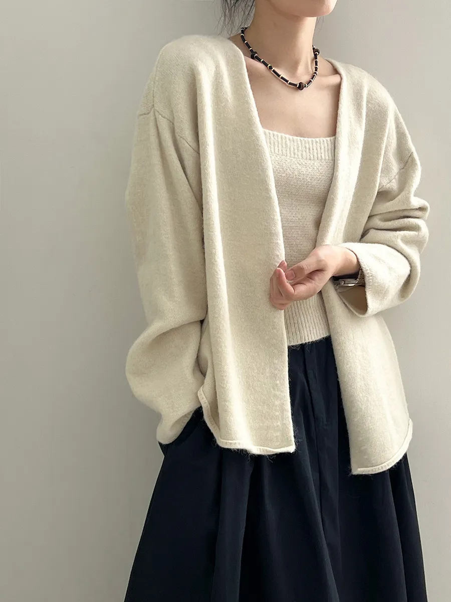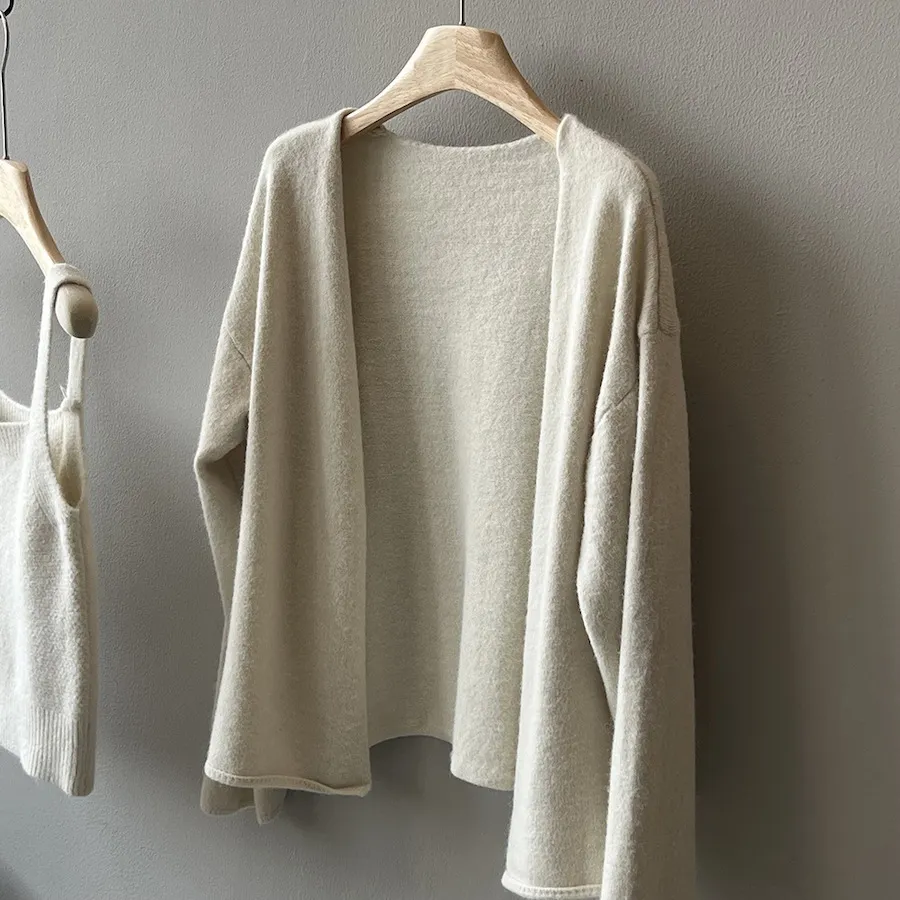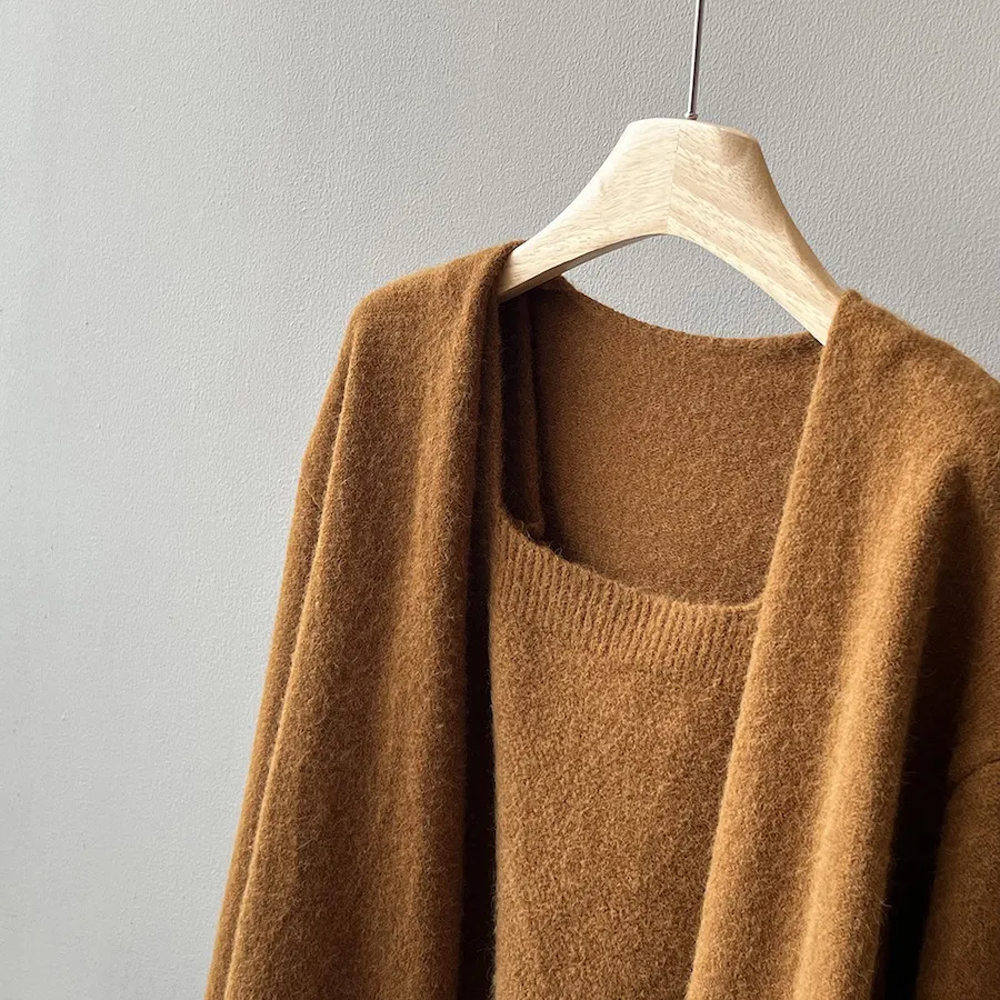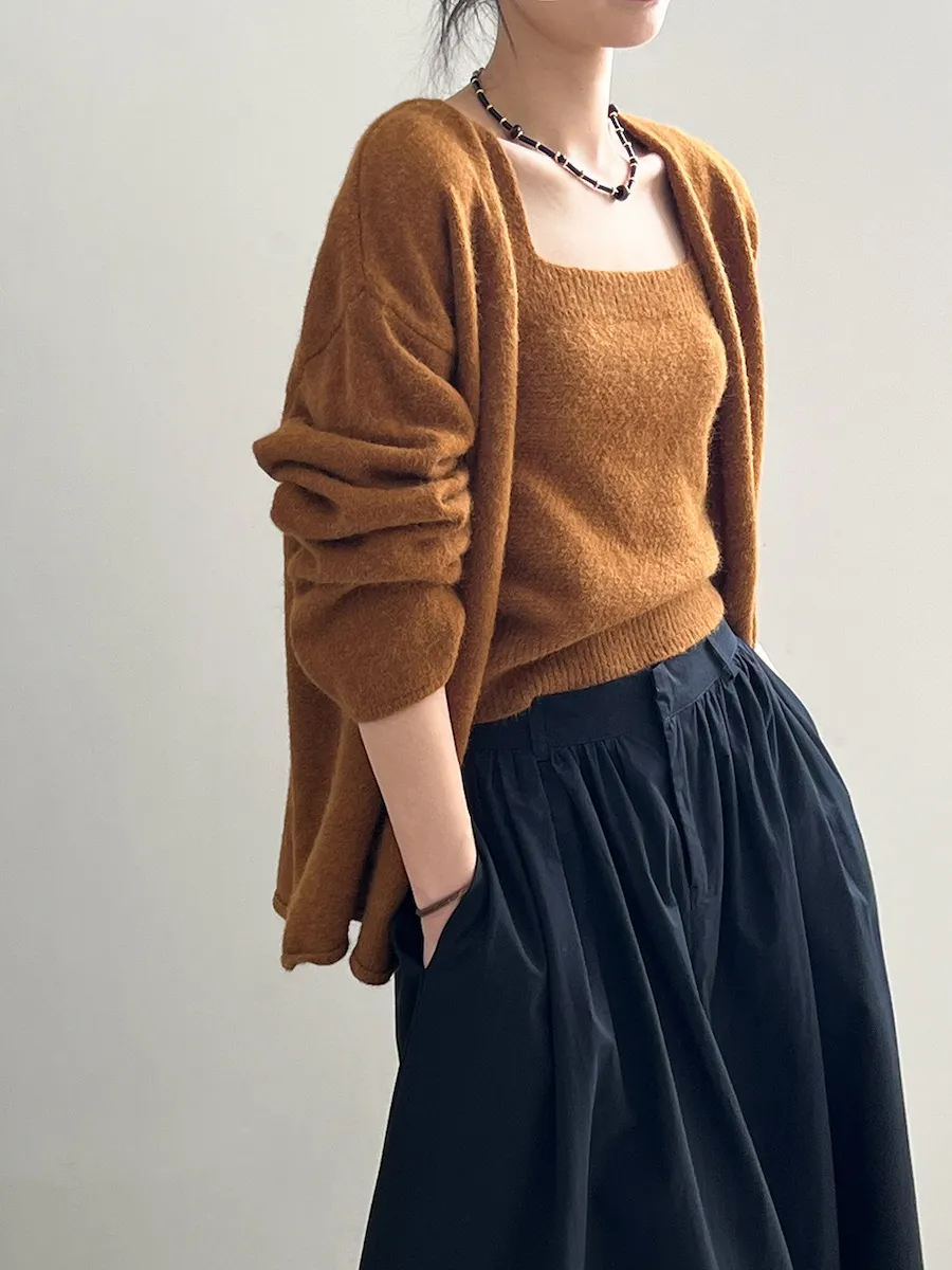 純色氣質雙面魅力針織套裝(罩衫+內搭背心) 4色