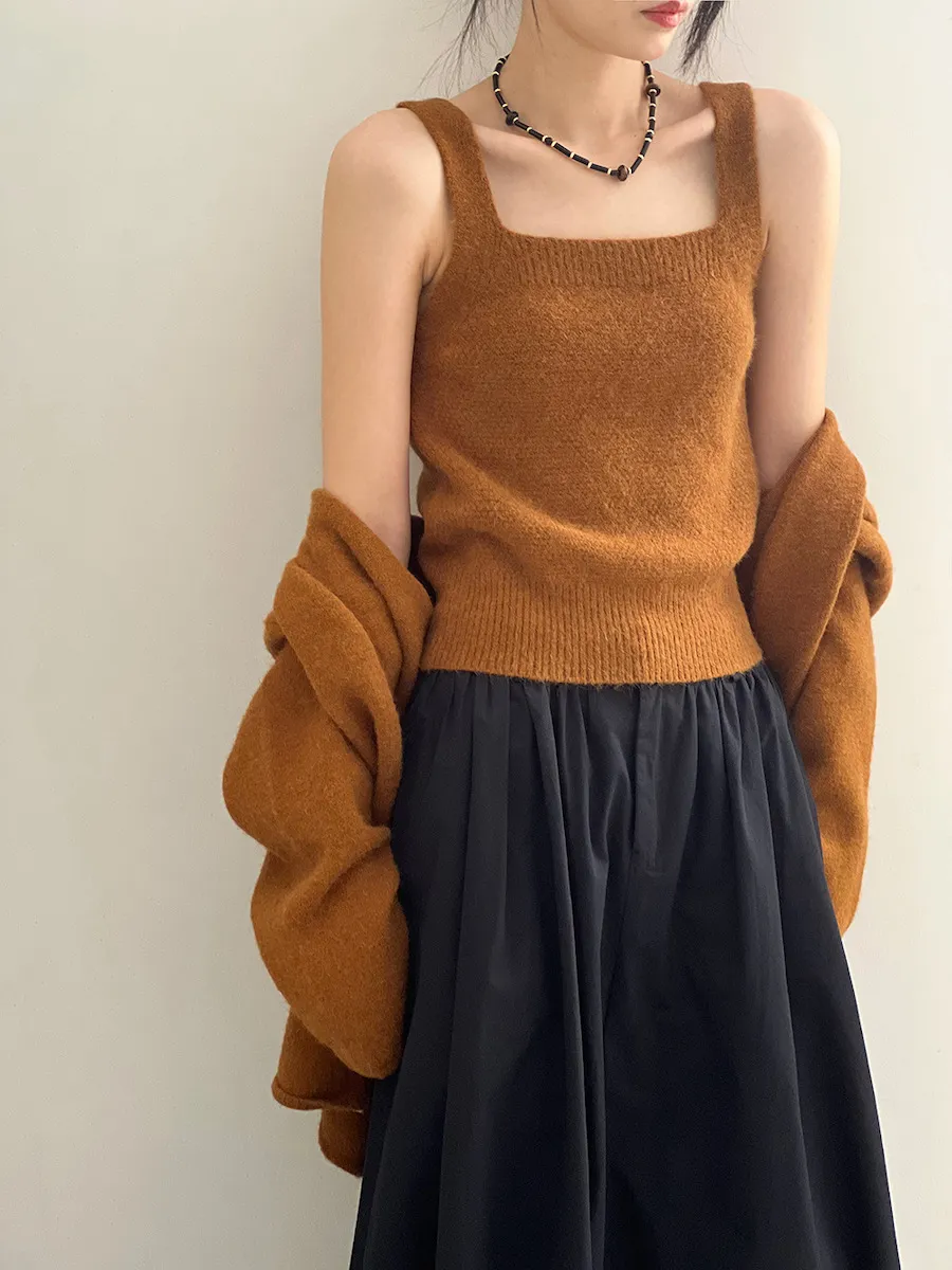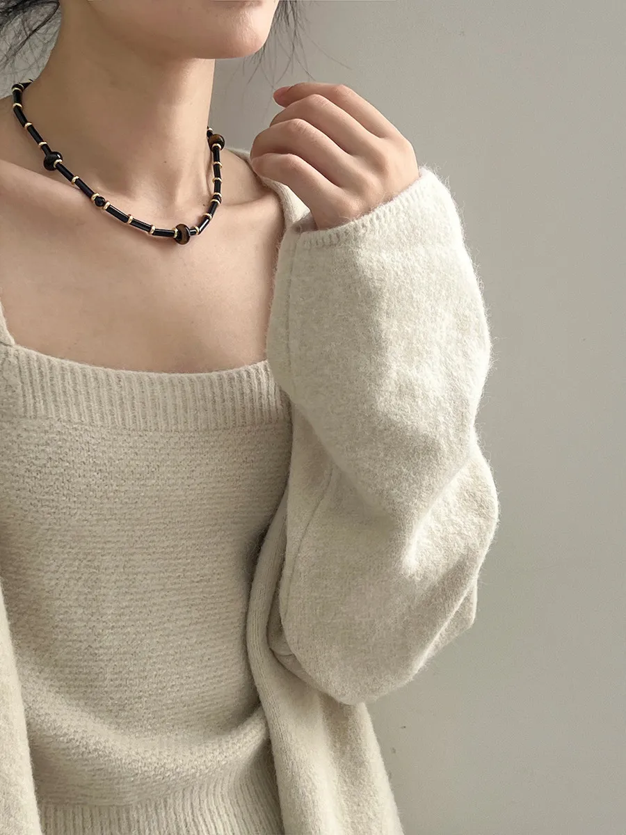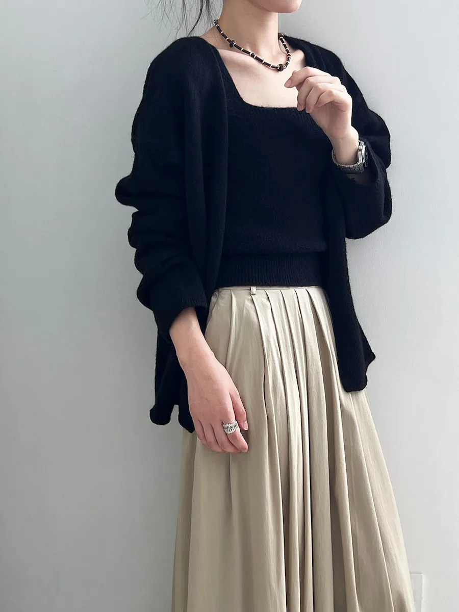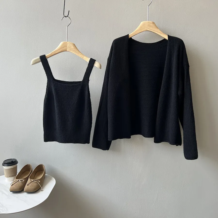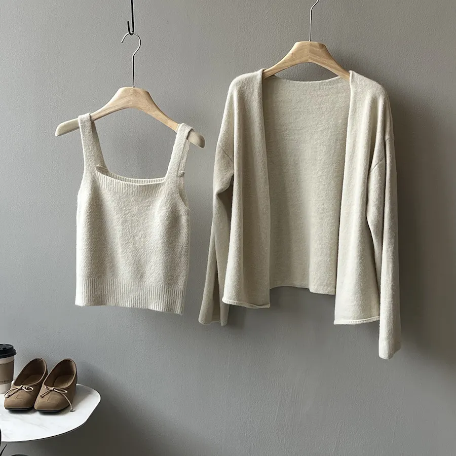 JE240903 純色氣質雙面魅力針織套裝(罩衫+內搭背心)
