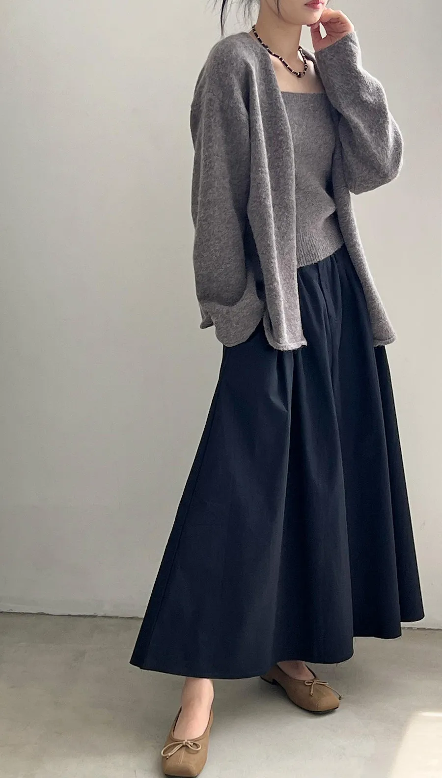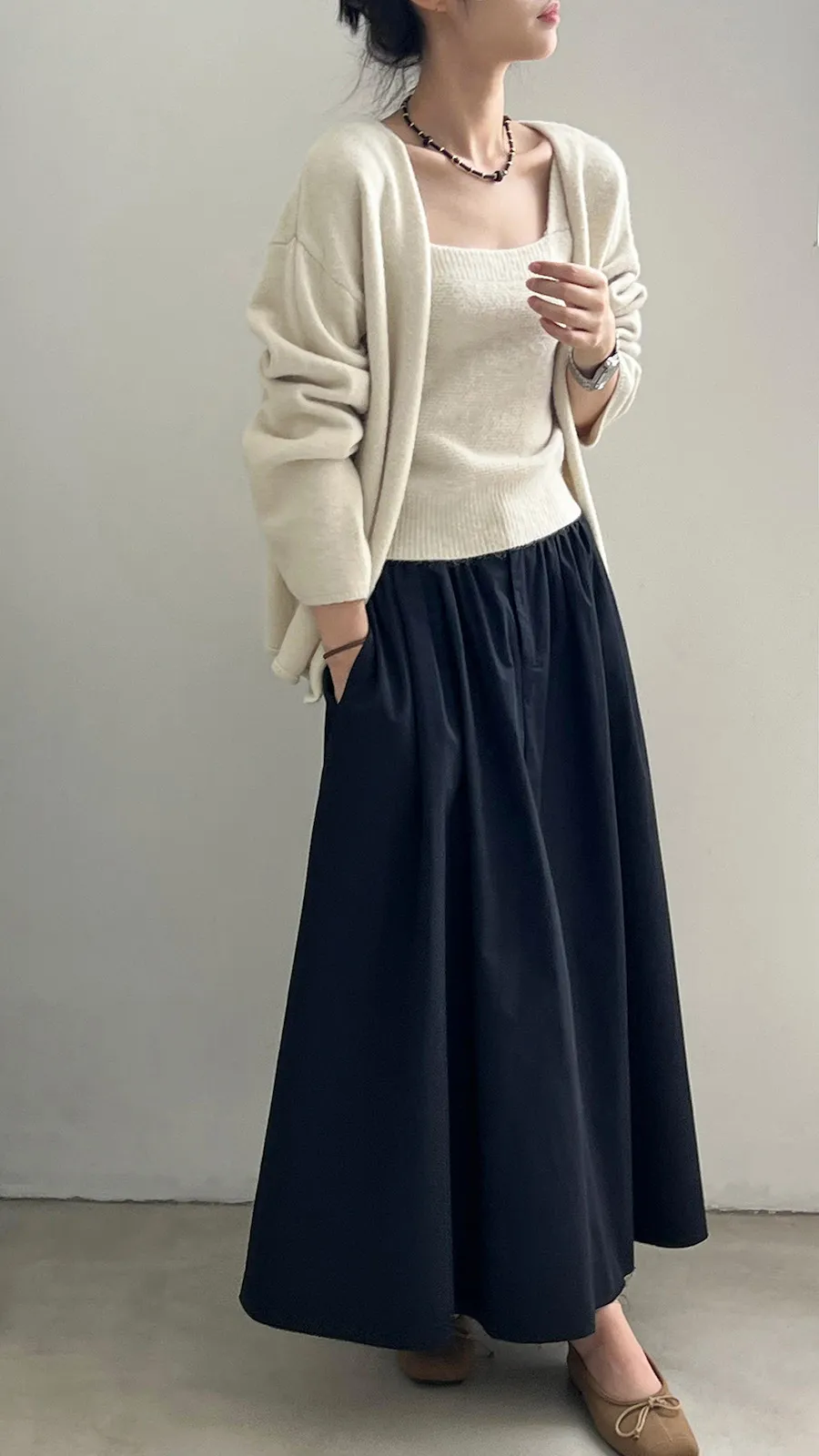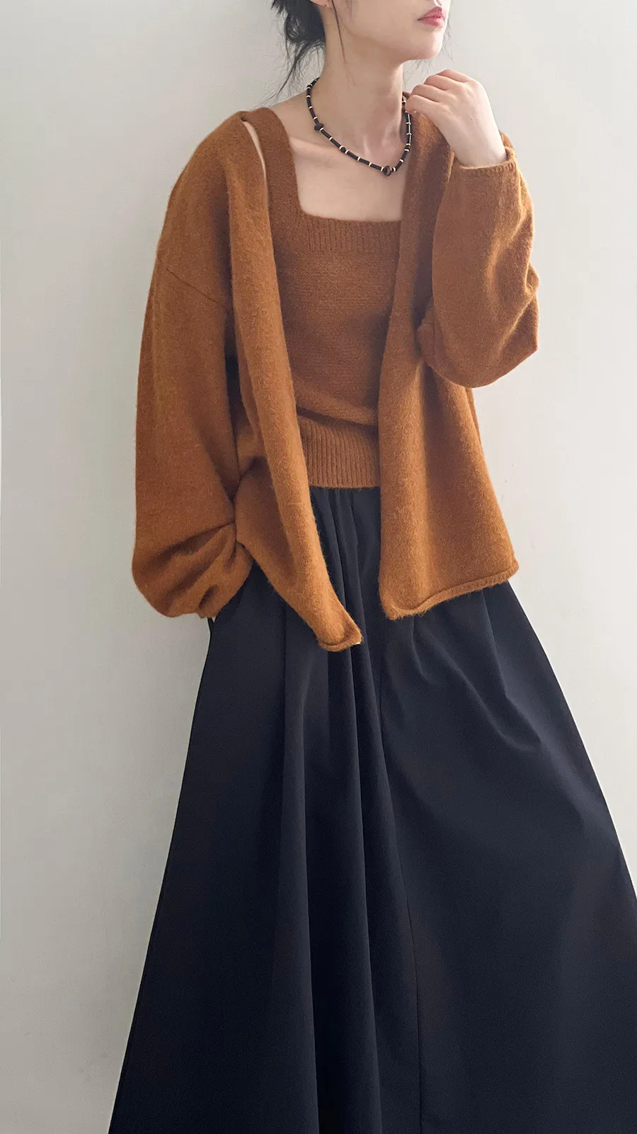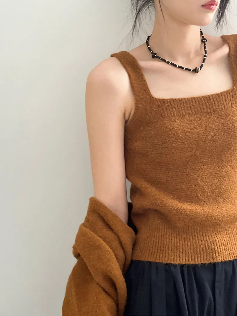 JE240903 純色氣質雙面魅力針織套裝(罩衫+內搭背心)