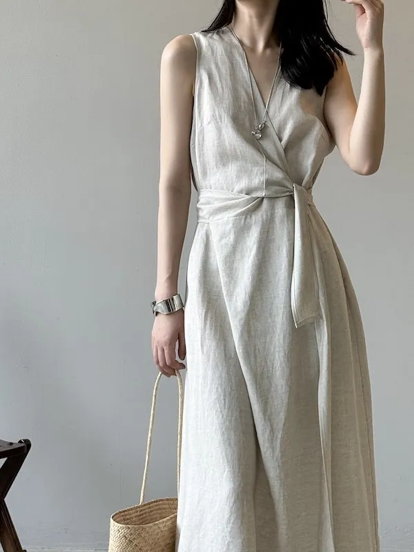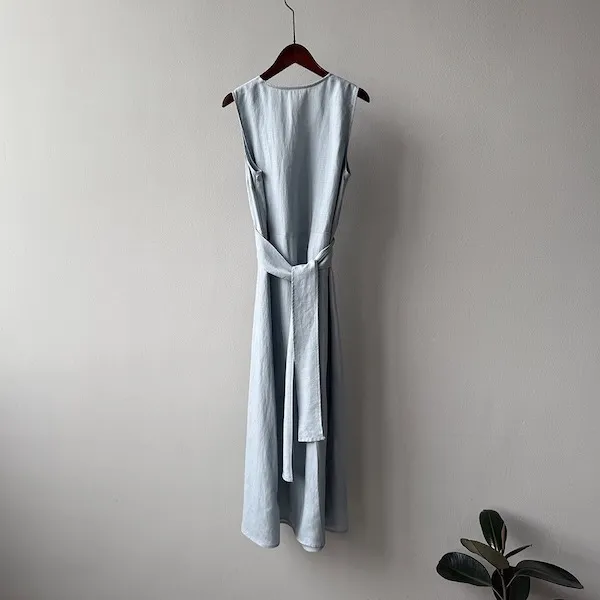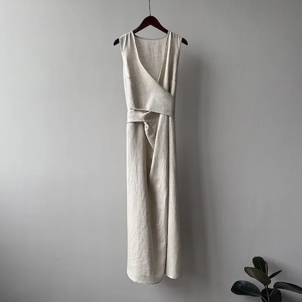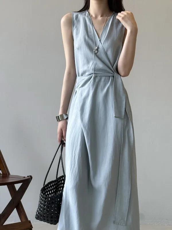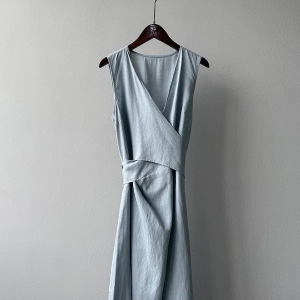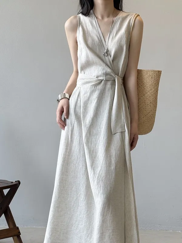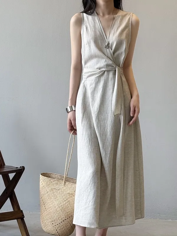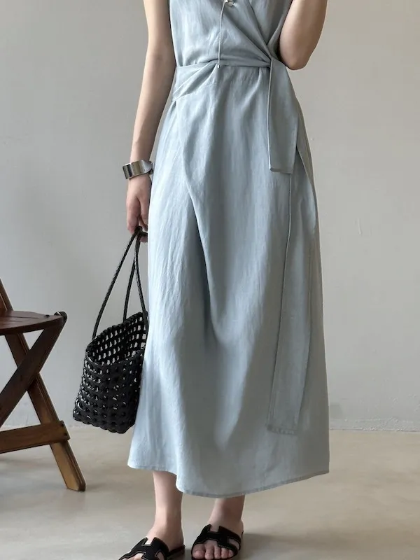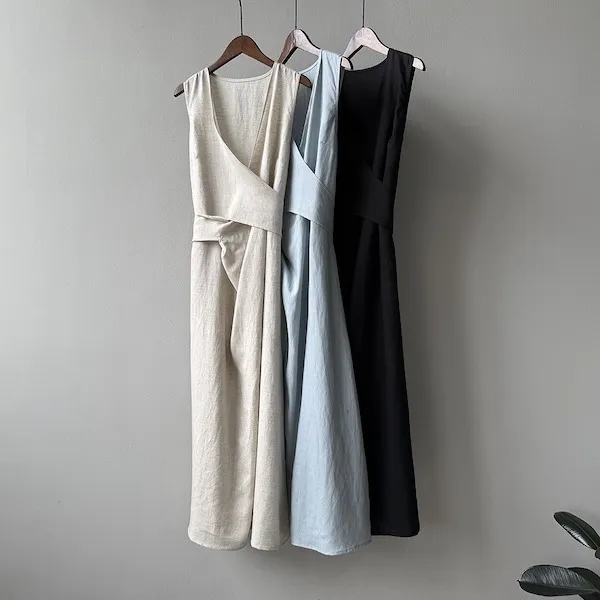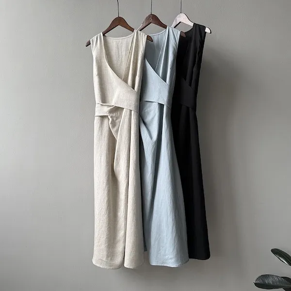 雲水私語 天絲亞麻交叉綁帶洋裝 3色