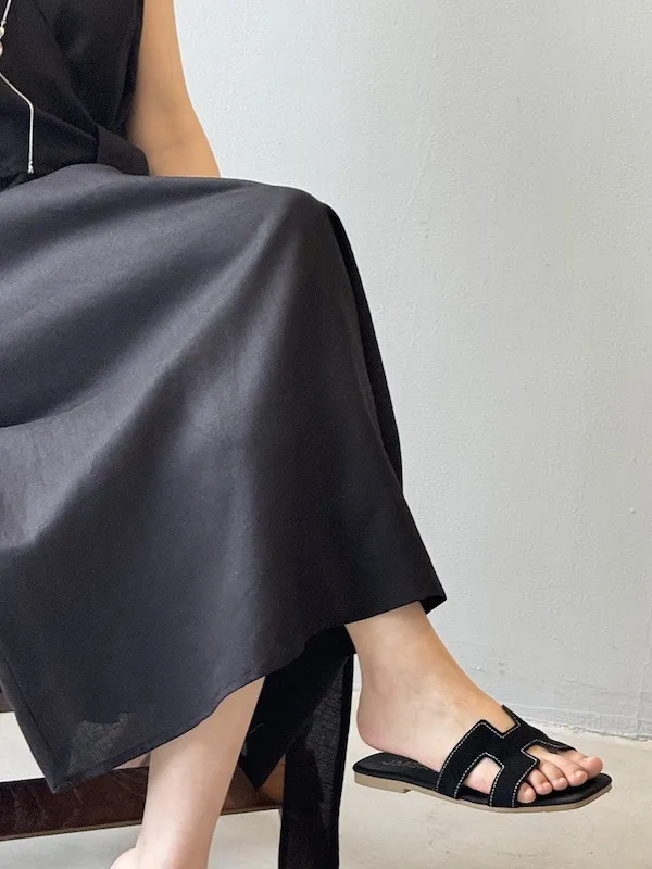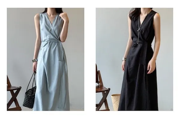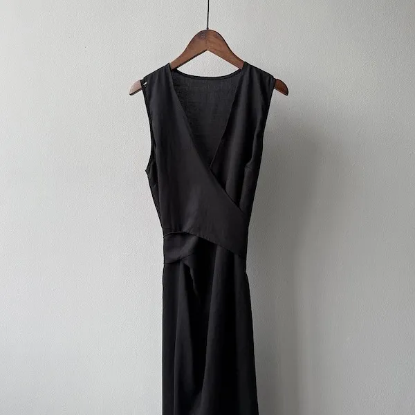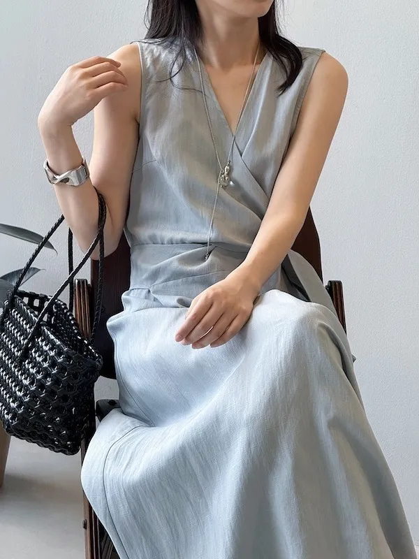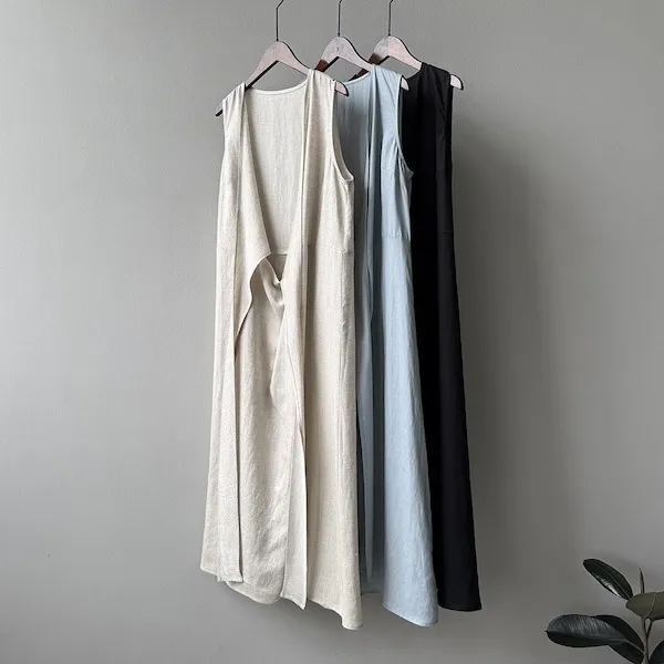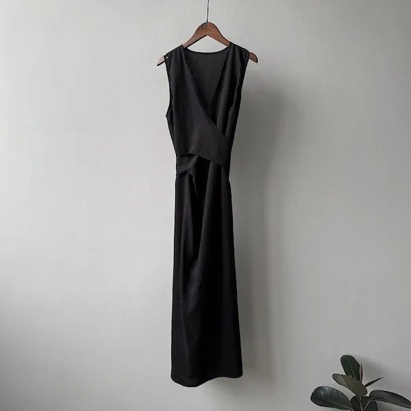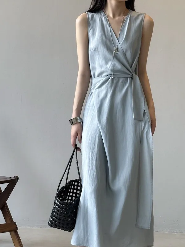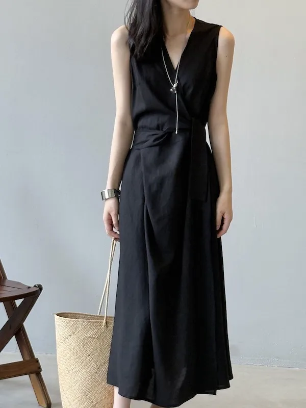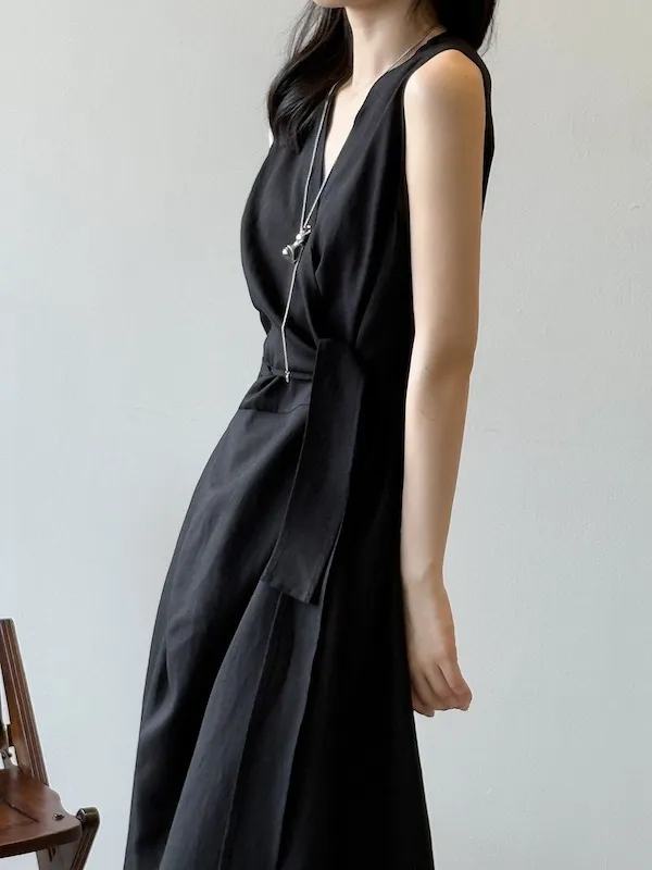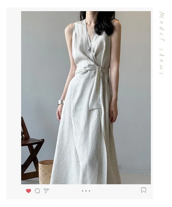 雲水私語 天絲亞麻交叉綁帶洋裝 3色