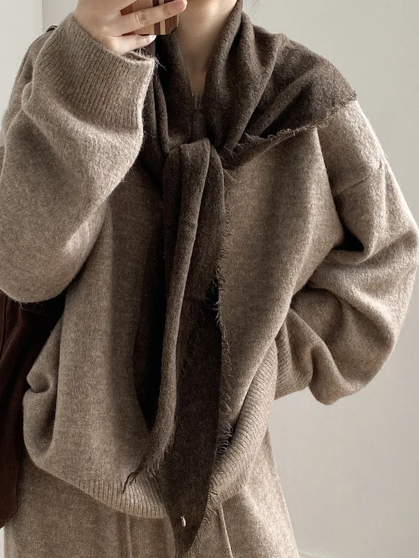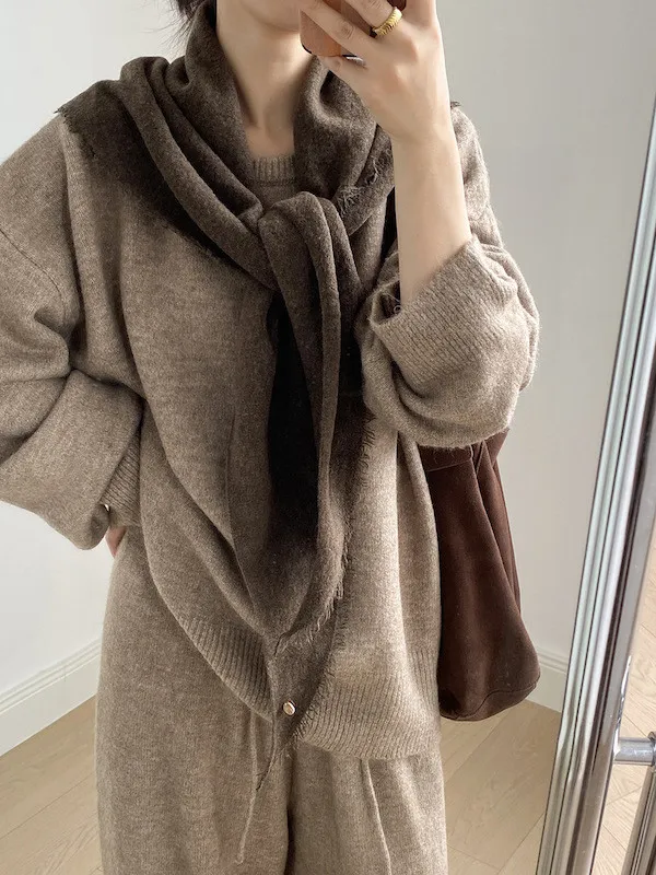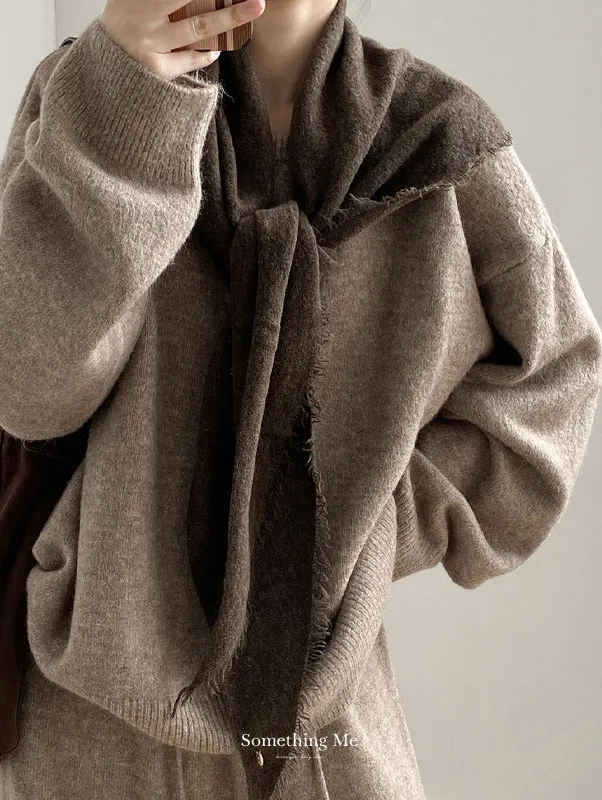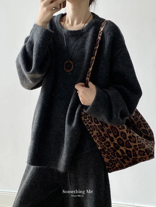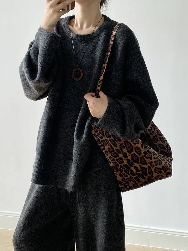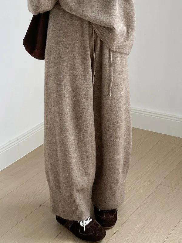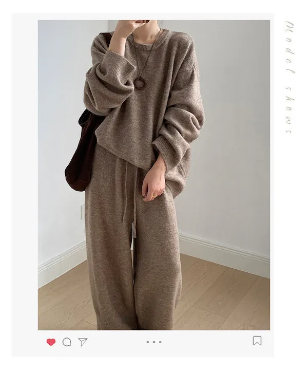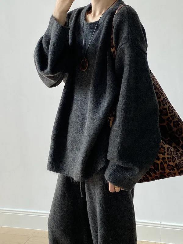 慵懶落肩 垂墜鬆感針織毛衣套裝(毛衣+長褲) 2色