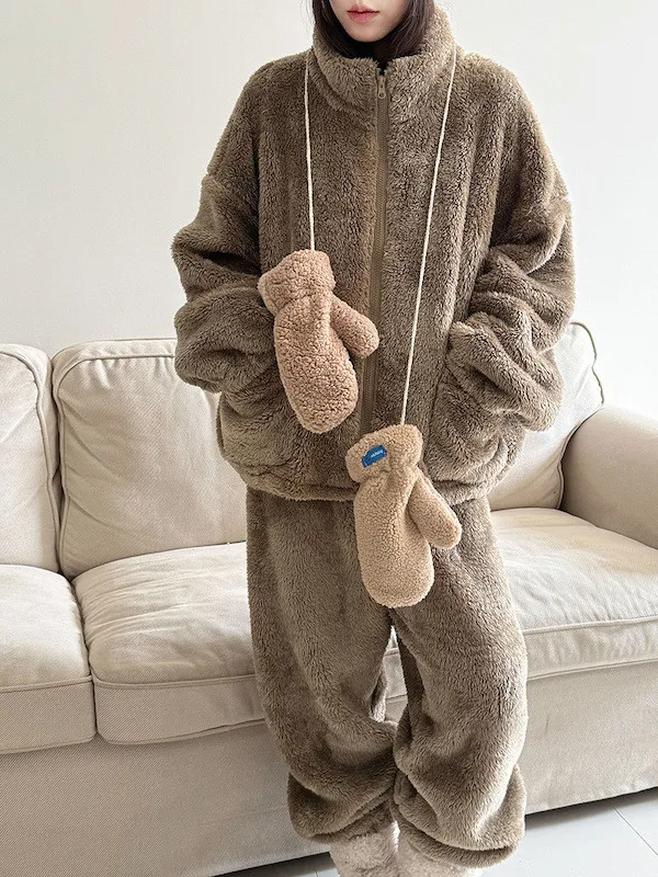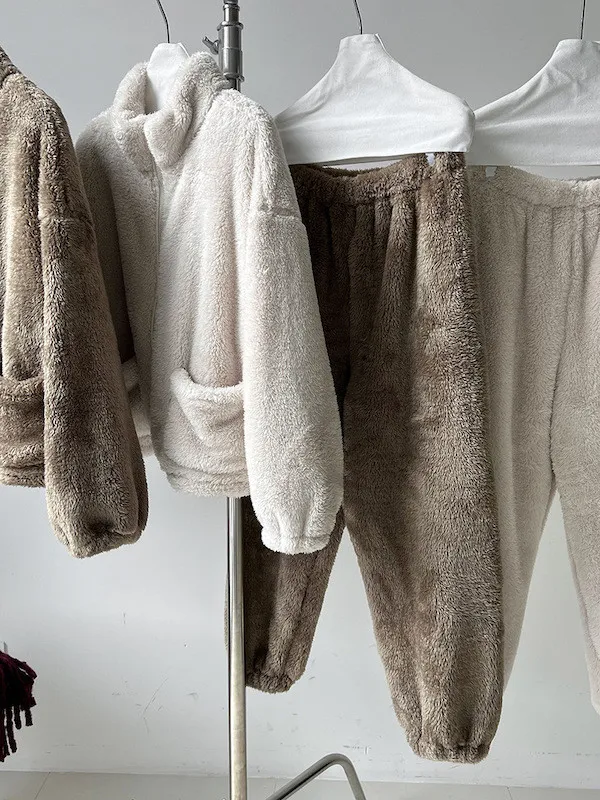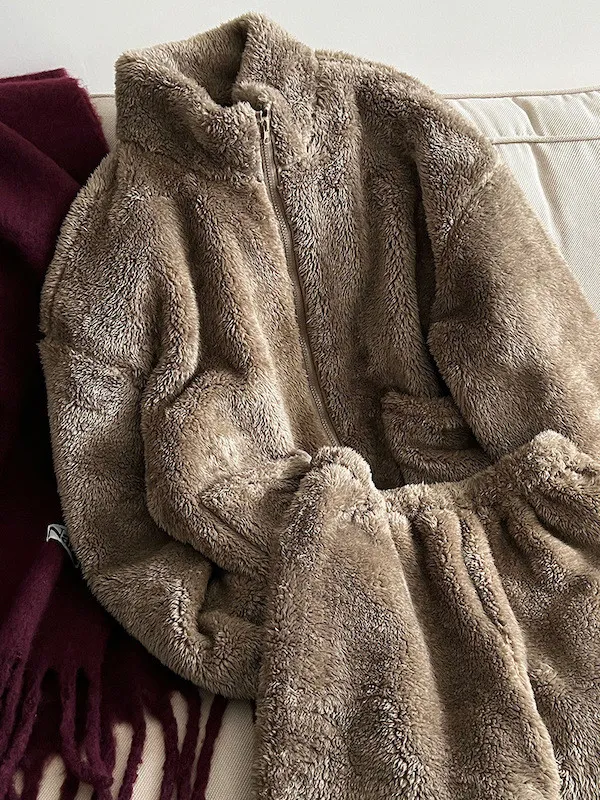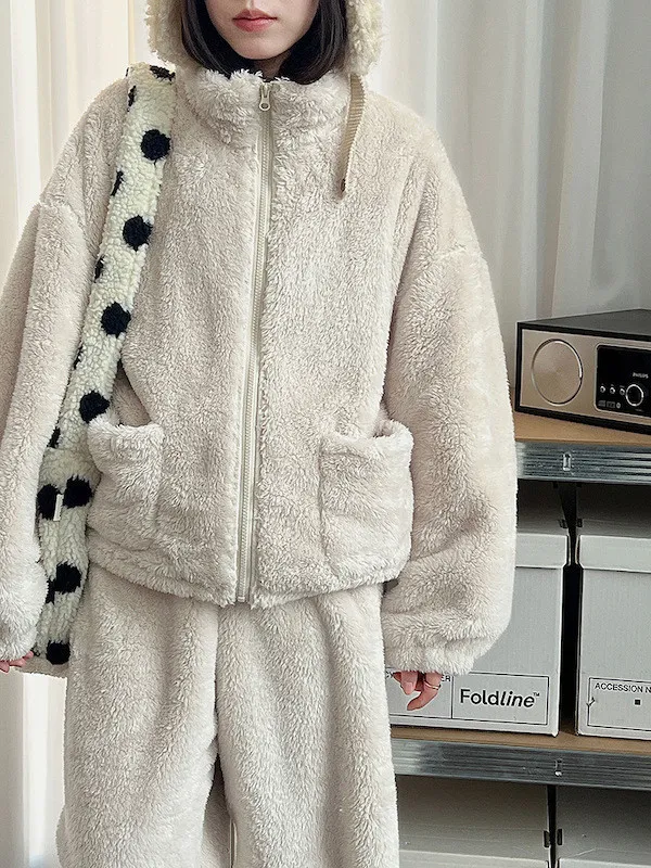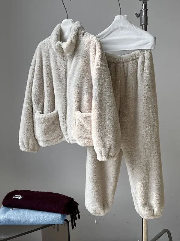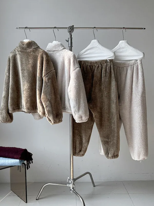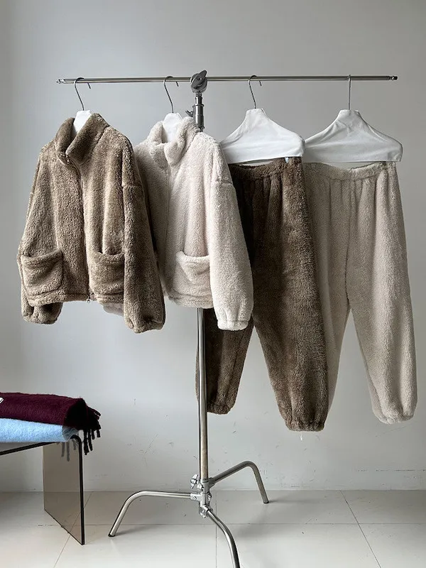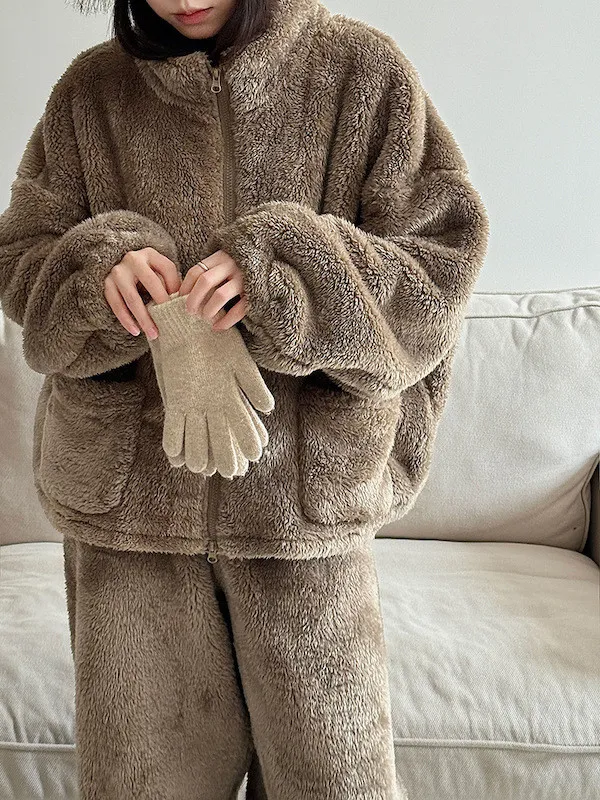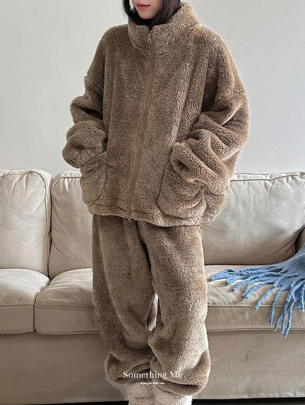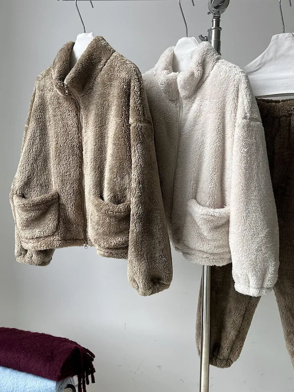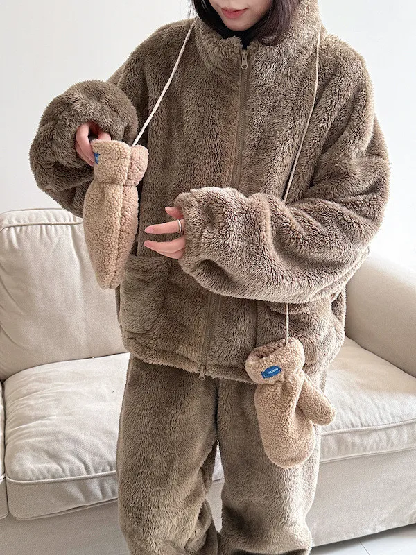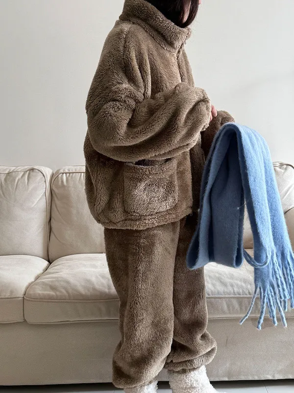 熊寶寶雙面暖絨慵懶立領套裝(外套+長褲) 2色