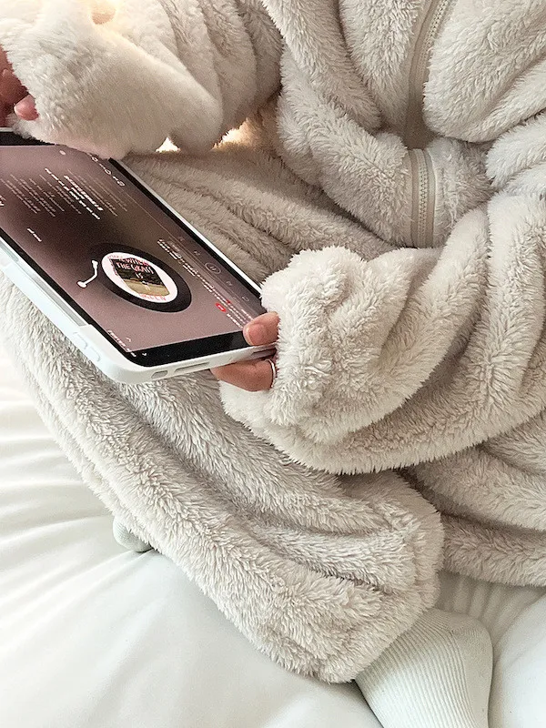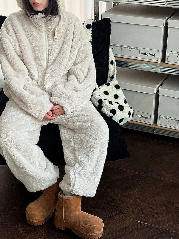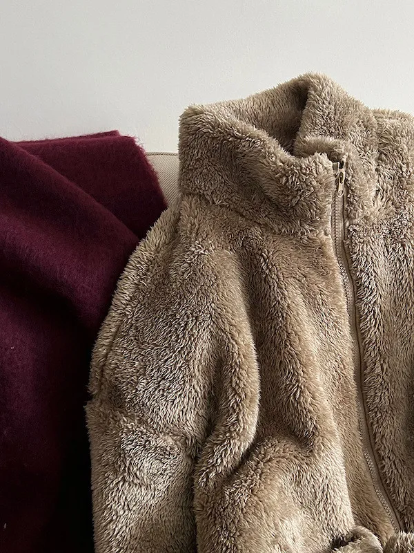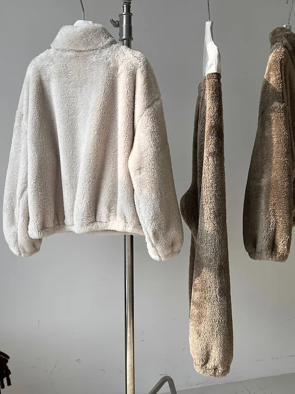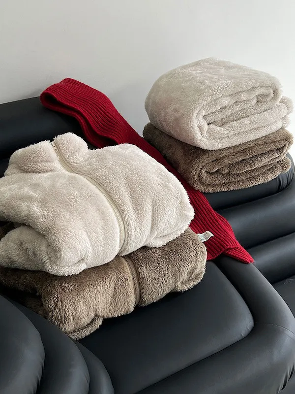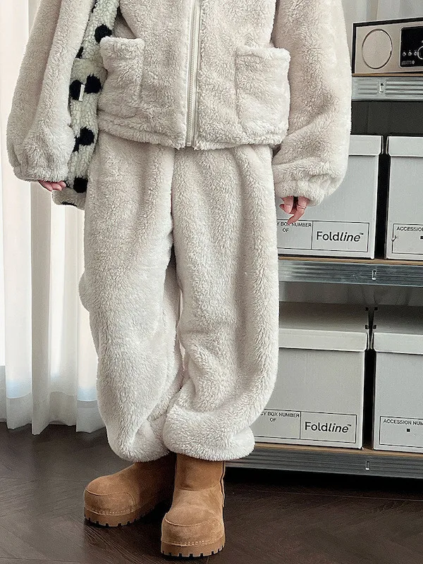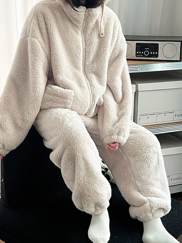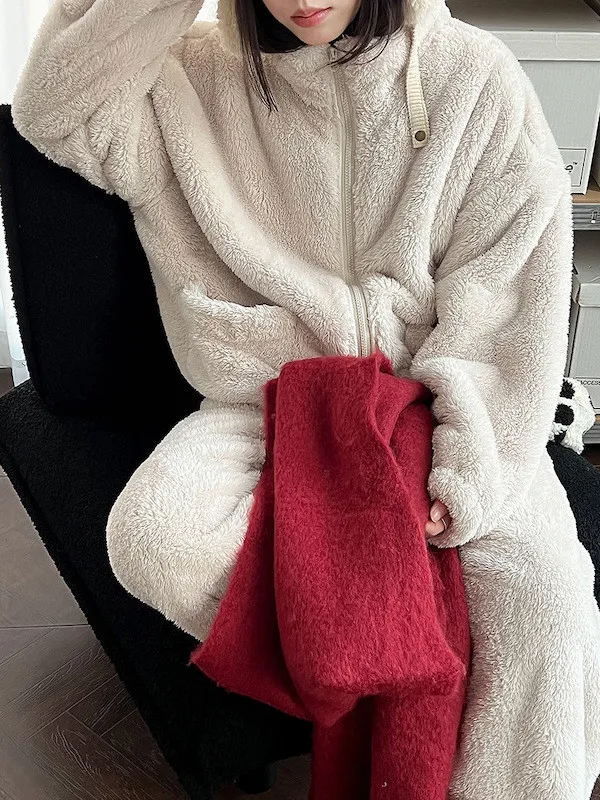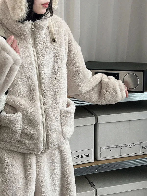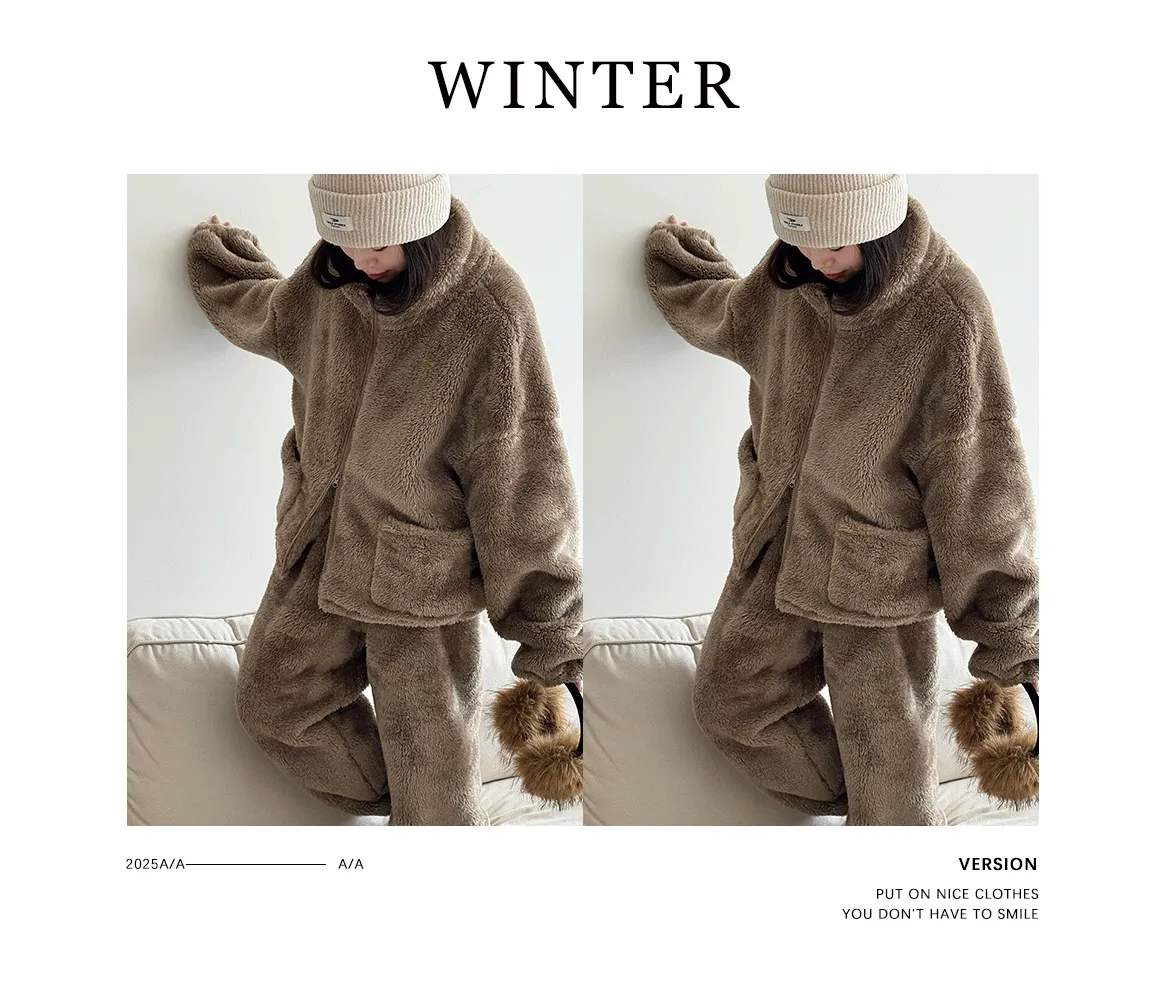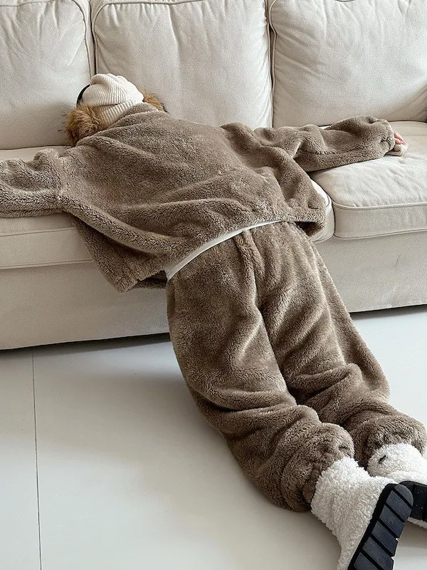 熊寶寶雙面暖絨慵懶立領套裝(外套+長褲) 2色