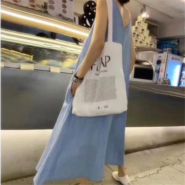 法式直紋休閒背心輕薄洋裝