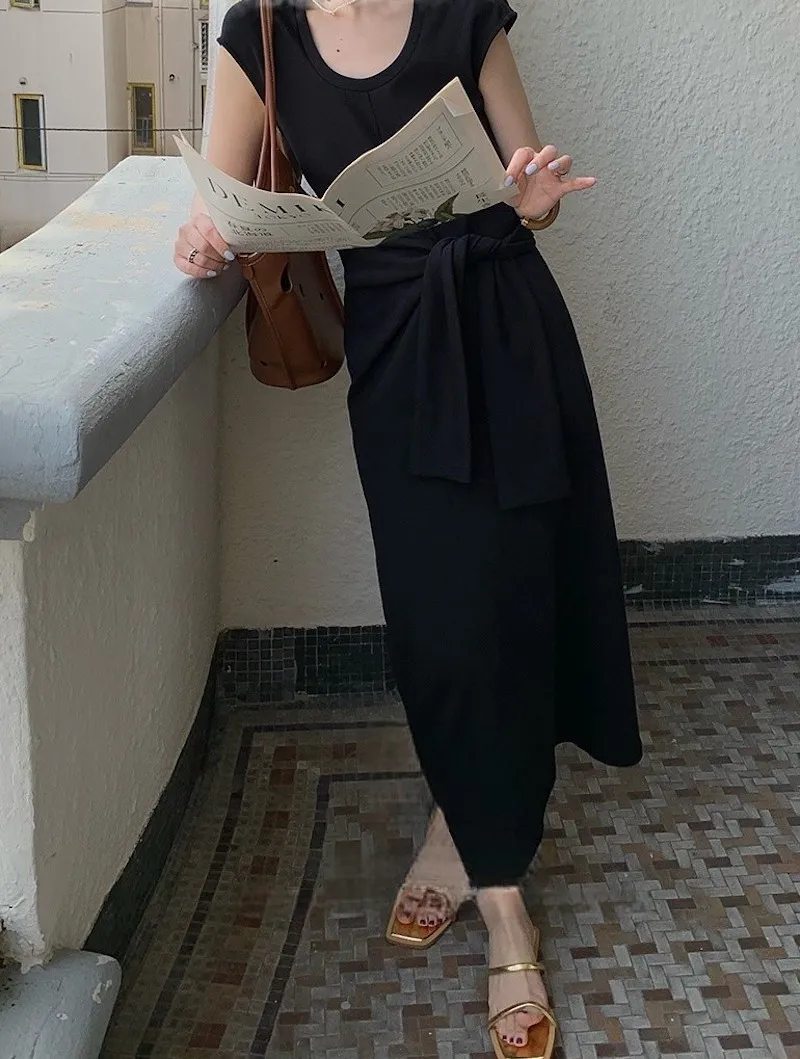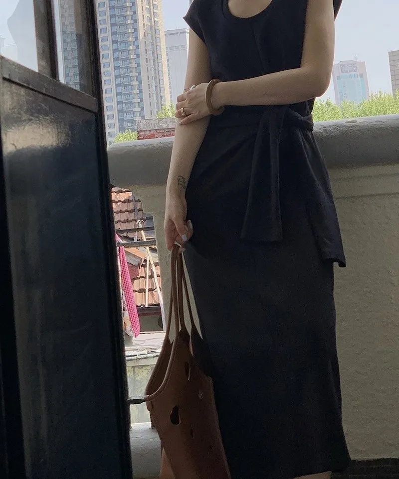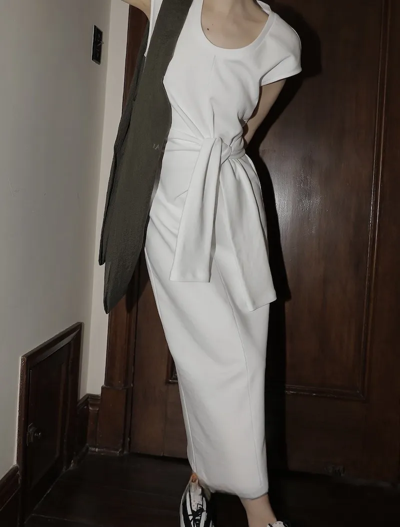 時髦收腰打結繫帶洋裝 2色