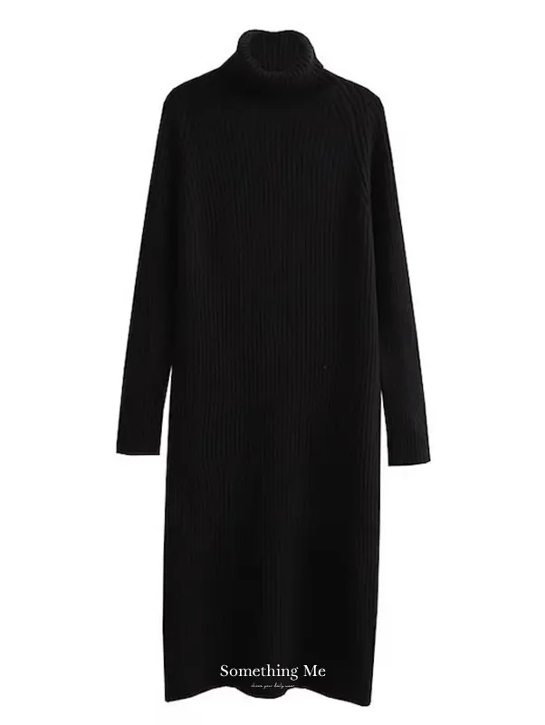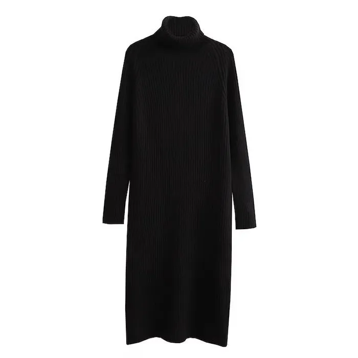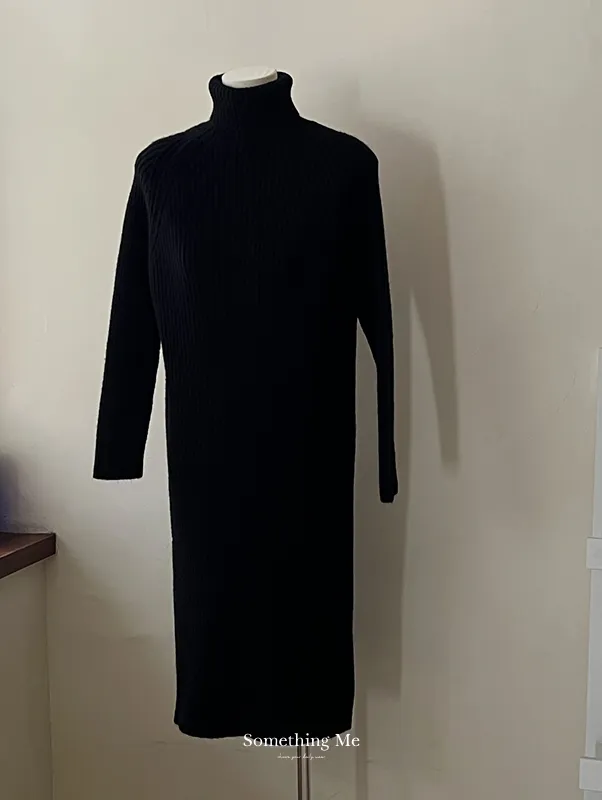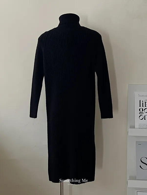 簡約坑條翻領針織洋裝