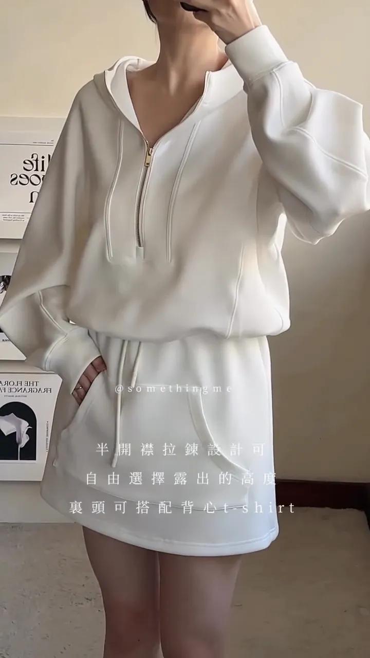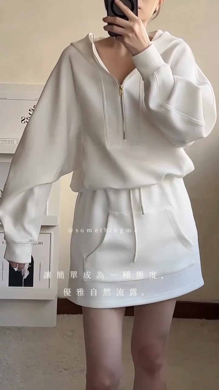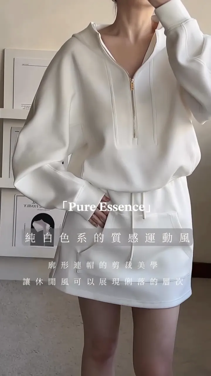 女神運動風.美式廓形連帽休閒套裝(衛衣+短褲裙)