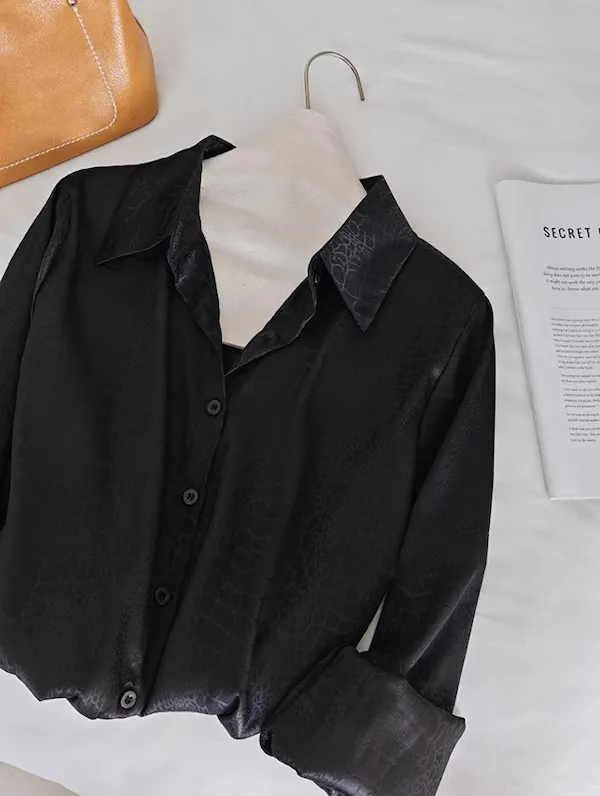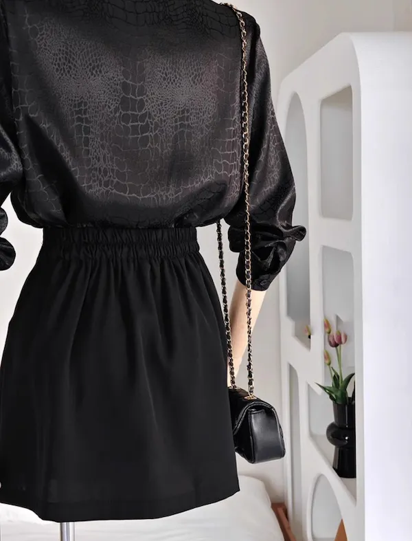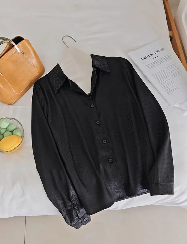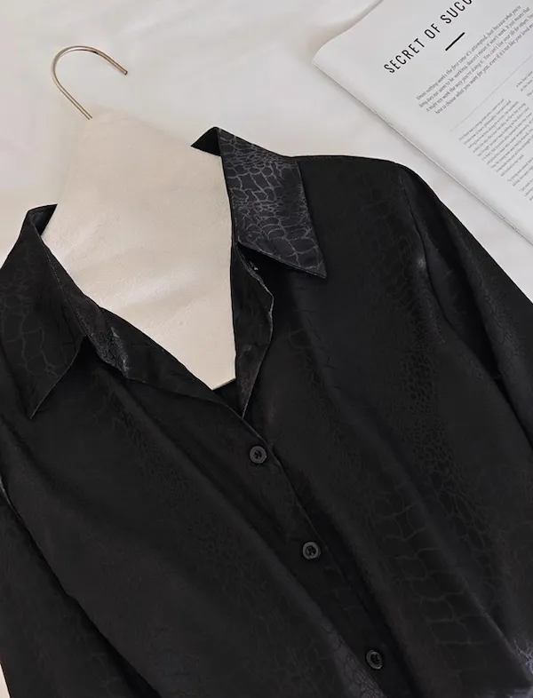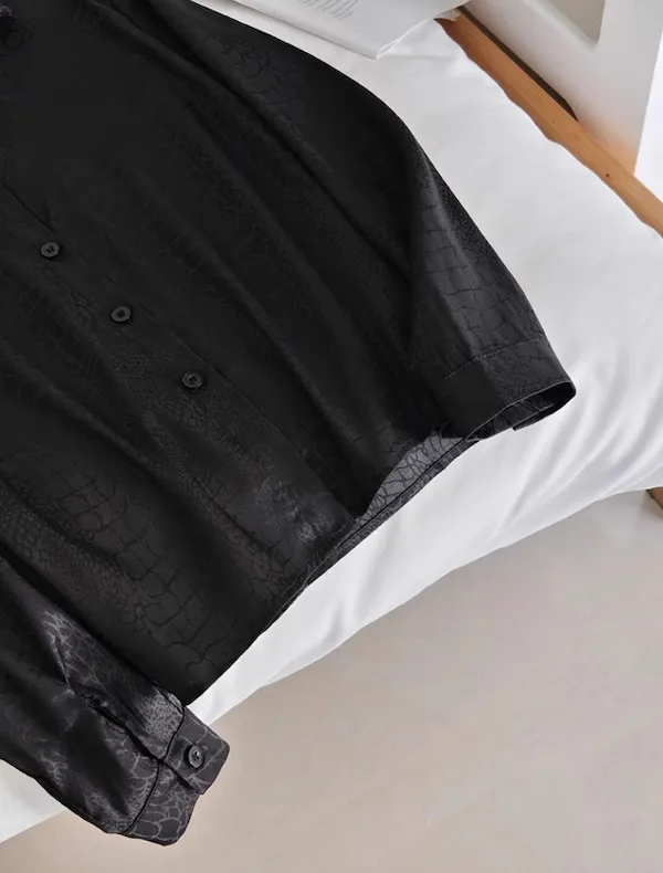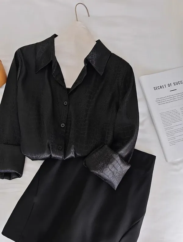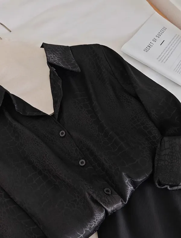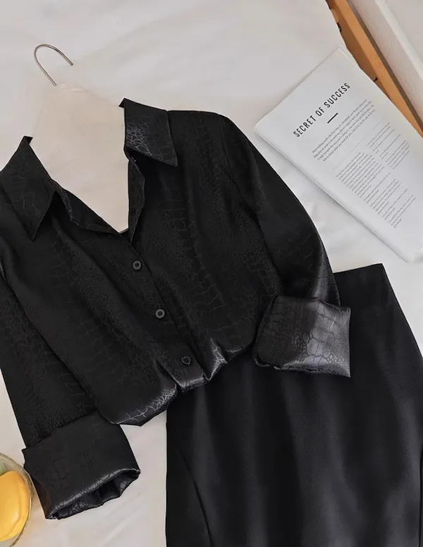 午夜星辰.鱷魚紋緞面襯衫短裙套裝