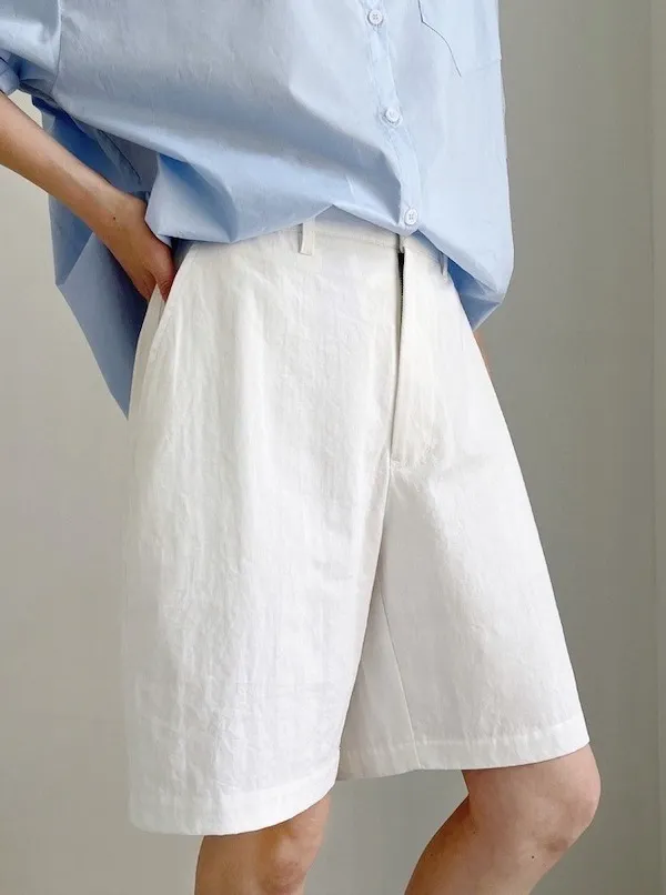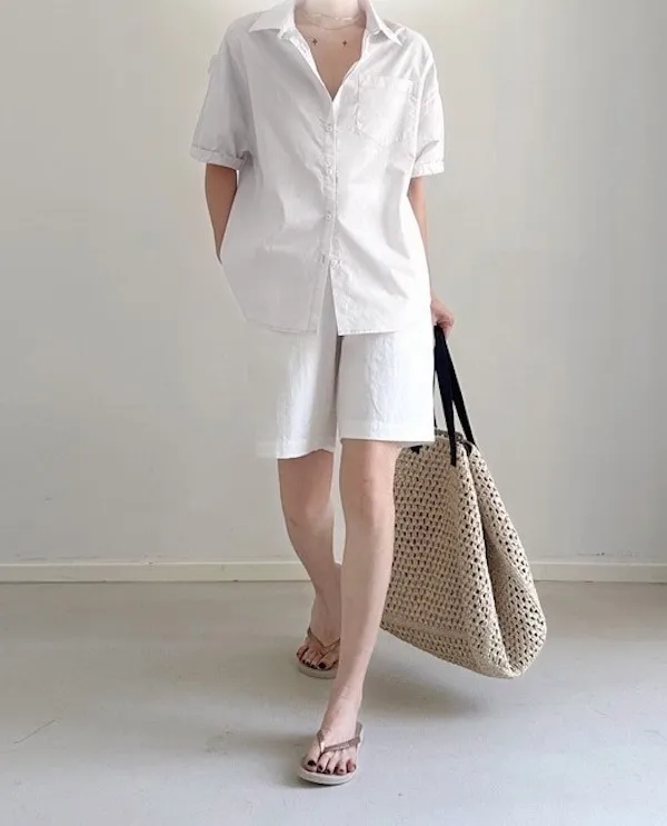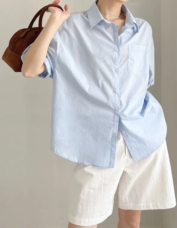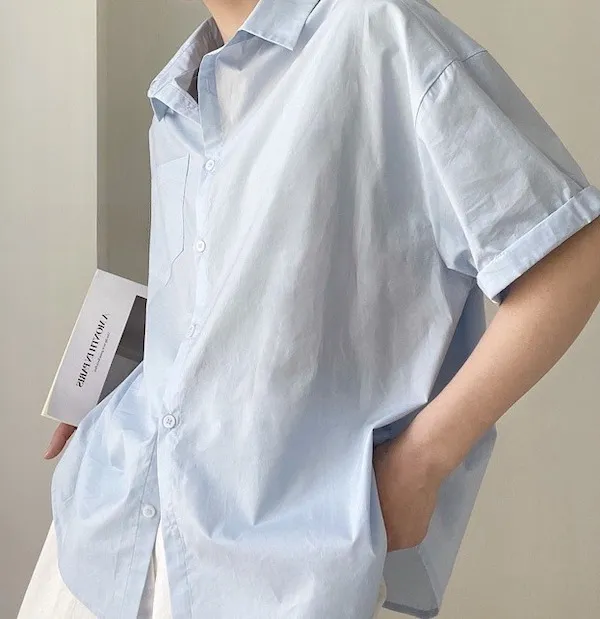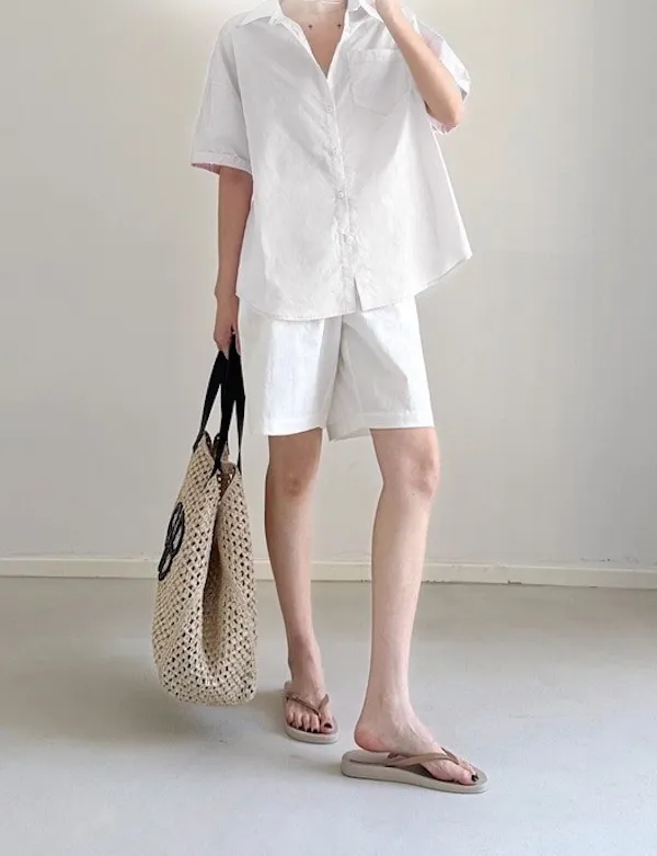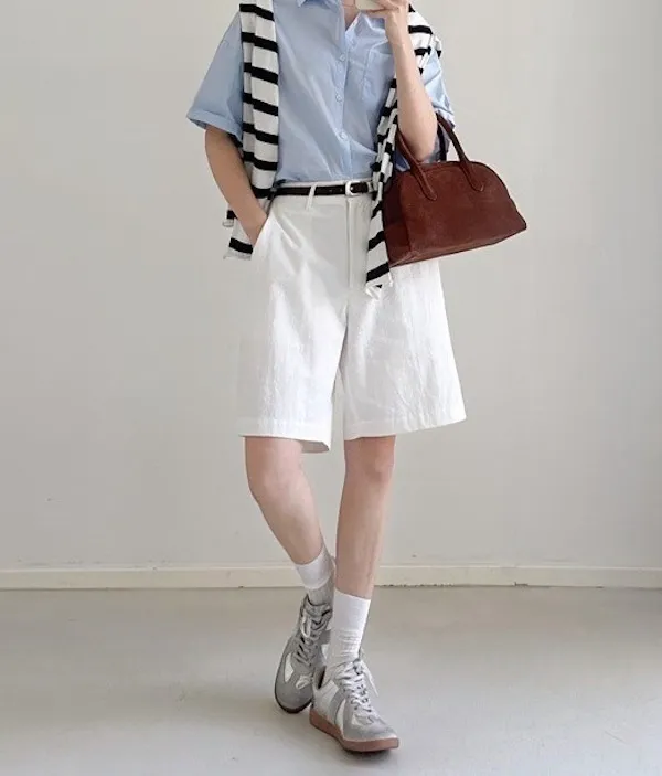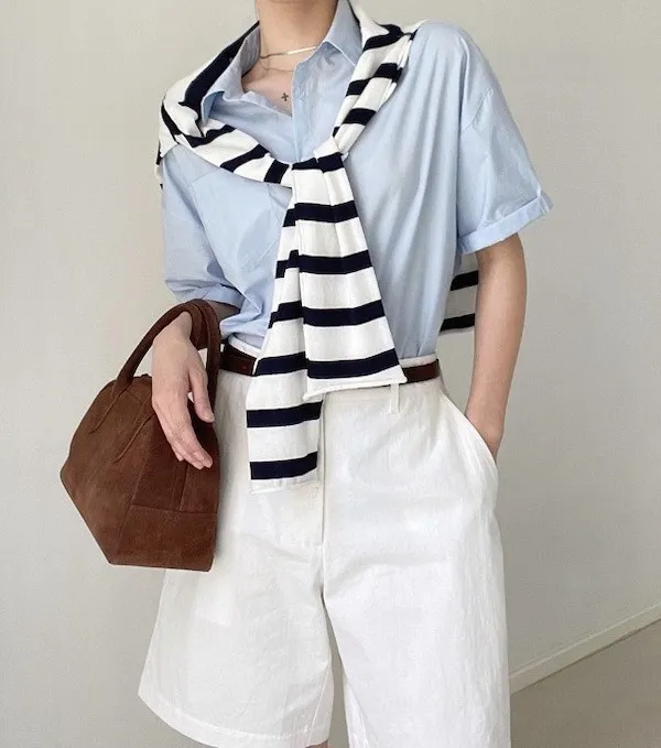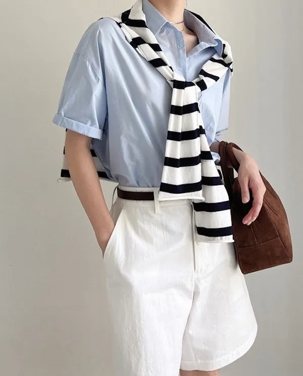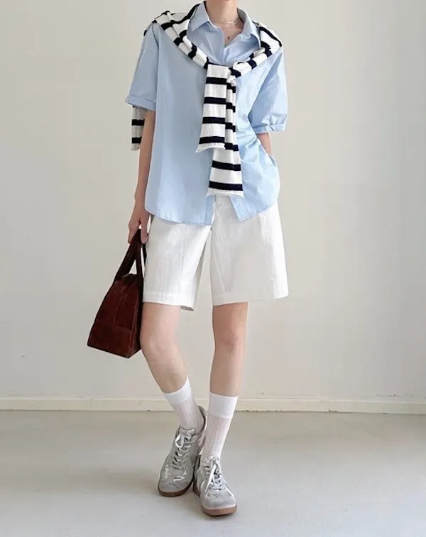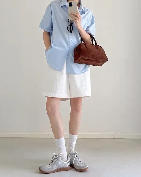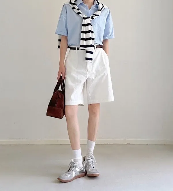 淺藍襯衫搭配純白短褲,穿上立刻變身清爽少年感