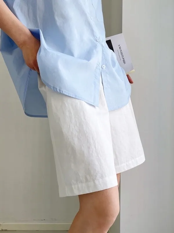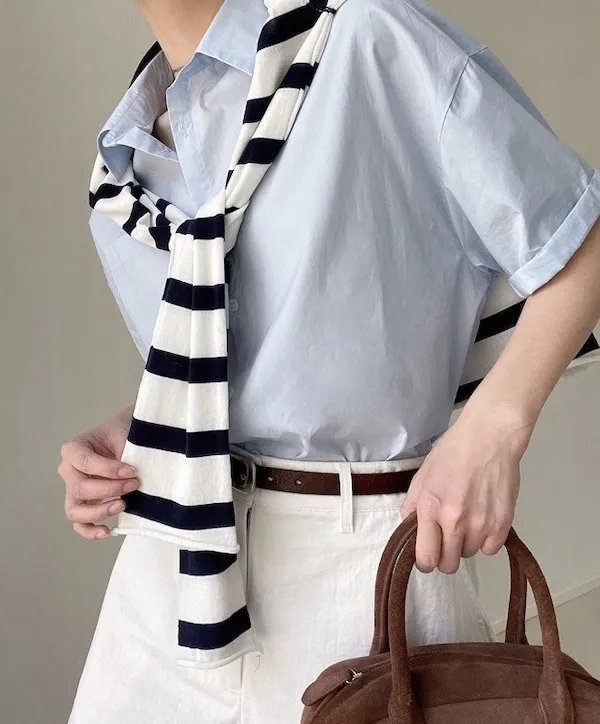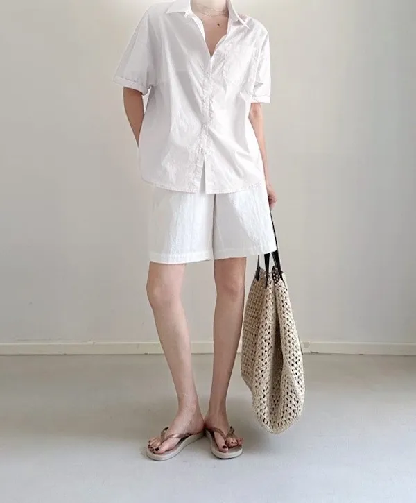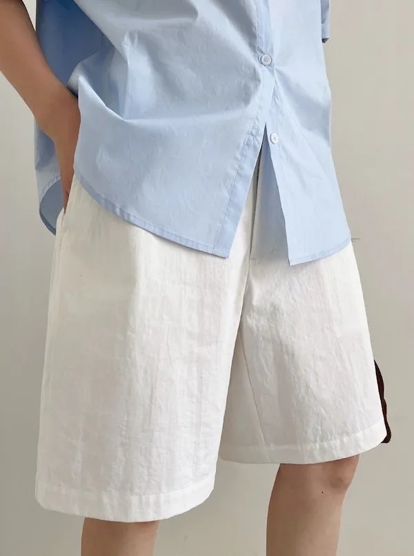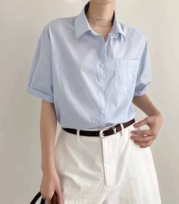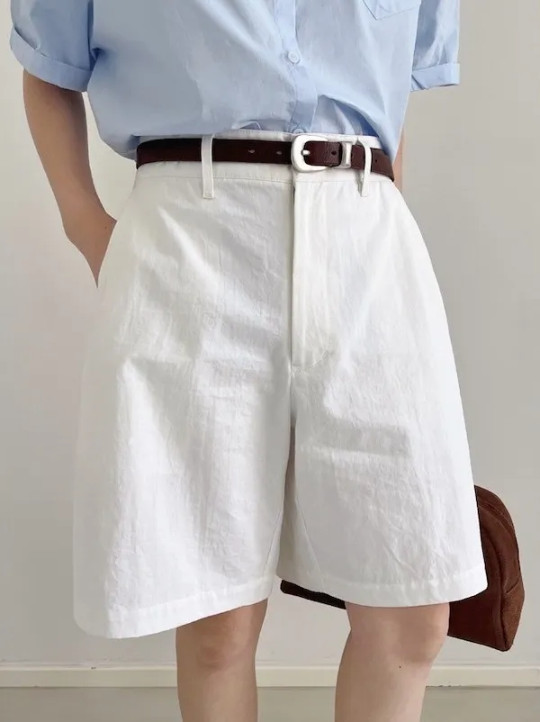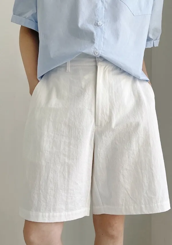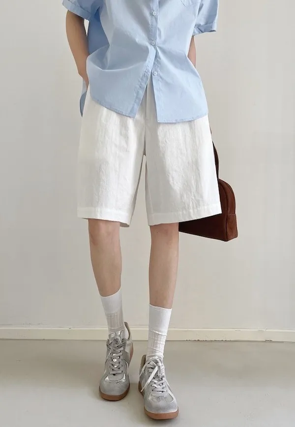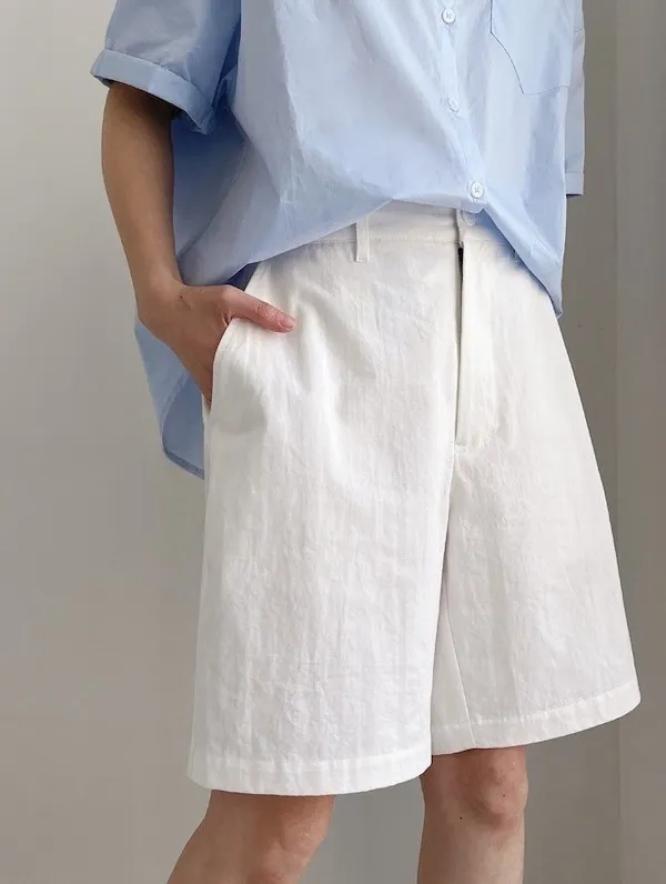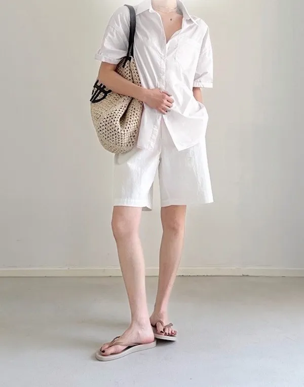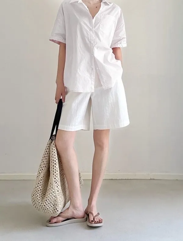 淺藍襯衫搭配純白短褲,穿上立刻變身清爽少年感