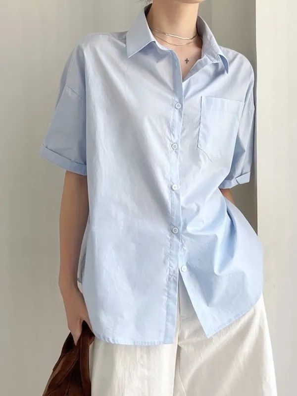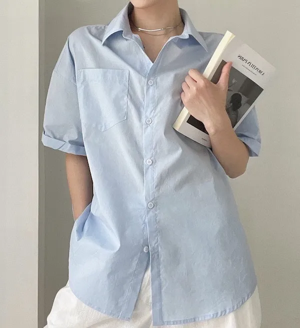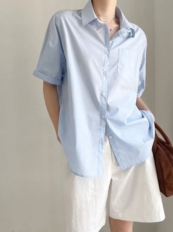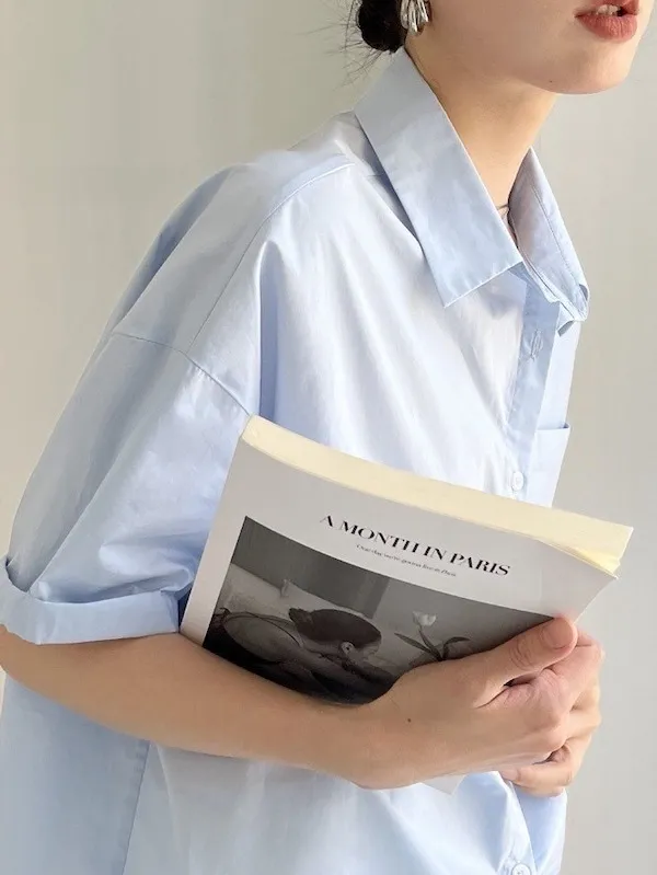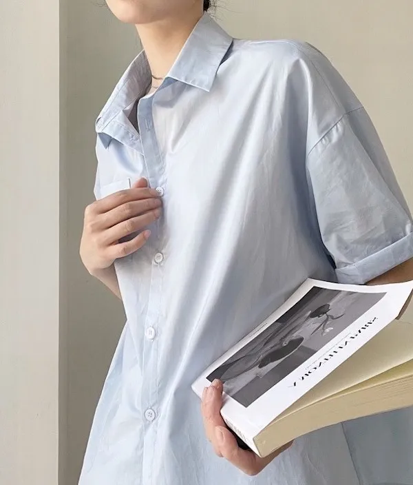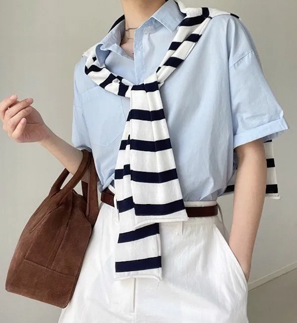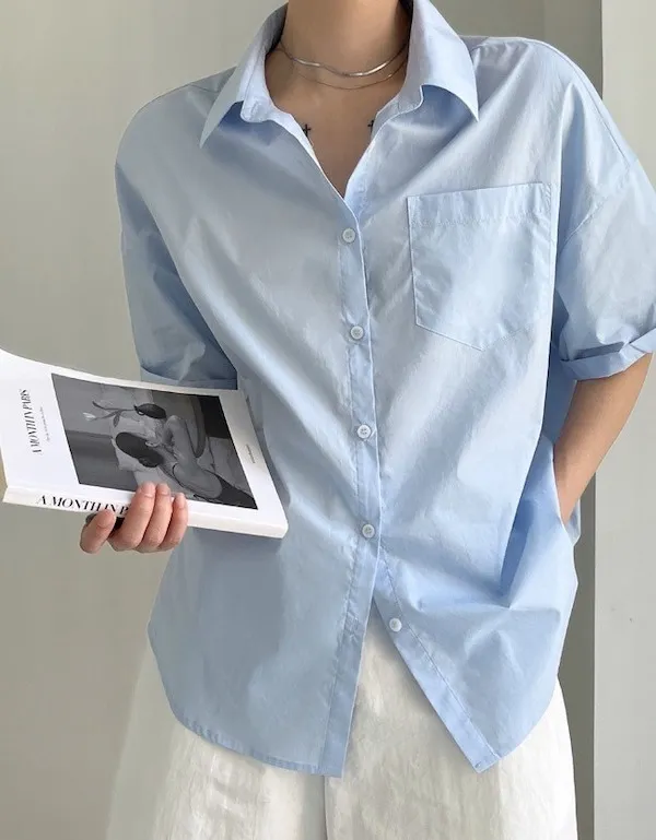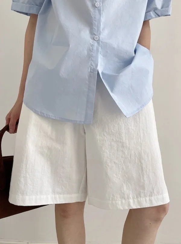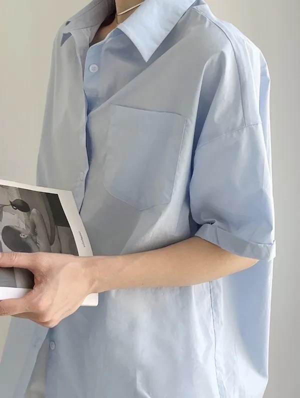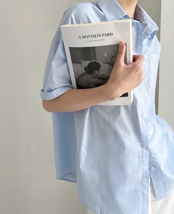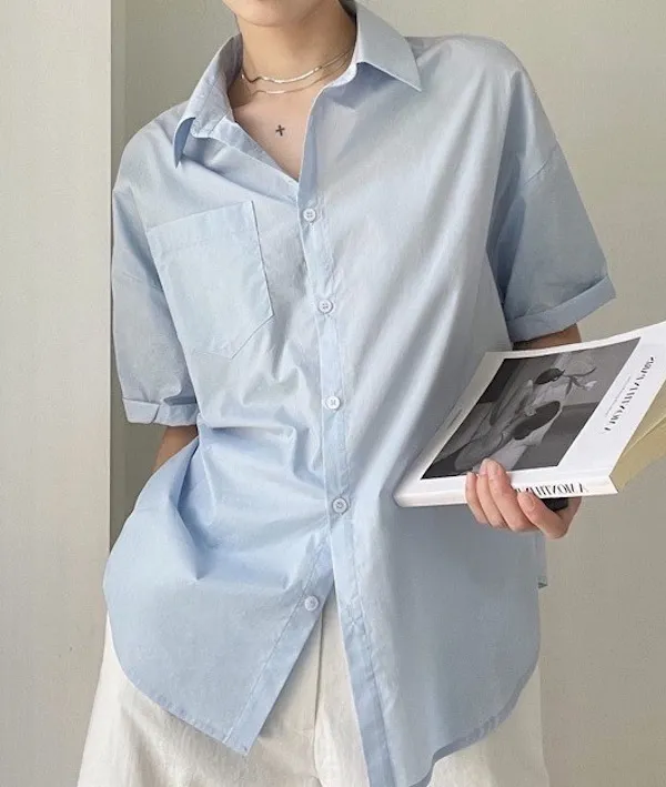 淺藍襯衫搭配純白短褲,穿上立刻變身清爽少年感