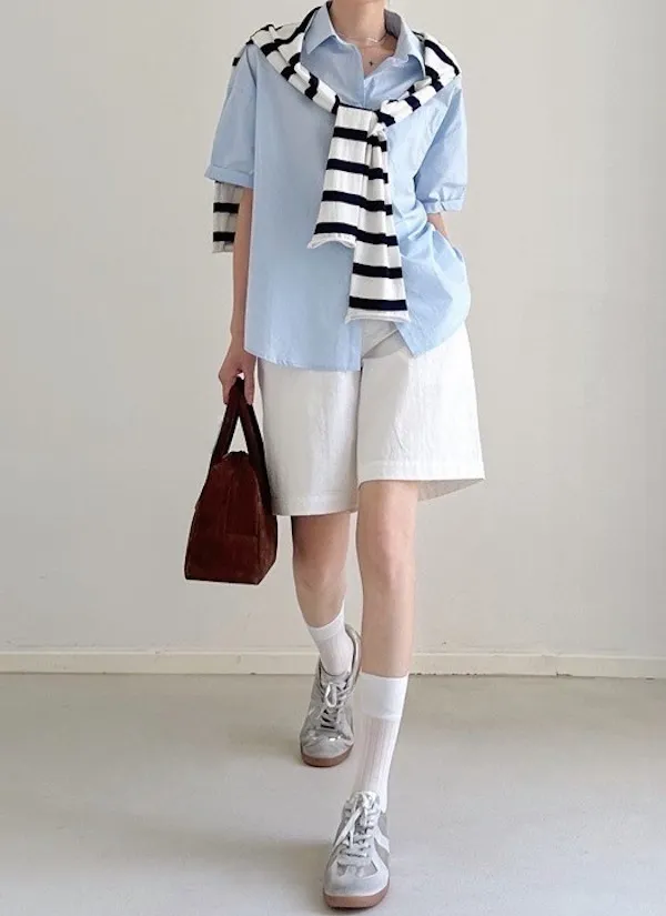 清爽少年感襯衫短褲套裝(五分短褲下單區)
