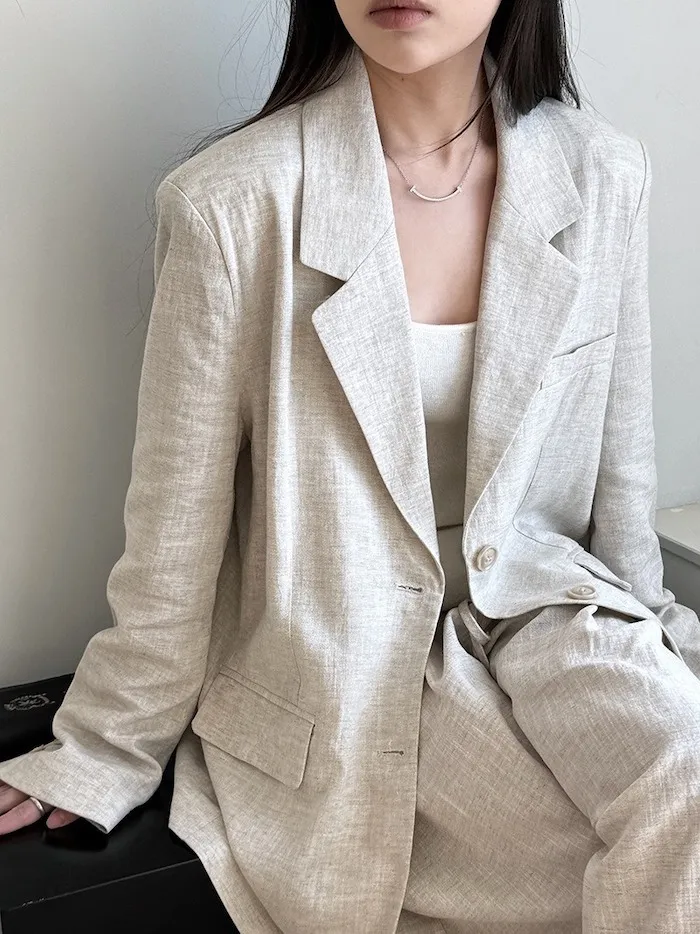 靜謐時光亞麻質感西裝套裝(外套下單區) 2色