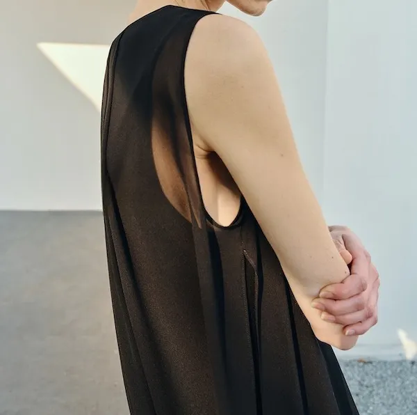 圓領設計搭配胸前細膩褶皺,勾勒出柔美線條