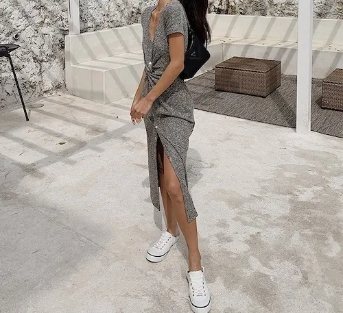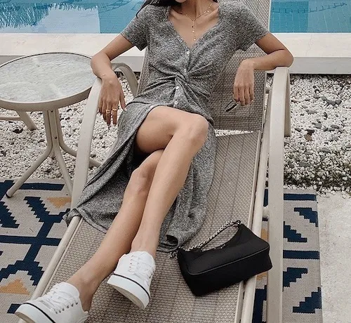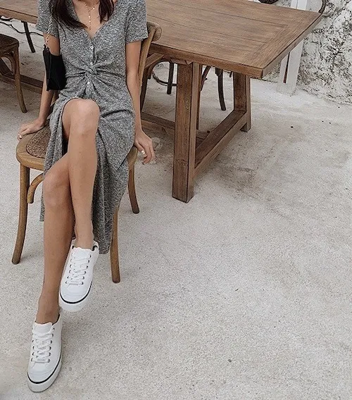 搭球鞋很休閒,換上高跟鞋立刻變優雅