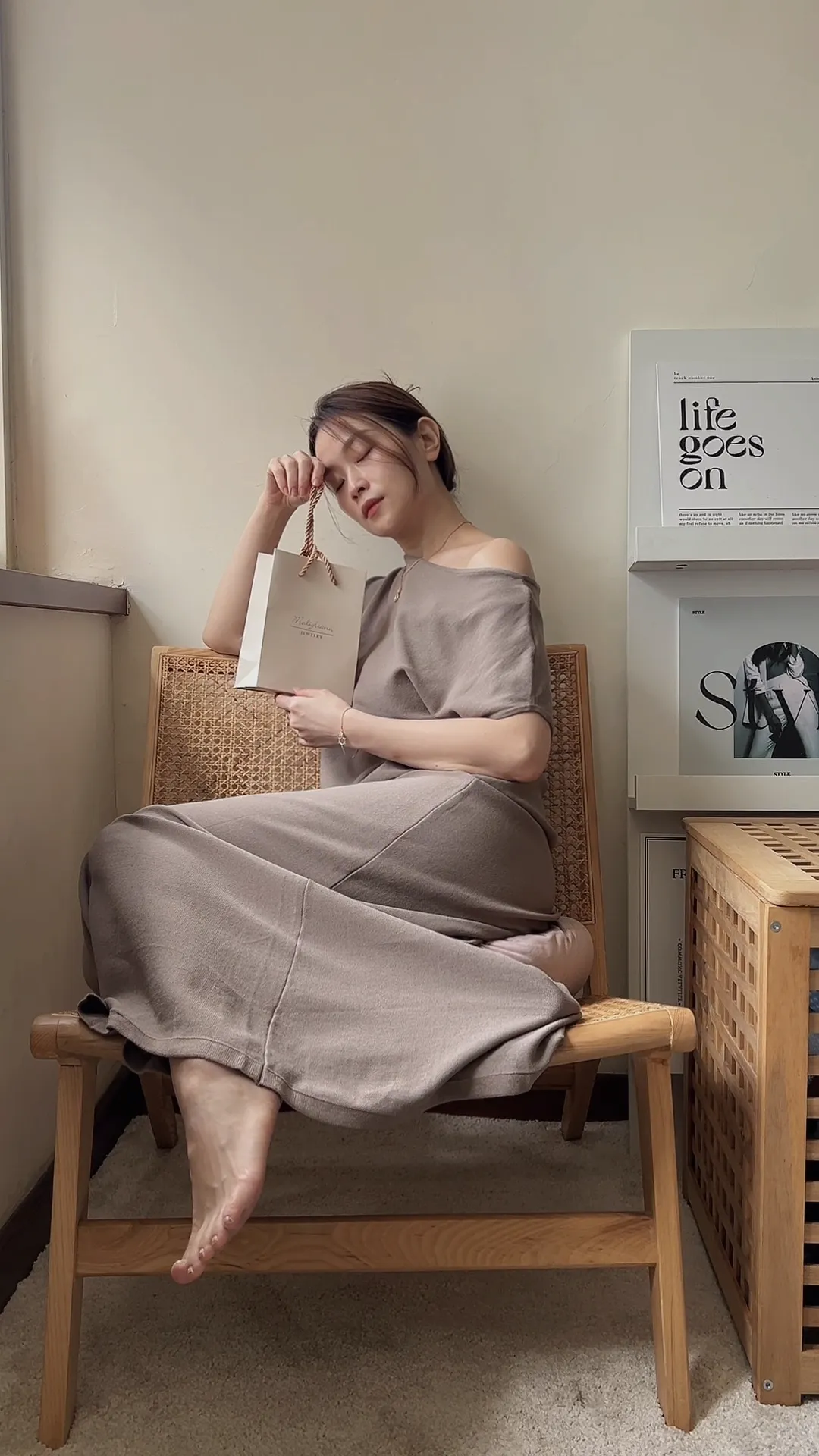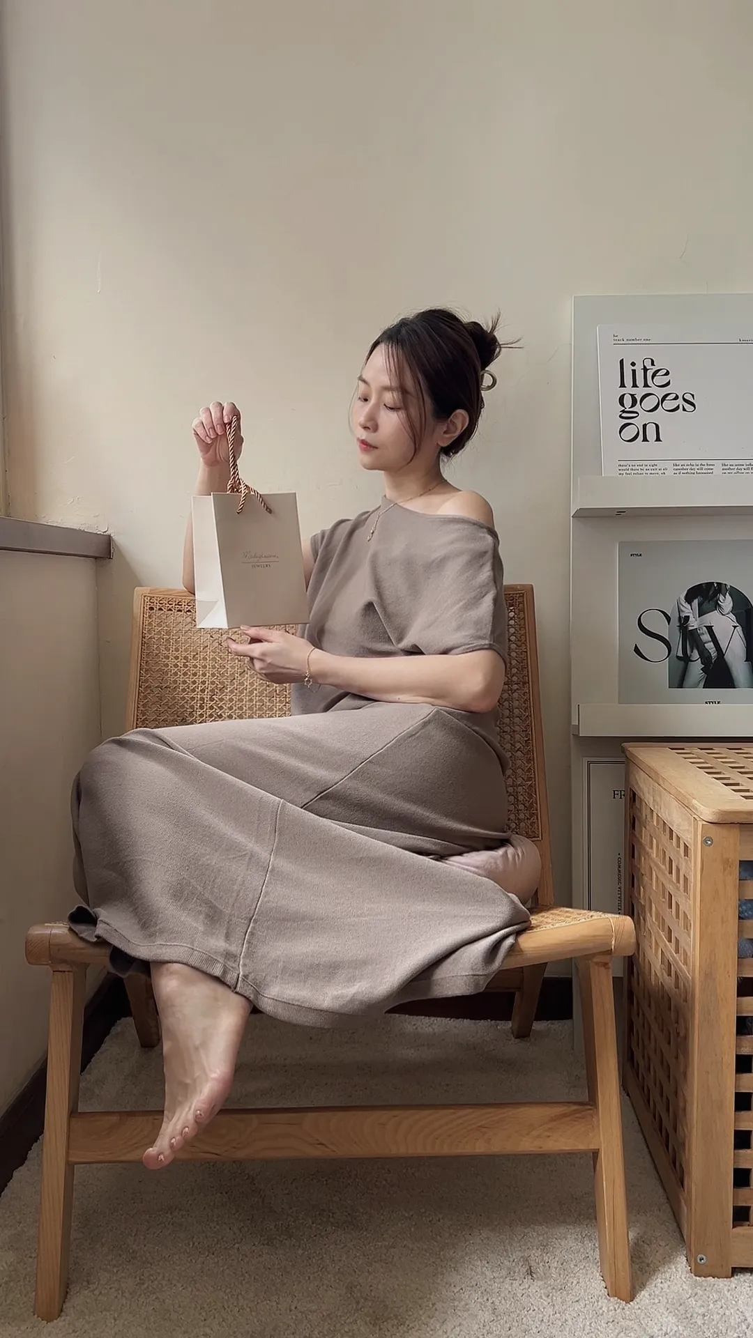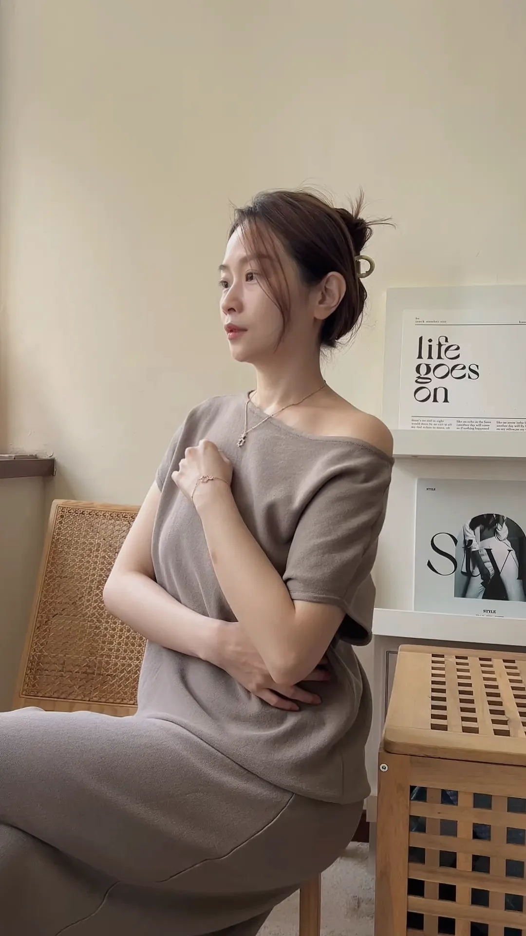 斜肩的設計讓人想起那種剛睡醒還沒完全清醒的隨性美感