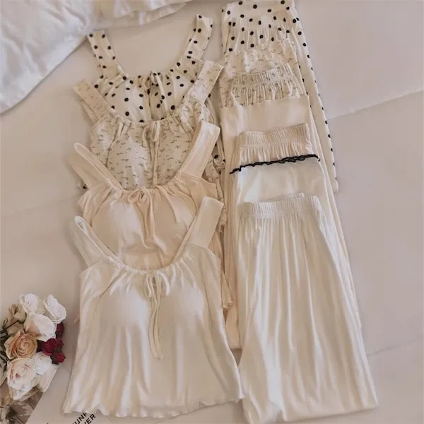 舒適莫代爾家居睡衣套組(背心+長睡褲) 6色