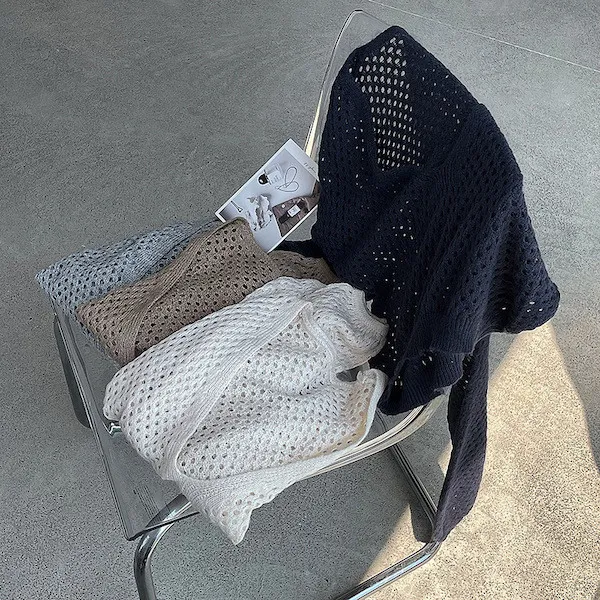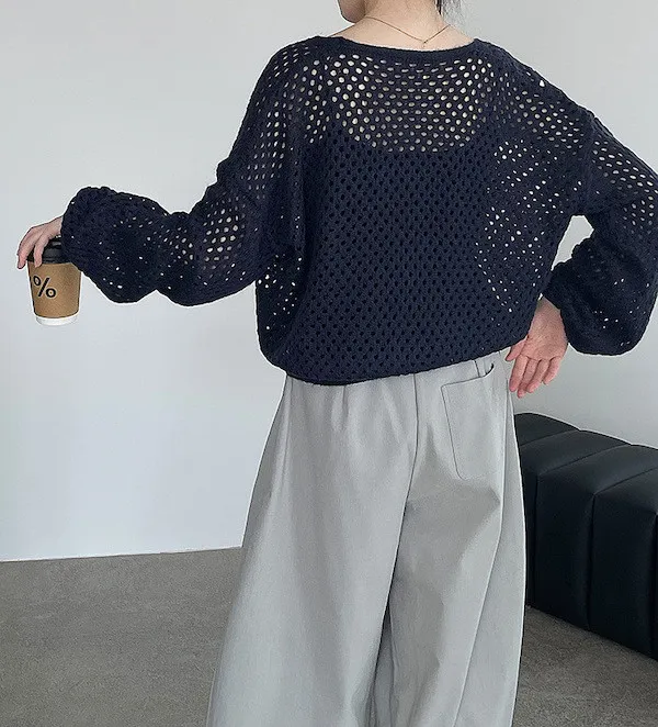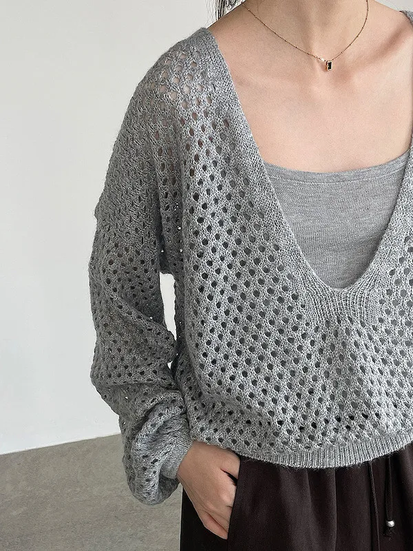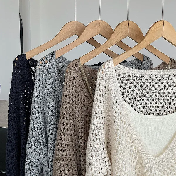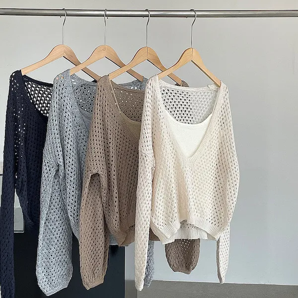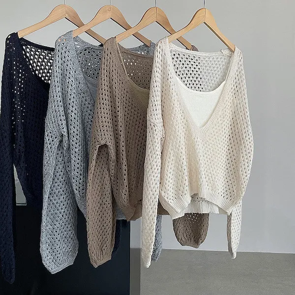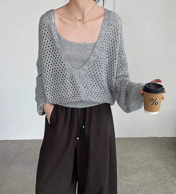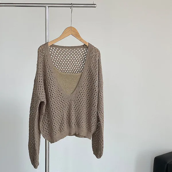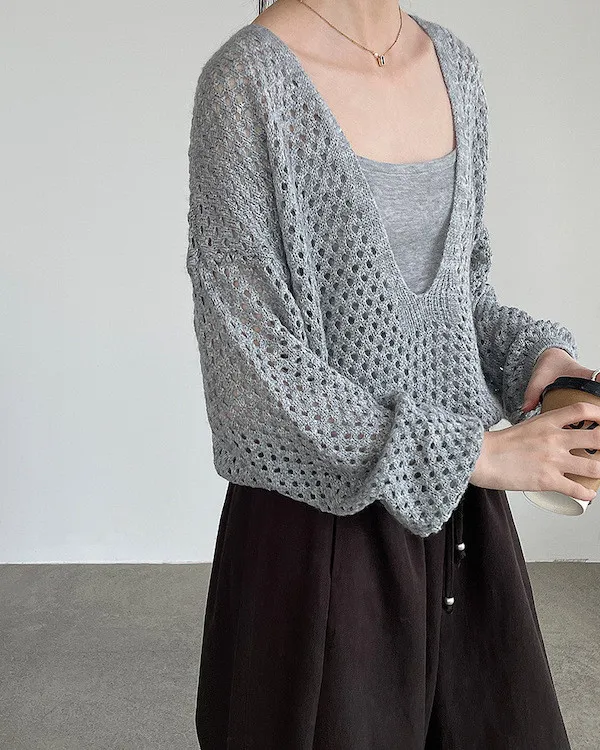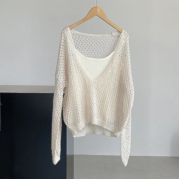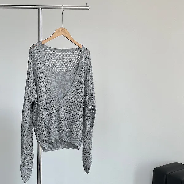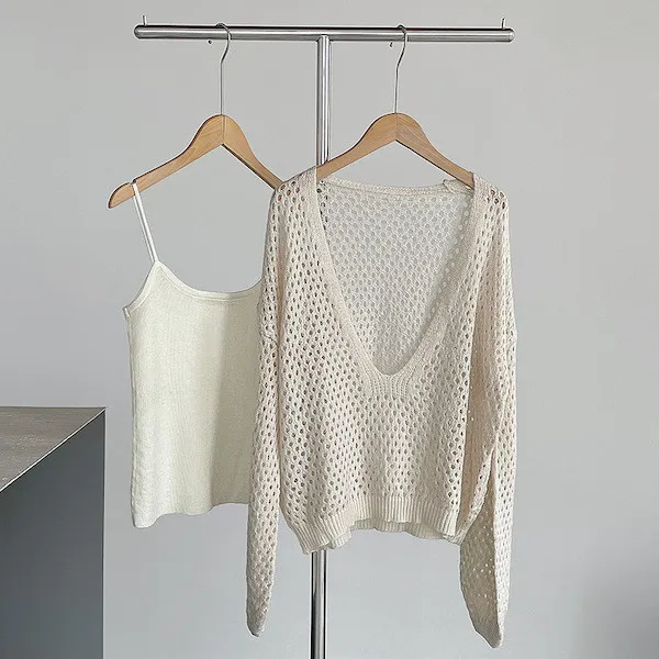 秋日微風 韓系鏤空針織罩衫套裝(背心+外罩) 4色