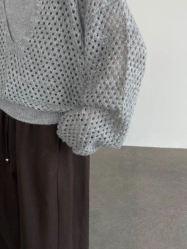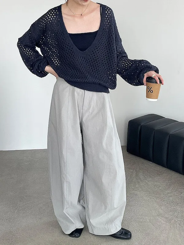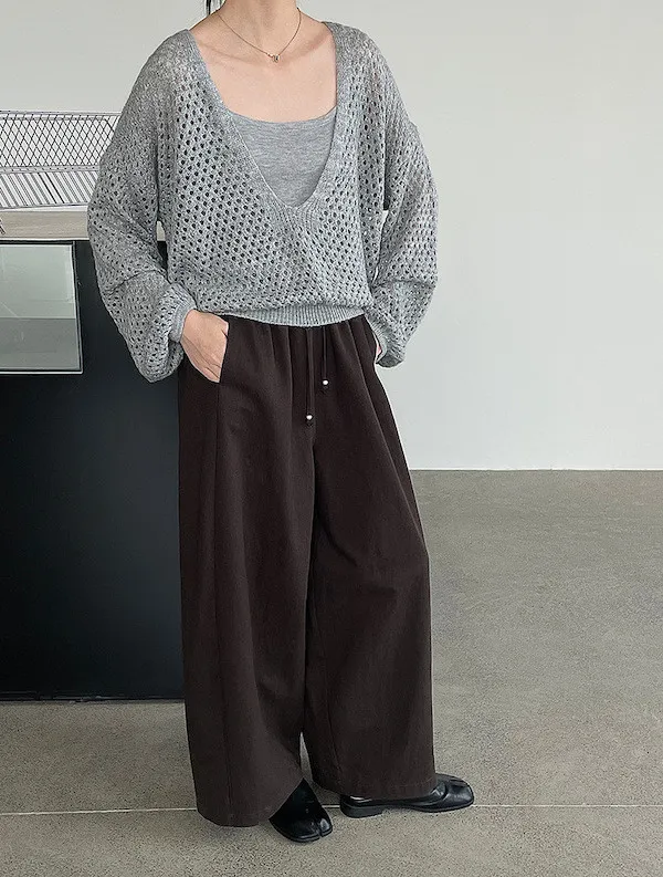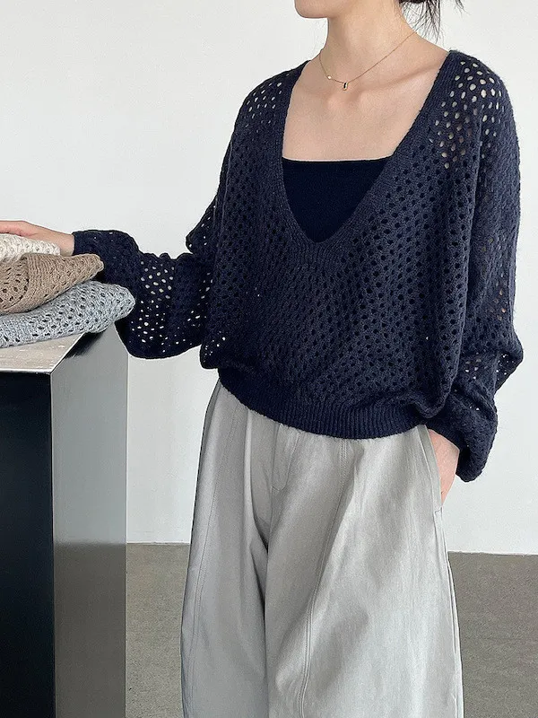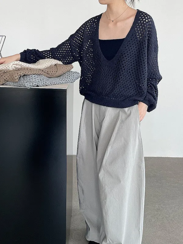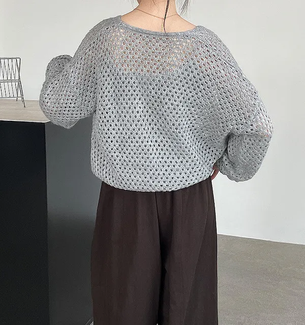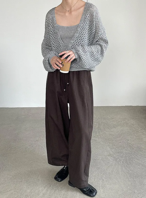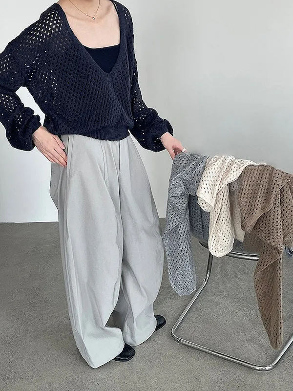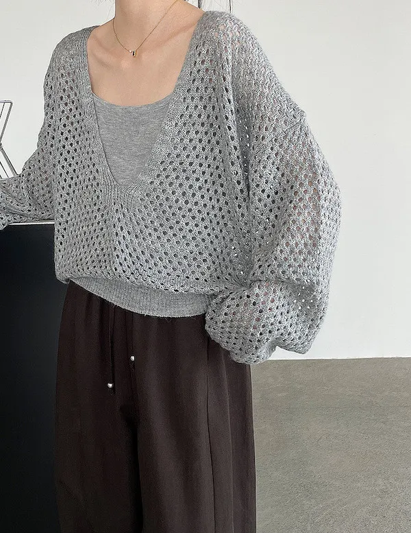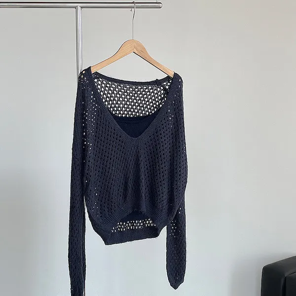 秋日微風 韓系鏤空針織罩衫套裝(背心+外罩) 4色