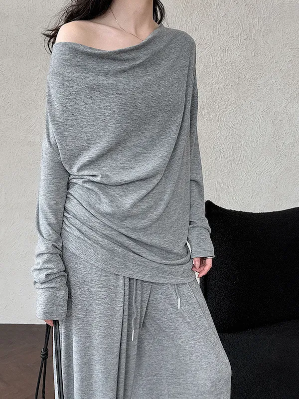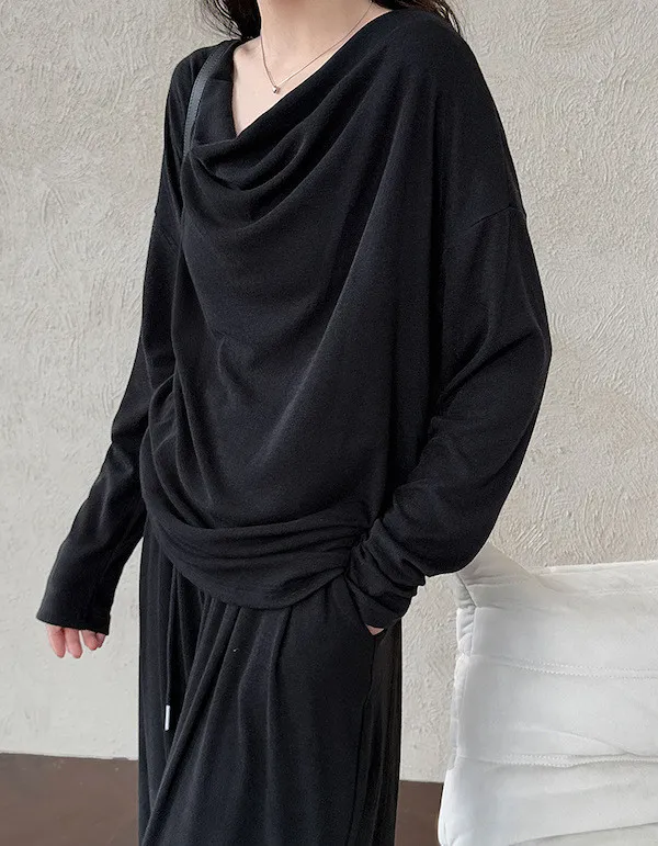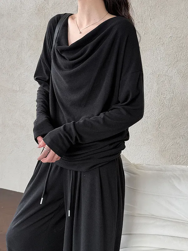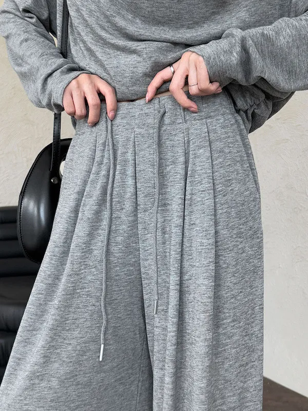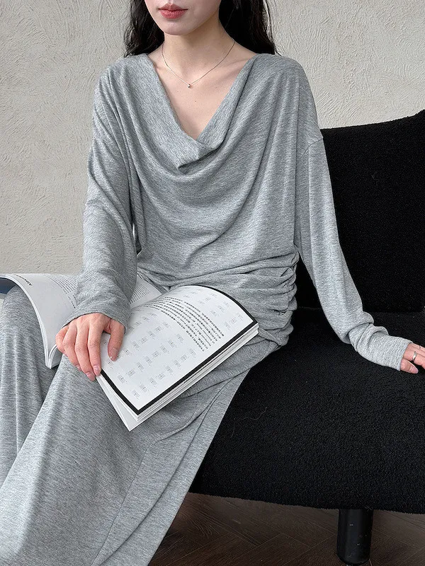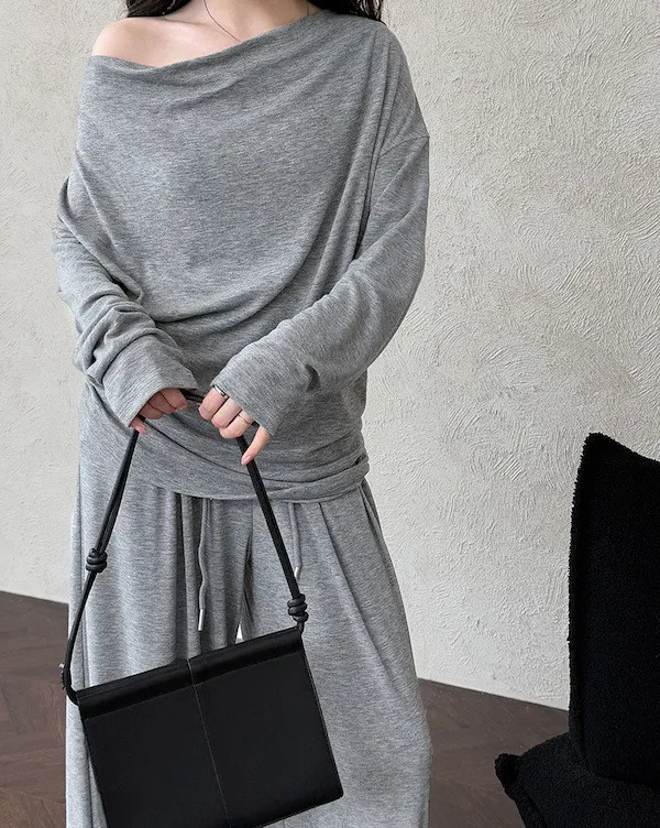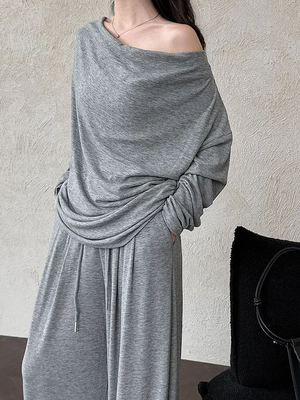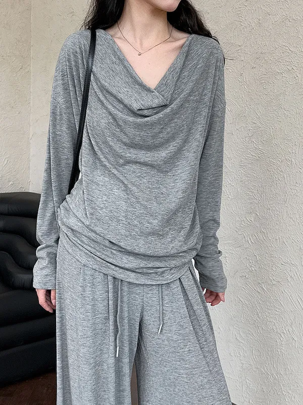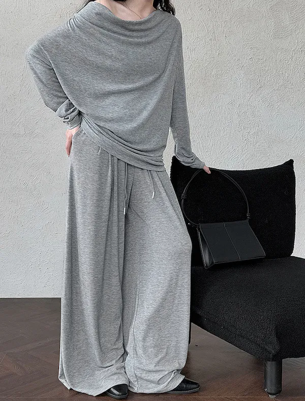 懶人救星!3種穿法慵懶隨性套裝(垂領上衣+抽繩寬褲) 2色