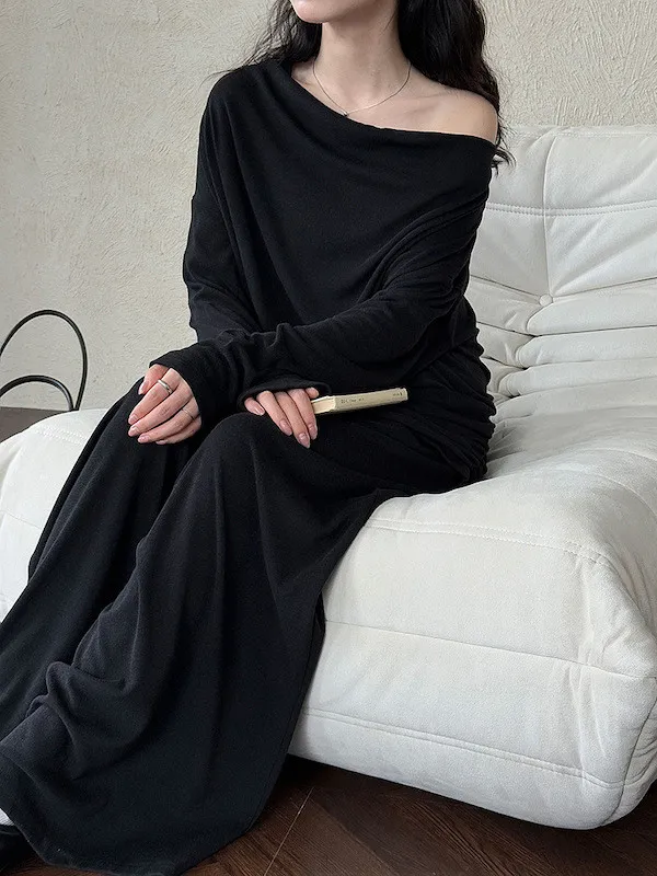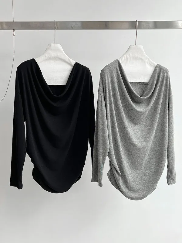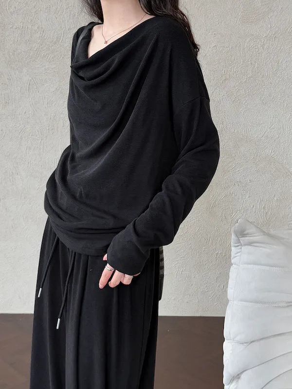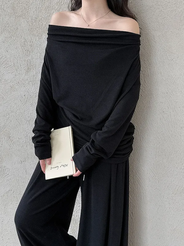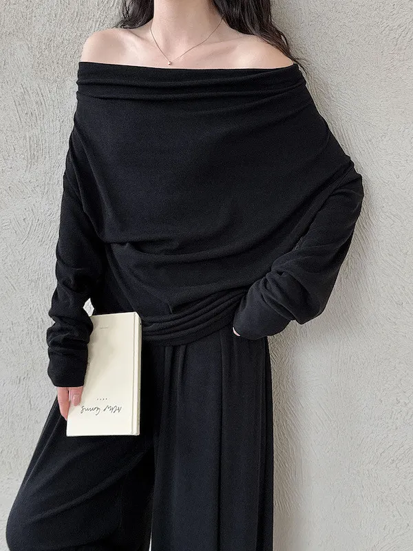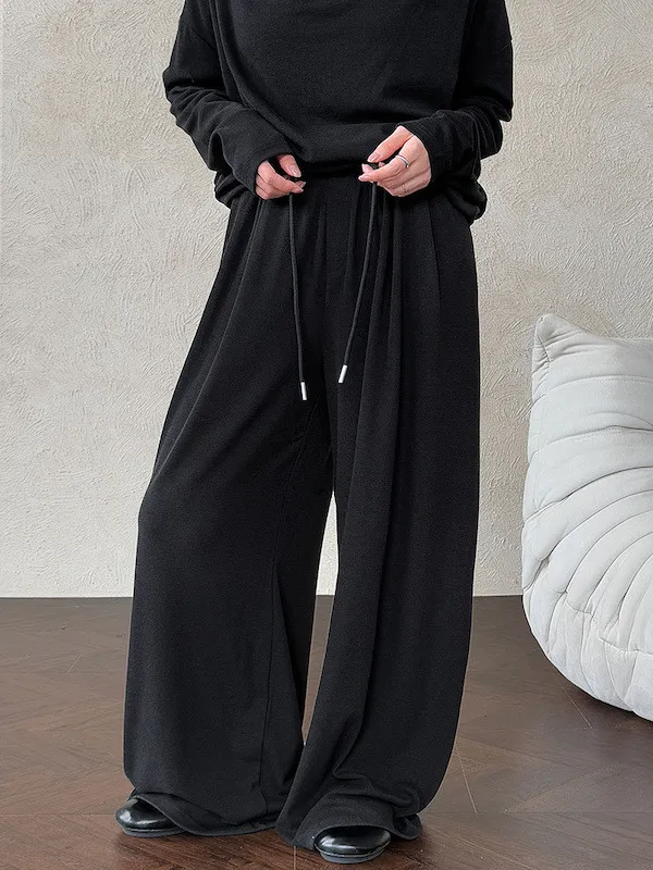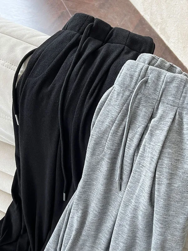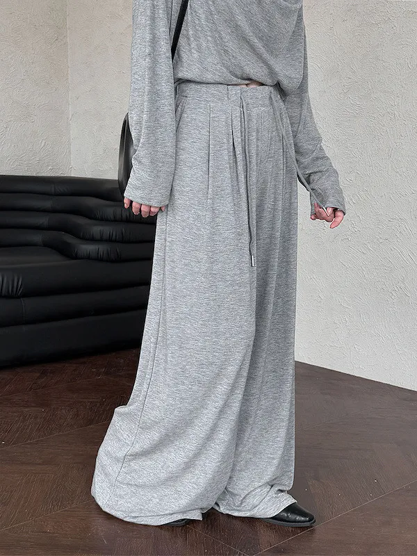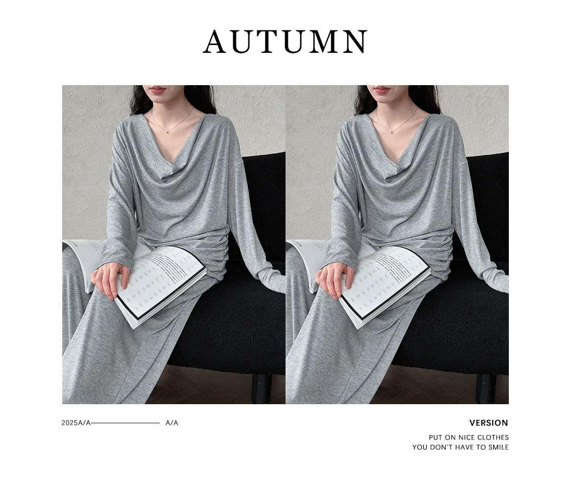 懶人救星!3種穿法慵懶隨性套裝(垂領上衣+抽繩寬褲) 2色
