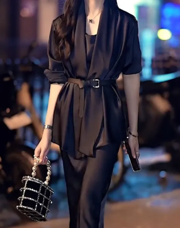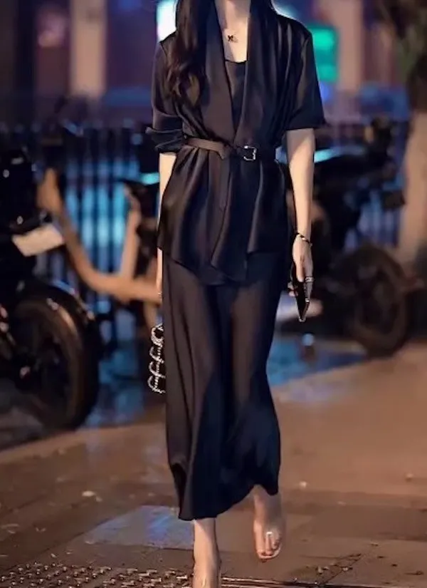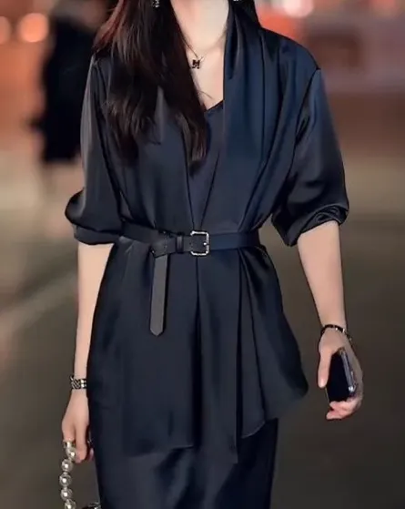 都會夜色 低奢女神感顯瘦垂感套裝(西裝外套+連身裙)