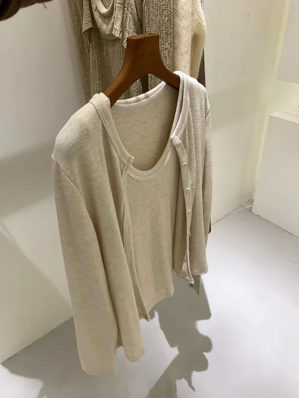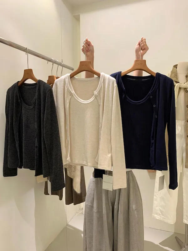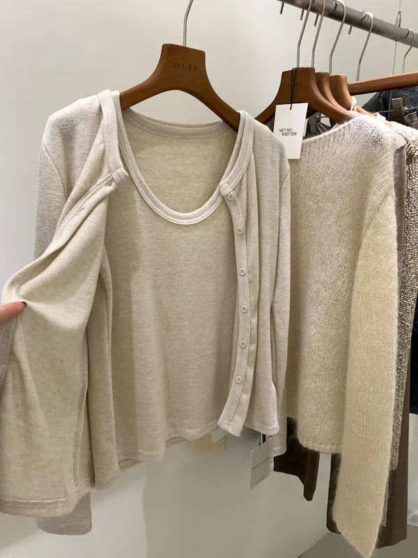 微暖磨毛.親膚針織開衫+背心兩件套 3色
