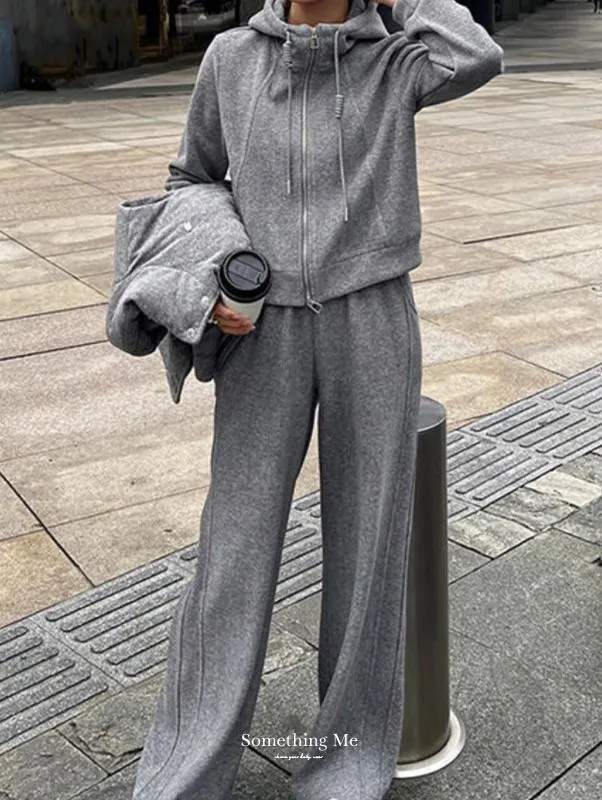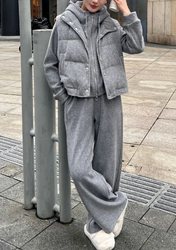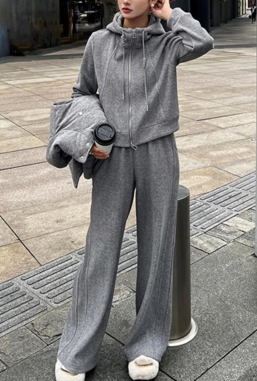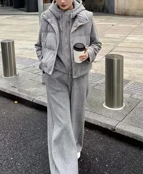 慵懶city感灰色休閒套裝(背心+外套+寬褲)