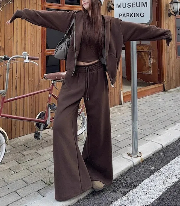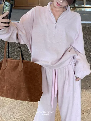 溫暖陪伴 美式休閒運動衛衣套組(外套+褲子)